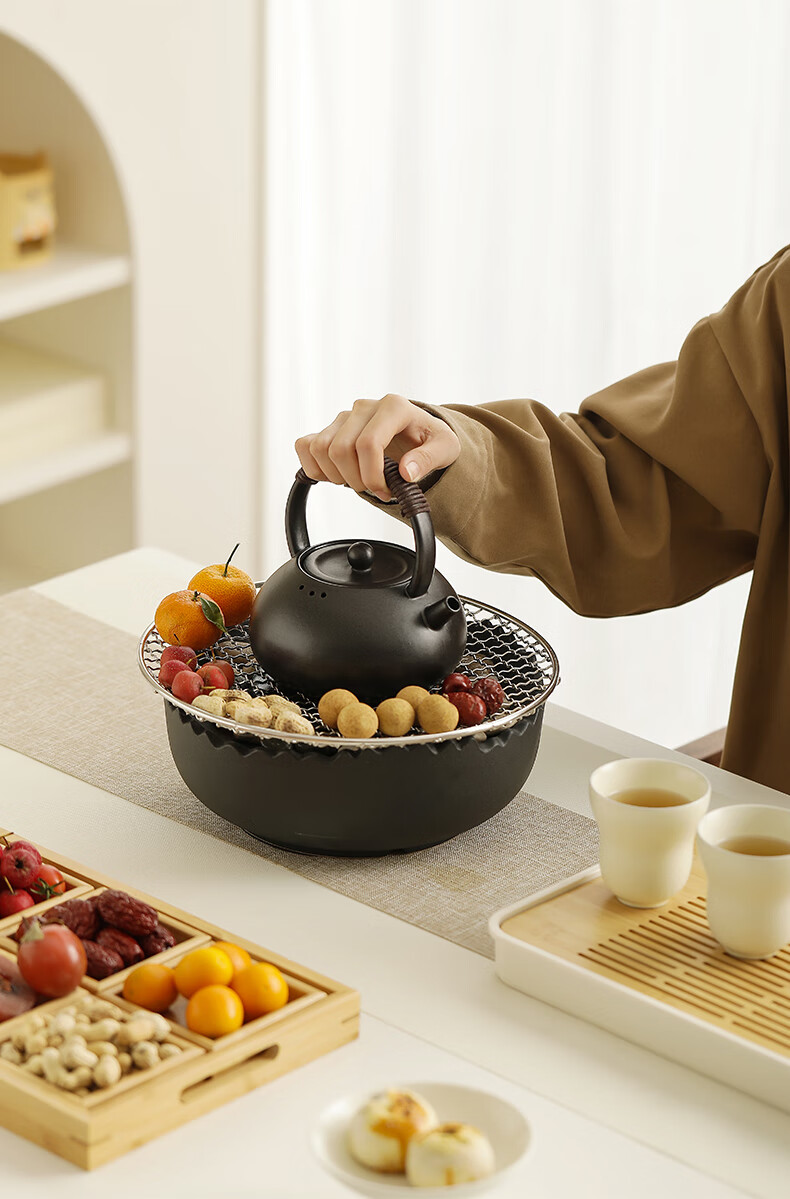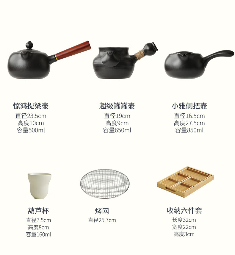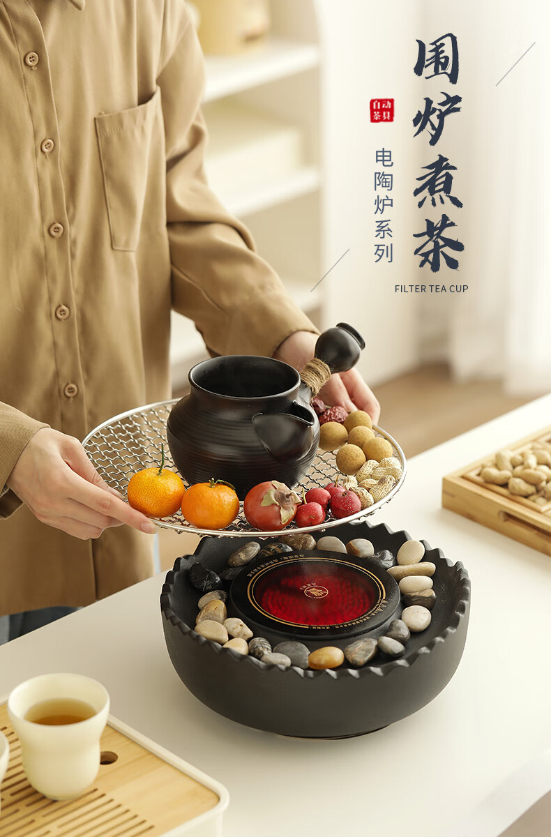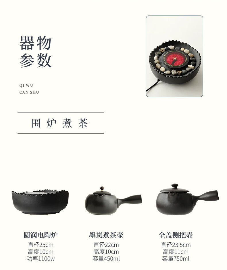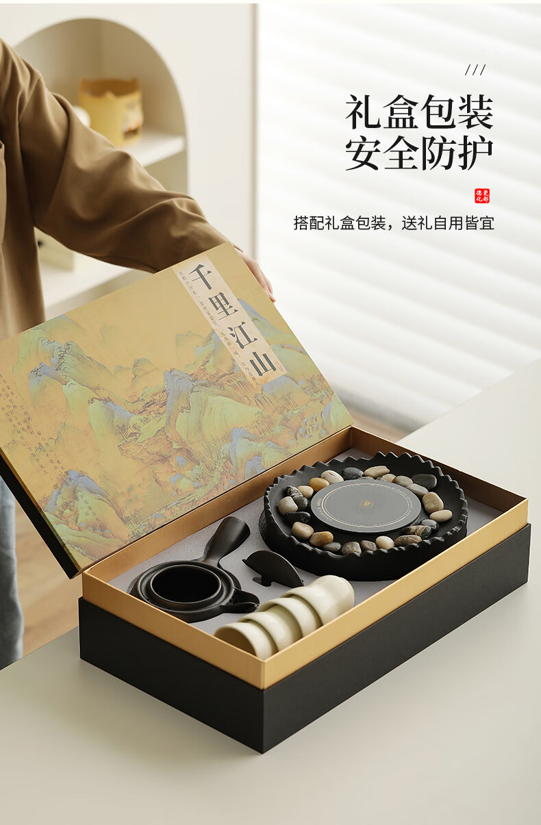 Mr. Ji cooks tea by the stove indoor household teapot electric ceramic stove gift box as a birthday gift for friends, elders, parents and teachers. Full cover side handle pot Yahei + Xiaoqu electric ceramic stove Yahei + 4 gourd cups in white gift box