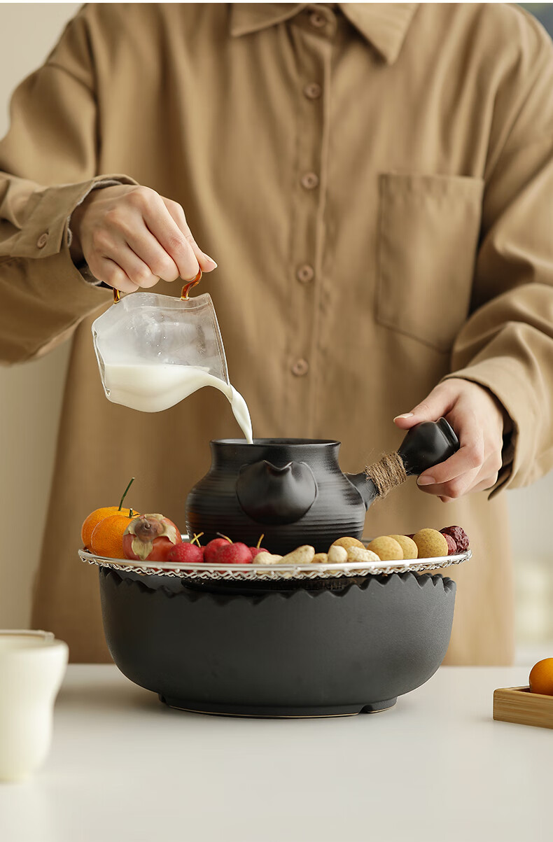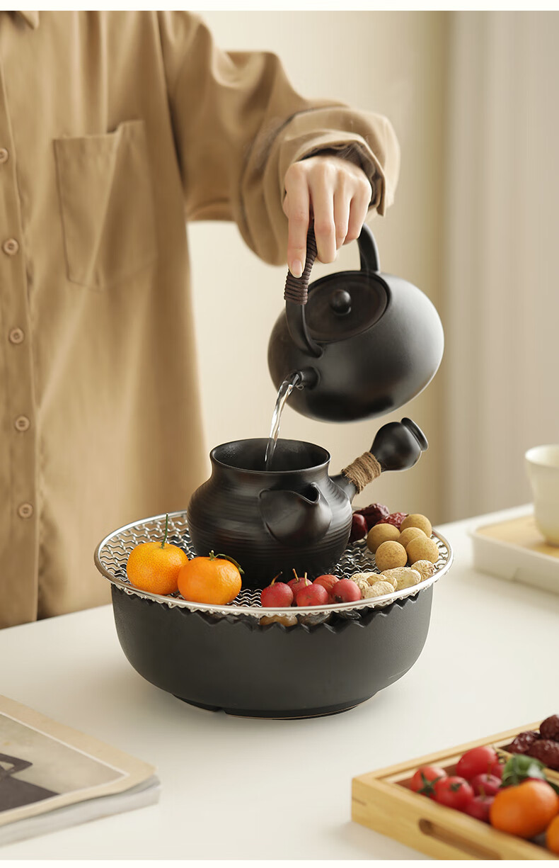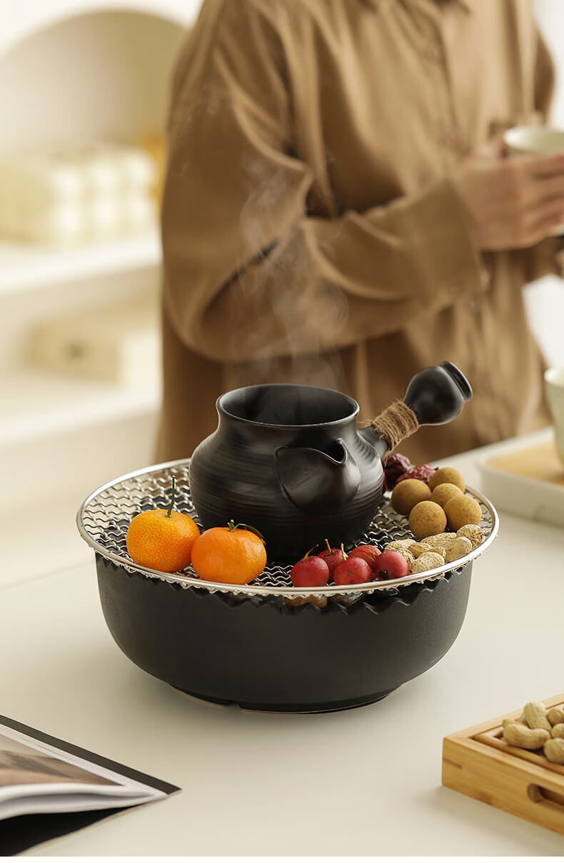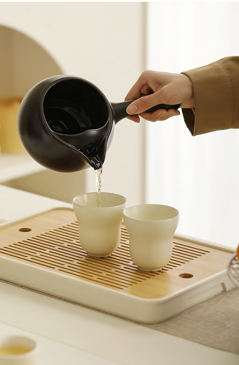 Mr. Ji cooks tea by the stove indoor household teapot electric ceramic stove gift box as a birthday gift for friends, elders, parents and teachers. Full cover side handle pot Yahei + Xiaoqu electric ceramic stove Yahei + 4 gourd cups in white gift box