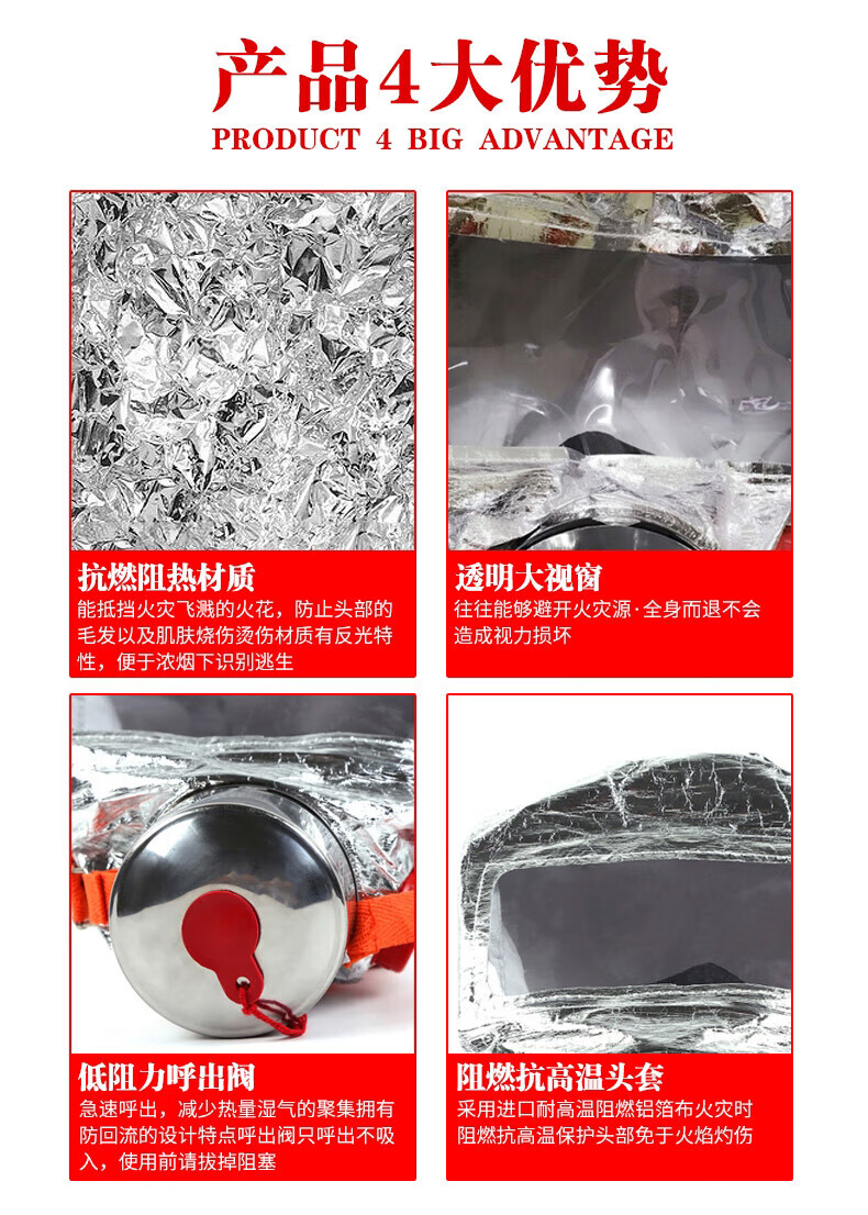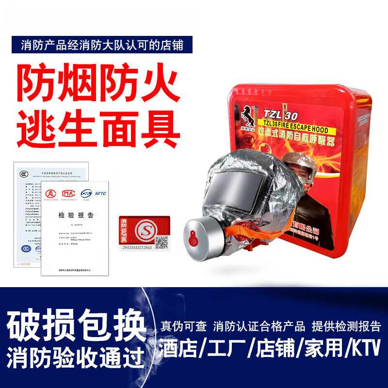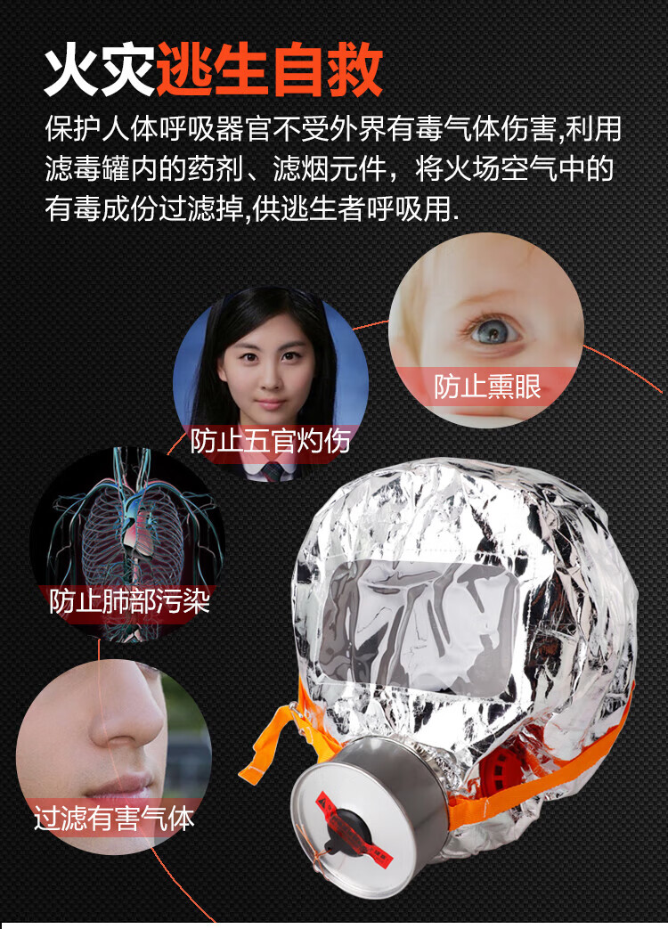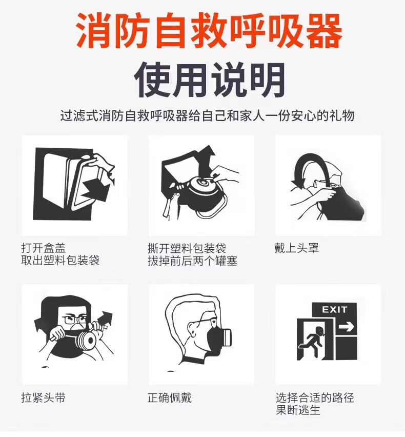 Anti-virus, anti-smoke and fire mask fire escape hotel household filtering respirator fire mask 4 boxes of escape masks (3C certification-fire certification)