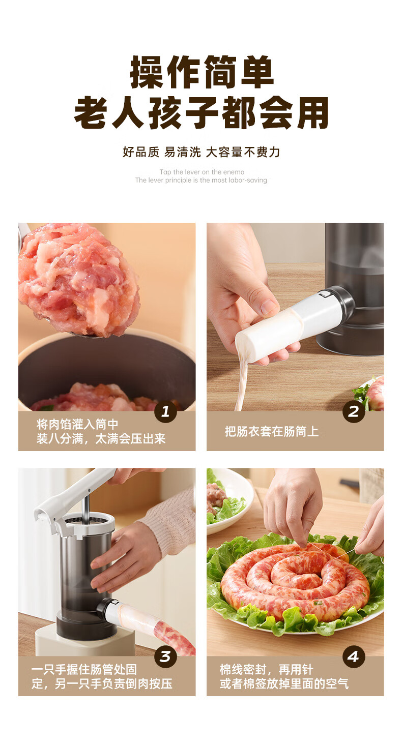 Enema artifact household enema machine casing filling sausage filling machine manual canned sausage tool sausage machine modern gray free 4 enema tubes labor-saving lever
