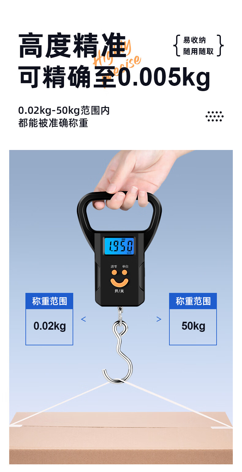 Household portable scale portable mini electronic scale stall high-precision hanging structure scale 50kg express parcel scale black 50kg/battery model