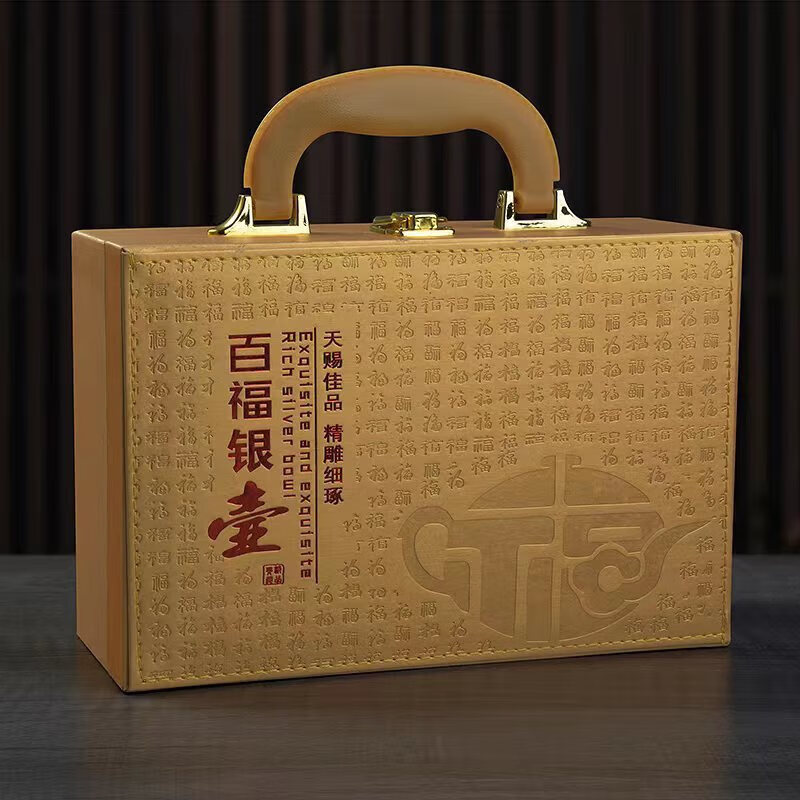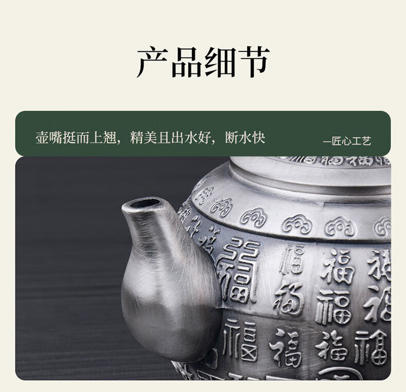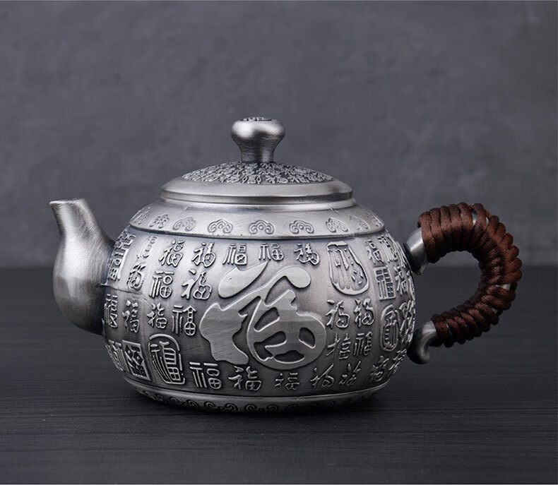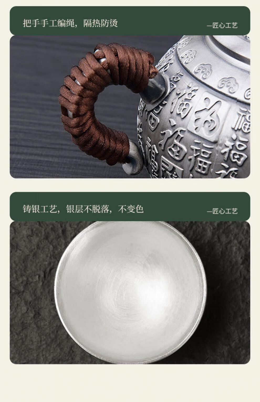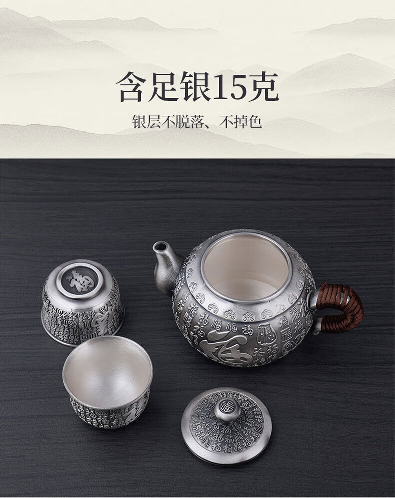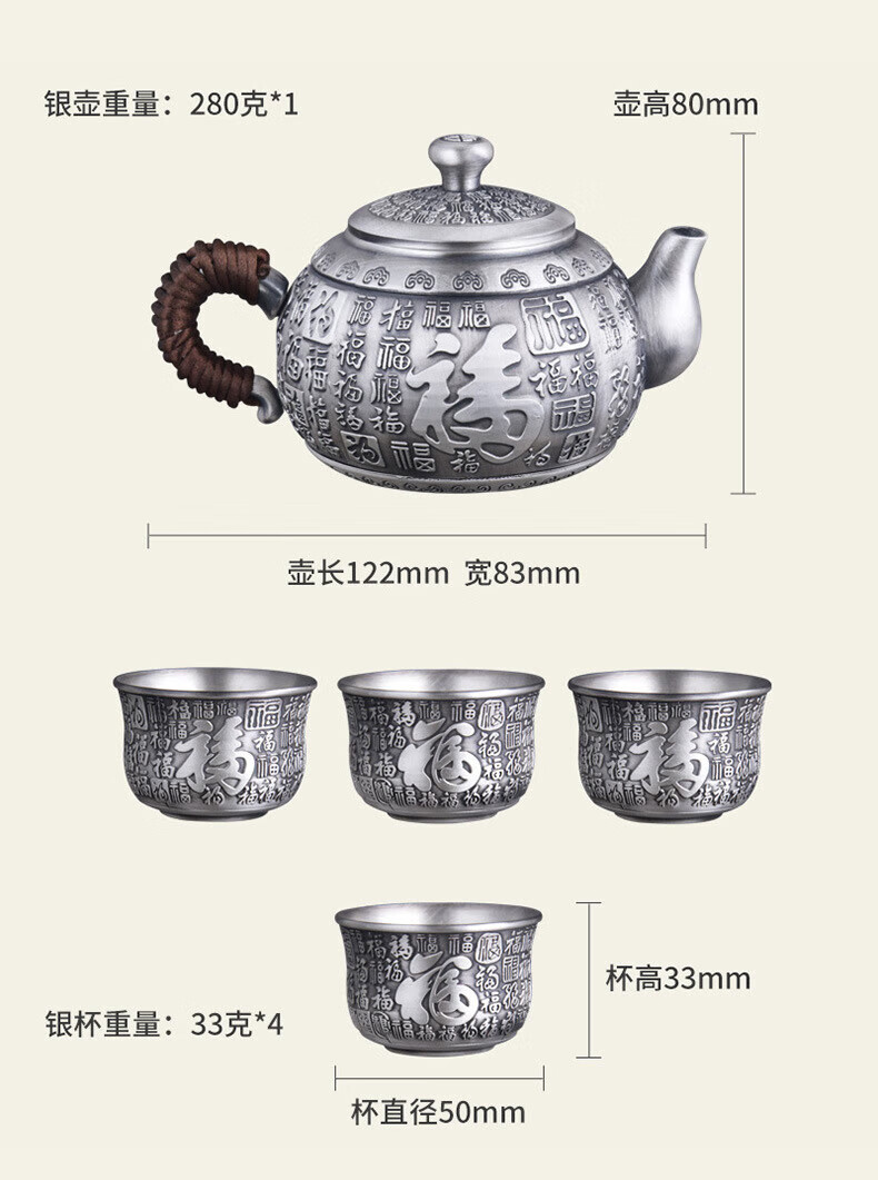 Fat Donglai same style pure silver tea set Baifu silver pot home 999 silver tea cup creative sterling silver gift kettle set (bright silver) brown high-end leather box 5 pieces