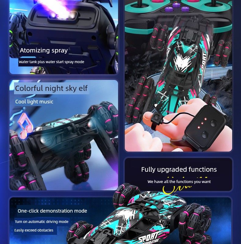 Shantou Lincun children's gesture sensor remote control car deformation 8-wheel off-road stunts 4-wheel drive spray drift racing boy 8-wheel cool red handle remote control + spray + 360 flip outdoor play 3 sets of battery life + remote control + screwdriver