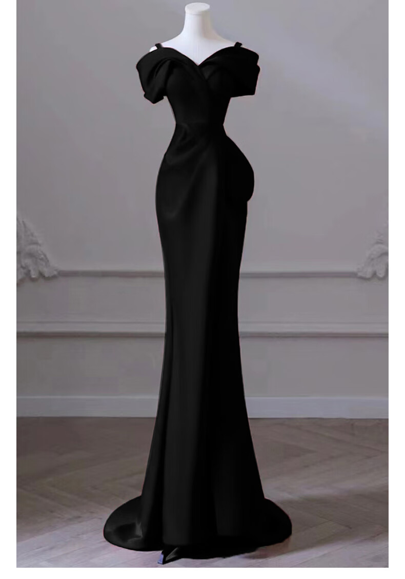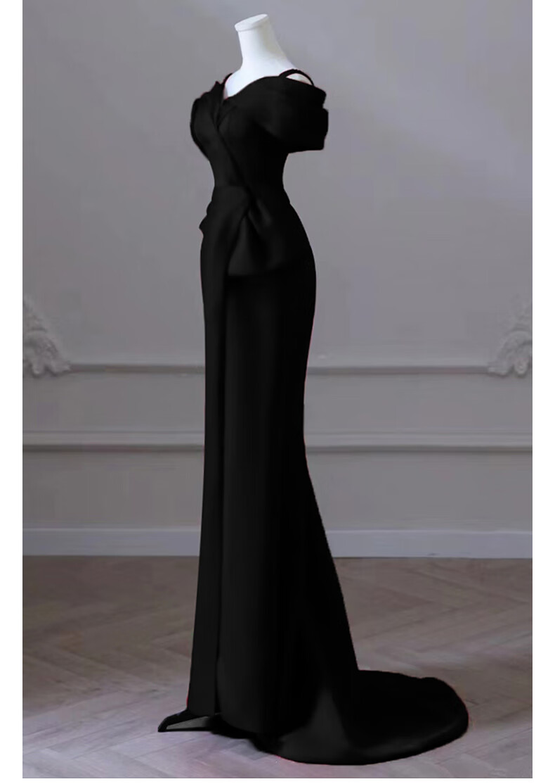 Hong Kong soft adult gorgeous one-shoulder dress art test fishtail black dinner party elegant dress female light luxury niche host black floor-length style XS one-shoulder style one size