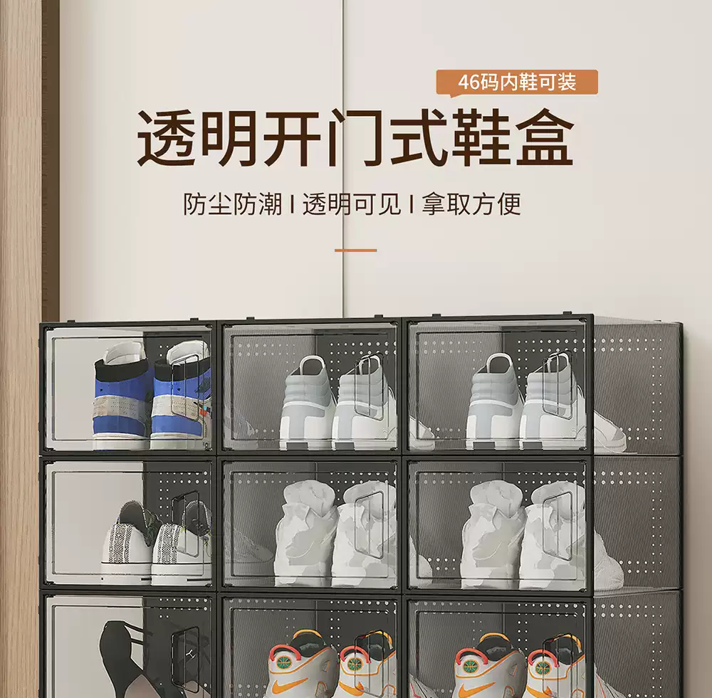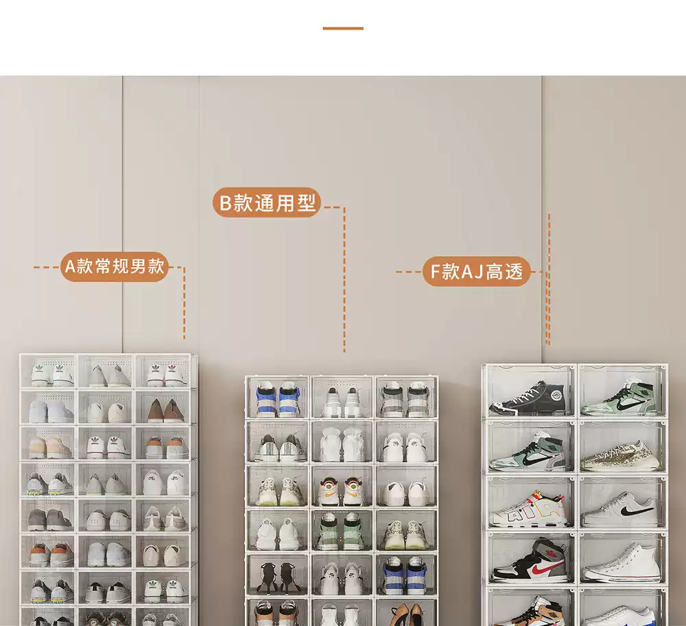 Fantasy Thickened Shoe Box Storage Box Transparent Folding Storage Box Plastic Sneaker Rack Shoe Cabinet Drawer-type Space-Saving Artifact B Style - Hot Selling Recommendation 46.5 Size White Transparent Buy 8 Style B - Hot Selling Recommendation 46.5 Size White Transparent Buy 8