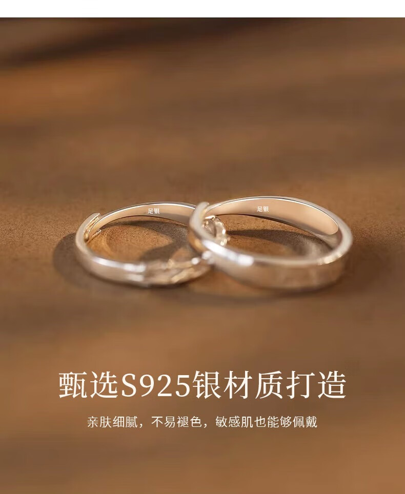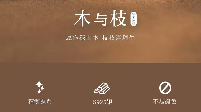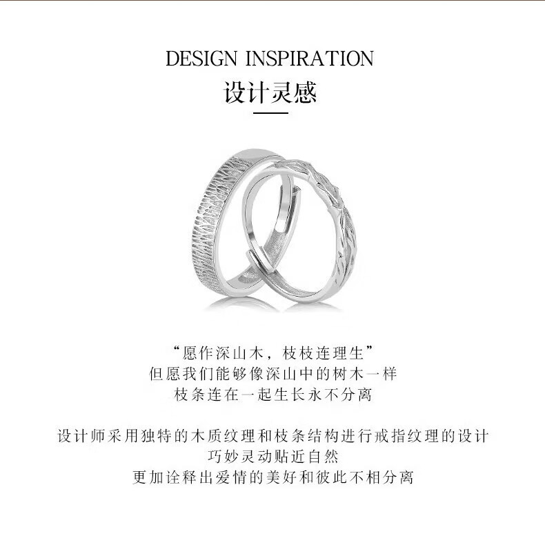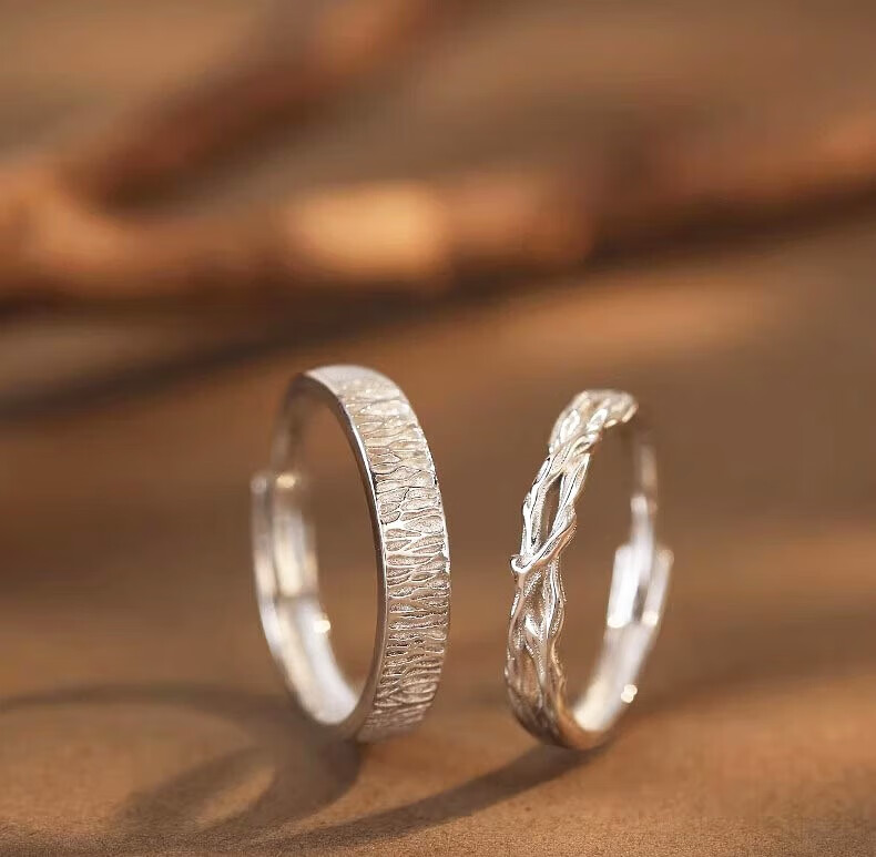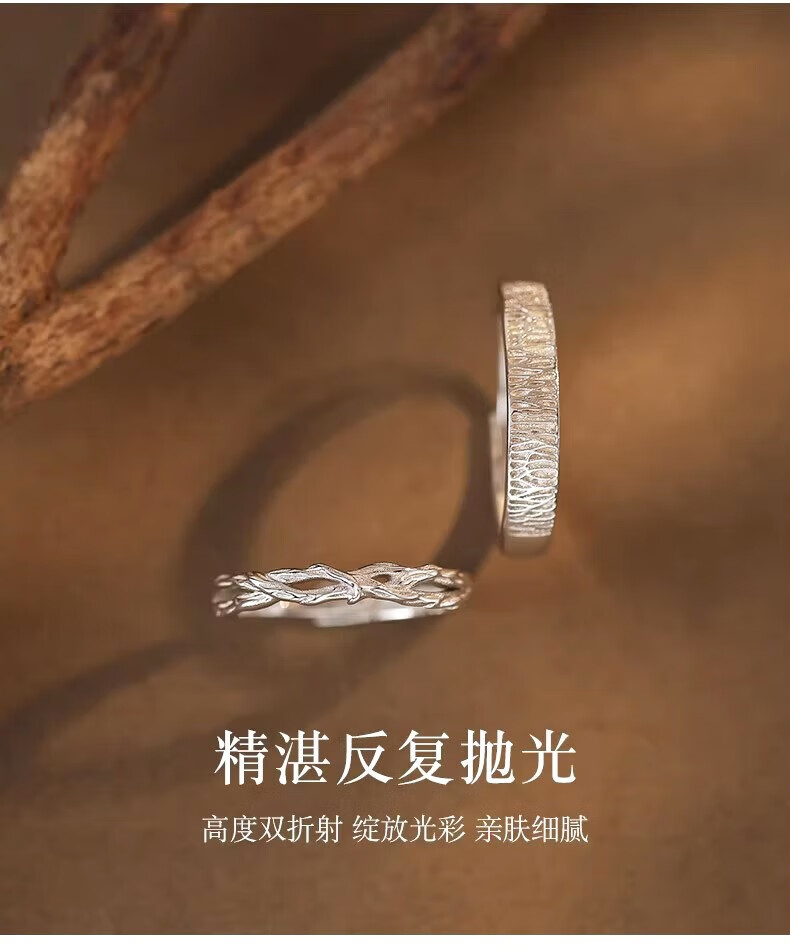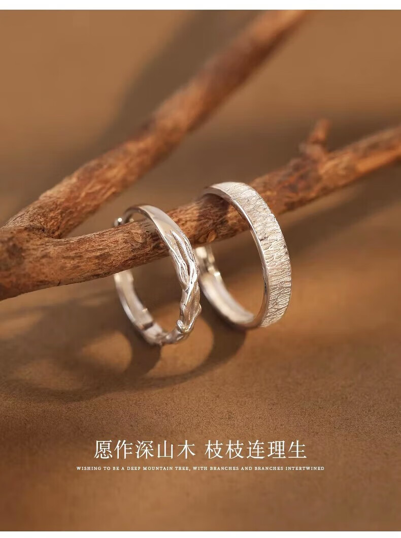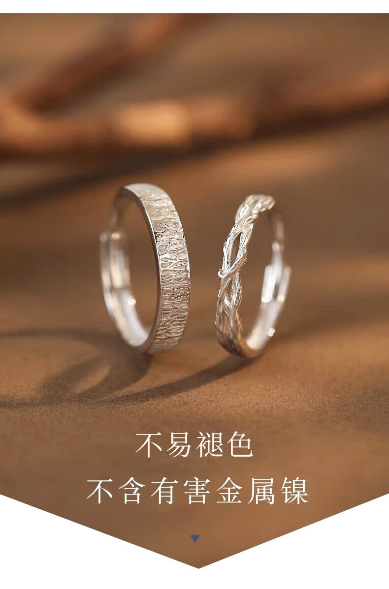 Lao Fengxiang S925 sterling silver wood and branch couple rings, a pair of wedding rings, commemorative birthday gifts for boyfriend and girlfriend, shipped by JD.com * Same day/next day delivery - Guofeng wood and branch pair of rings