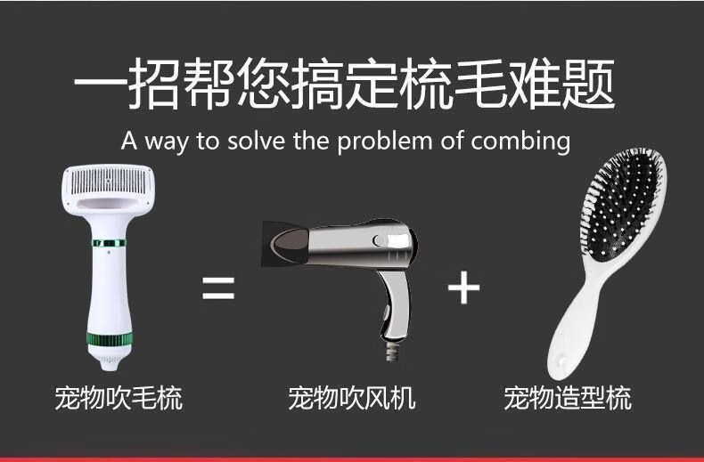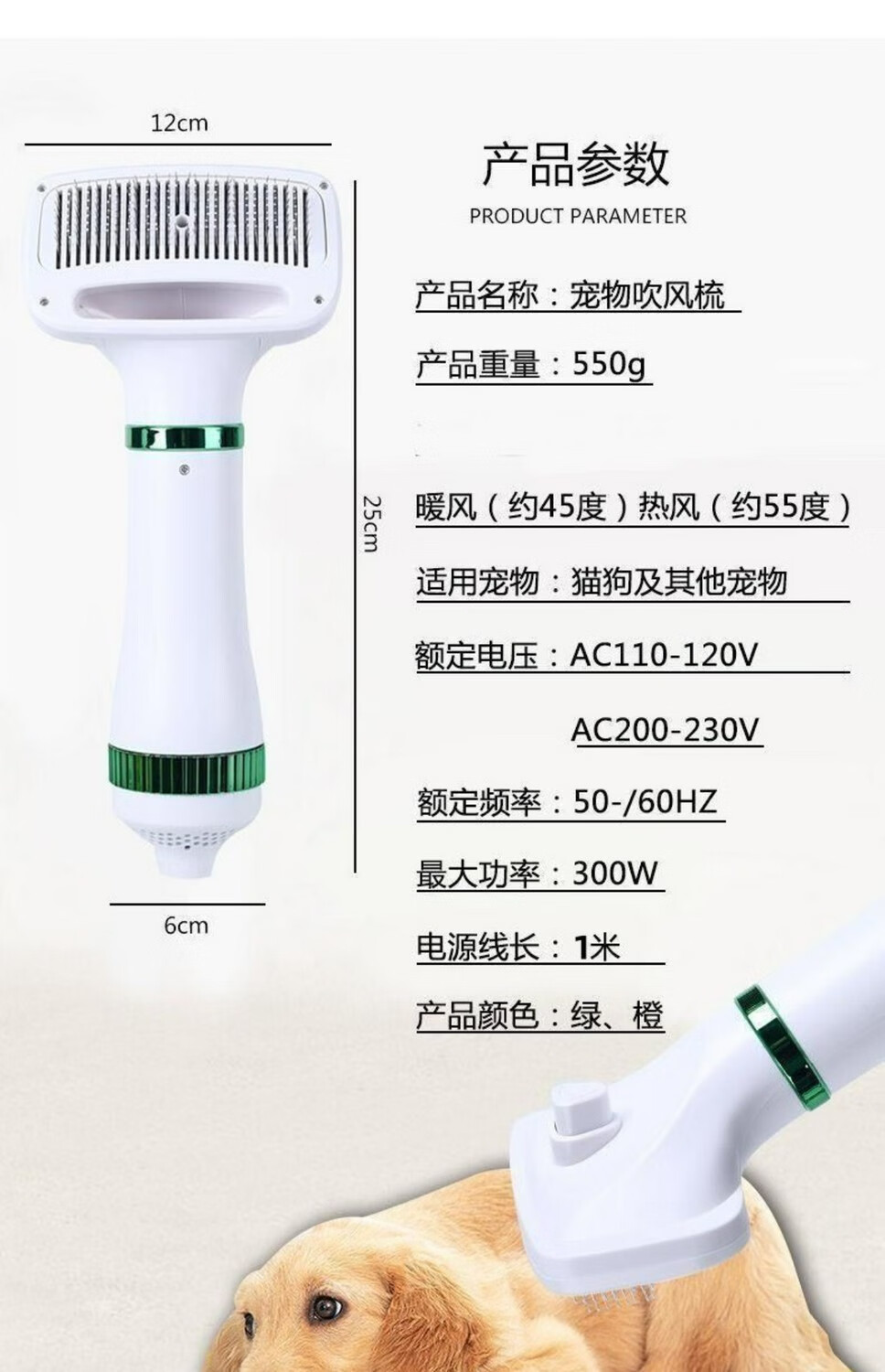 Pet hair dryer, all-in-one quick-drying Bichon Teddy fluffy comb, cat and dog bathing and blow-drying tool, dry + double