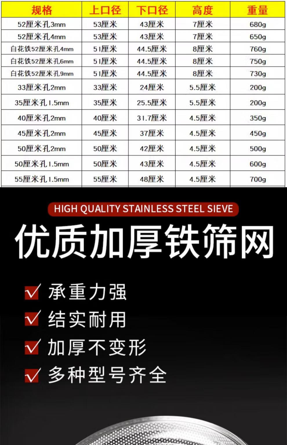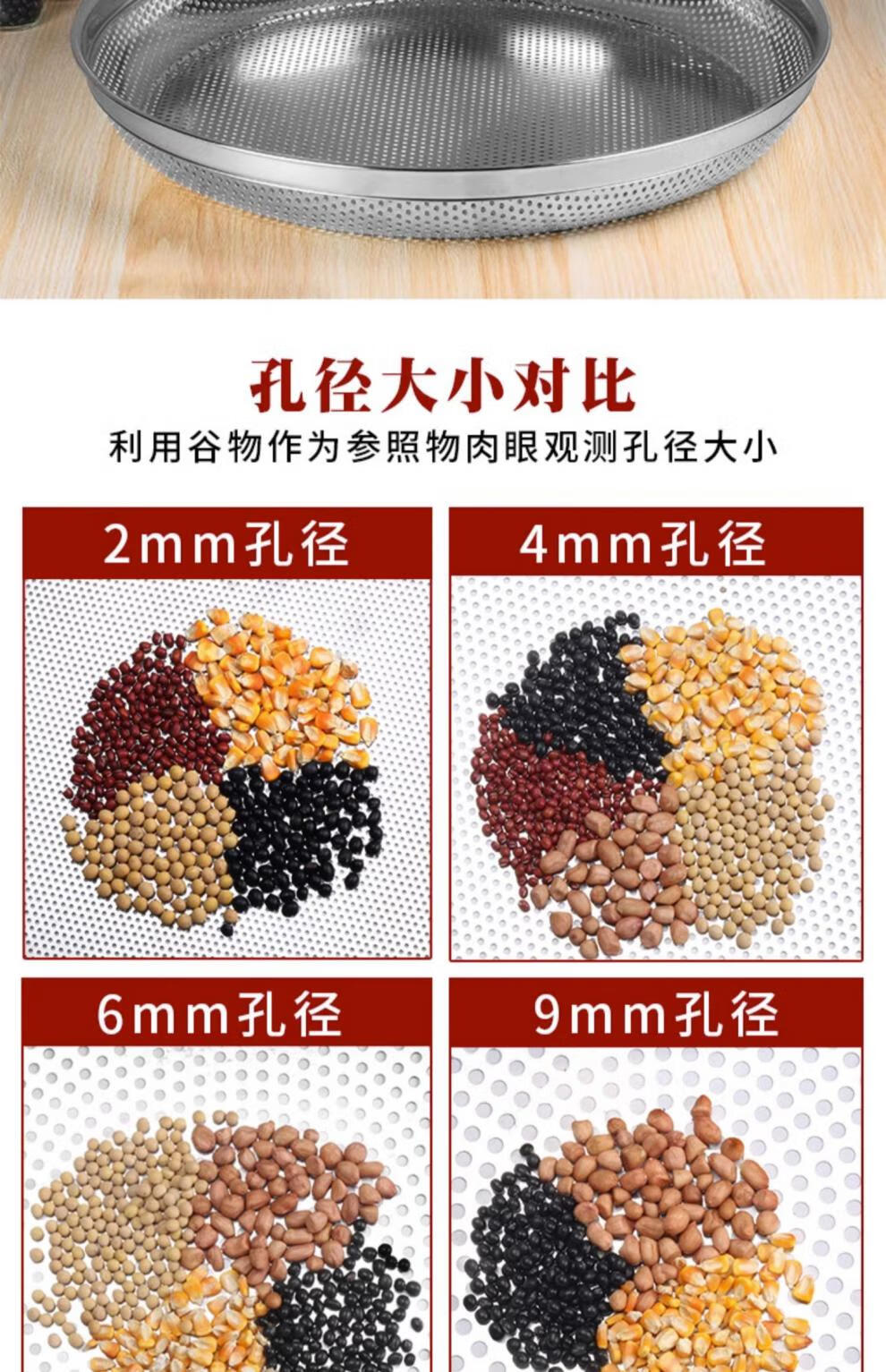 XJ sieve stainless steel sieve dustpan drying filter rice sieve sand gardening sieve soil sieve grain grain filtration stainless steel 60 cm high 7 cm hole 2mm