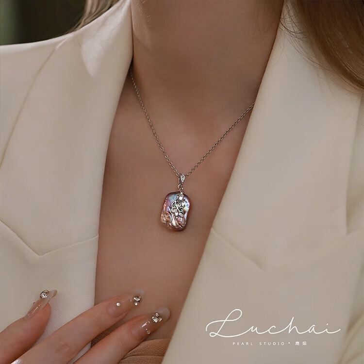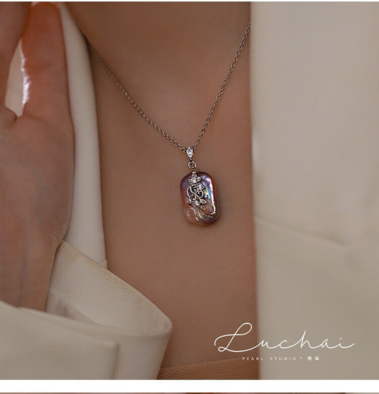 Buhesyt Pearl Pendant Single Shaped Baroque Purple Sweater Necklace Sweater Chain Grand Baroque Necklace