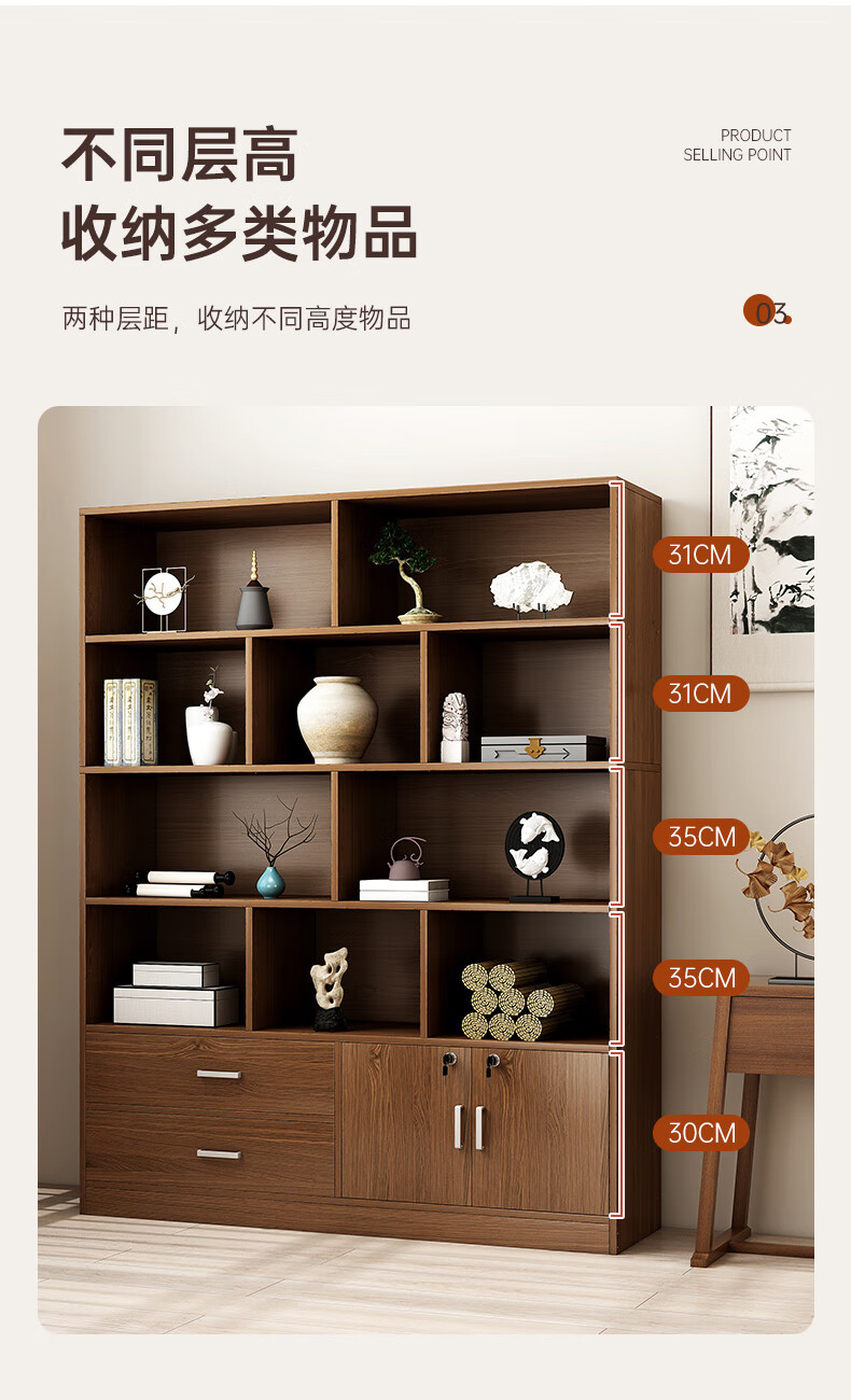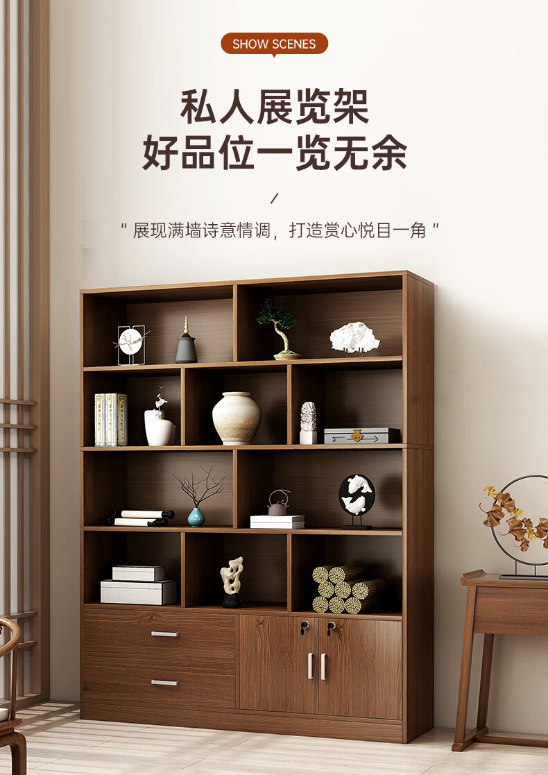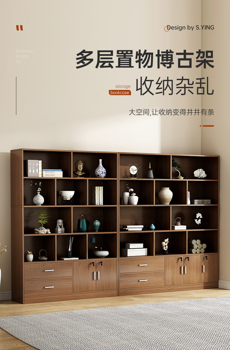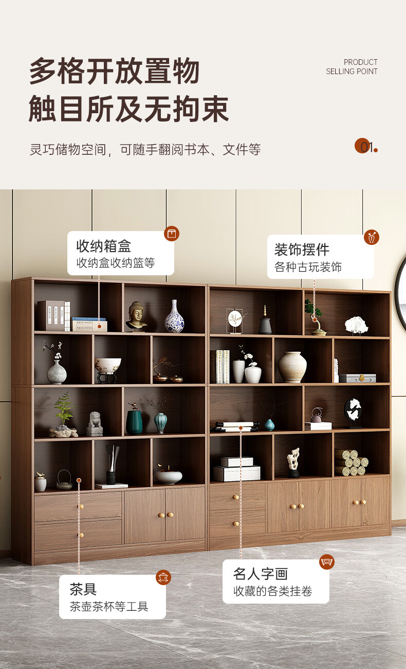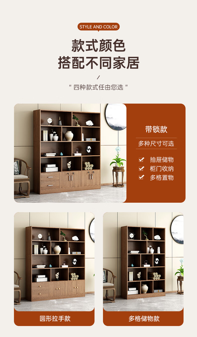 Bogu rack floor-standing tea storage cabinet antique rack tea set storage rack Chinese display cabinet Duobao Pavilion storage rack (walnut color) three layers 50*20*65cm