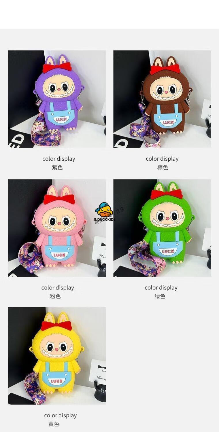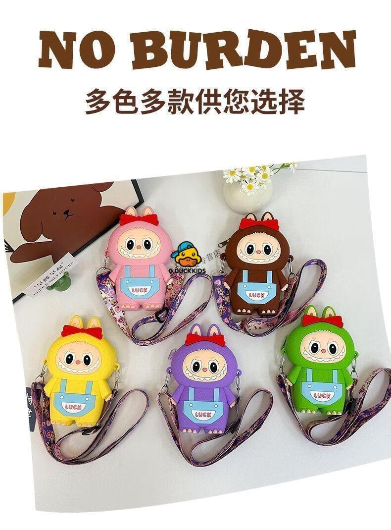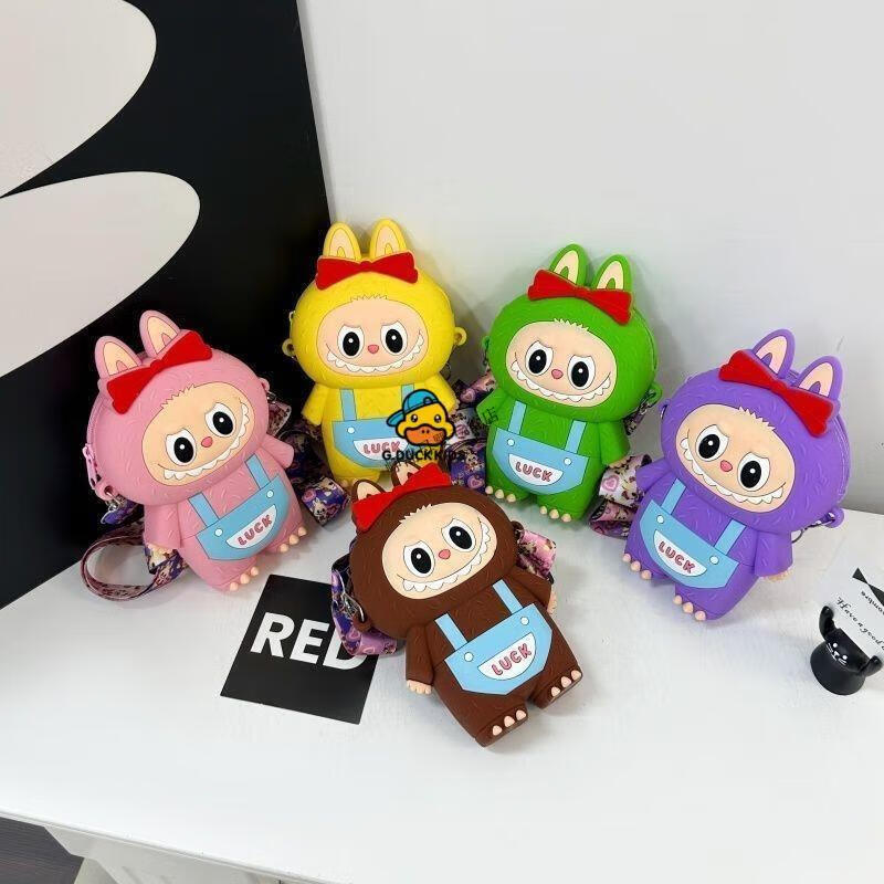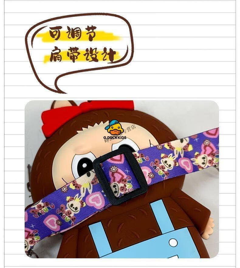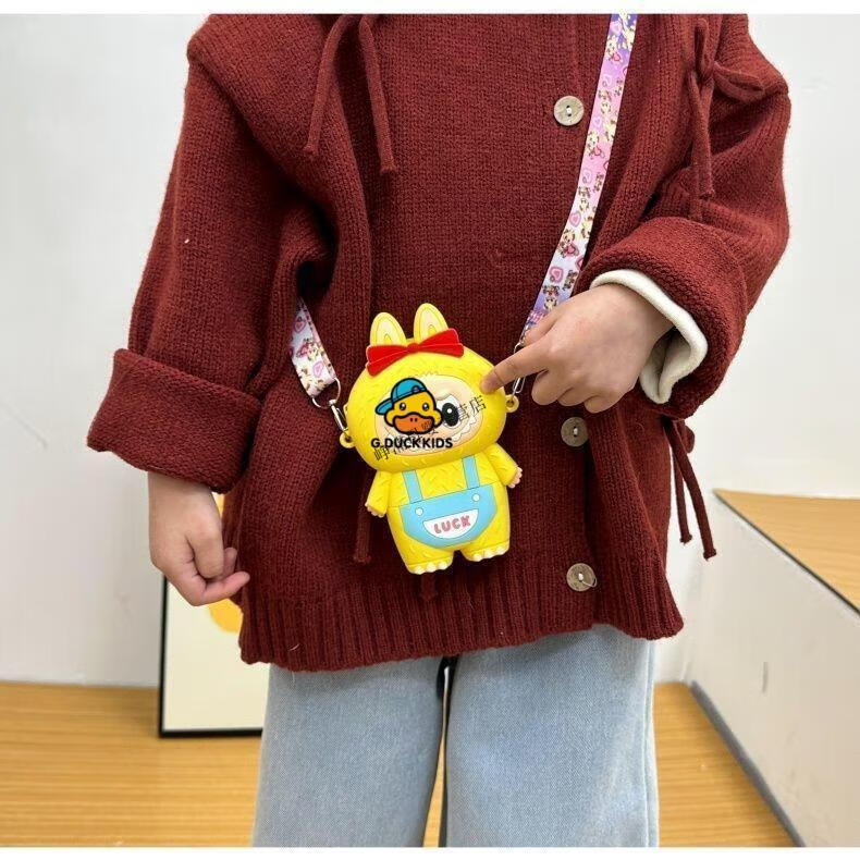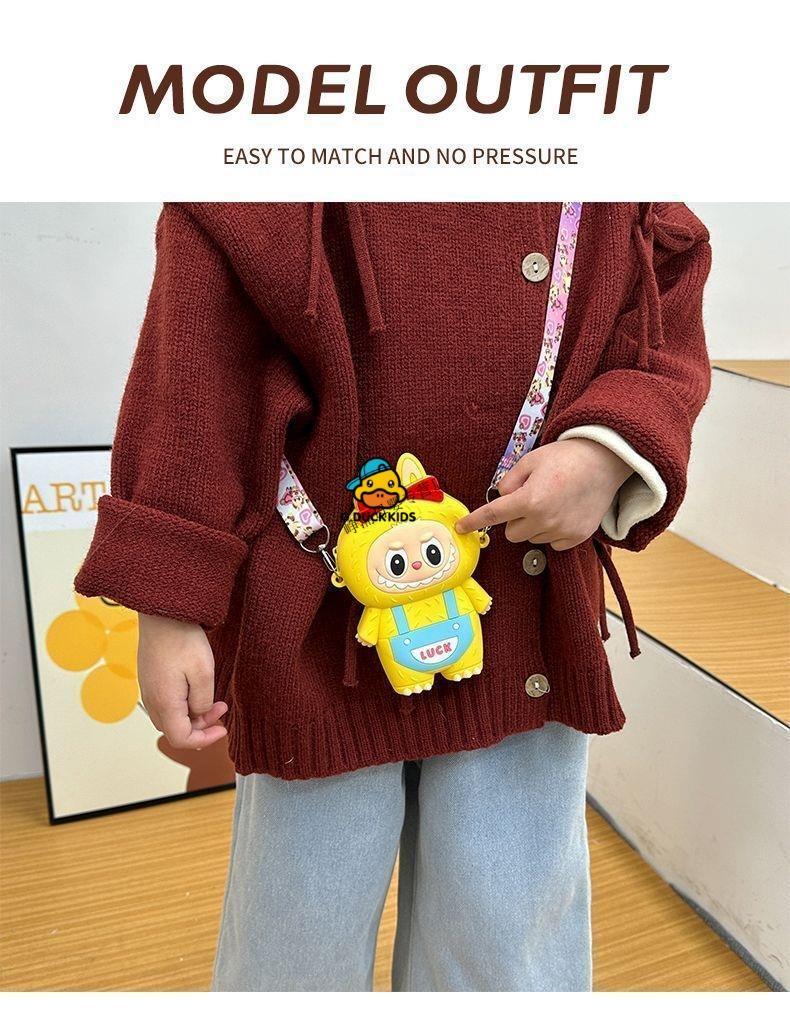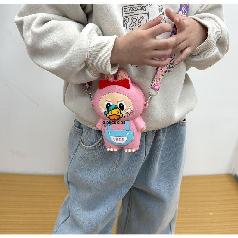 G.DUCKKIDS Little Yellow Duck New Labbu Messenger Bag Cartoon Cute Messenger Bag Boys and Girls Coin Purse Student Silicone Labub Overalls - Pink