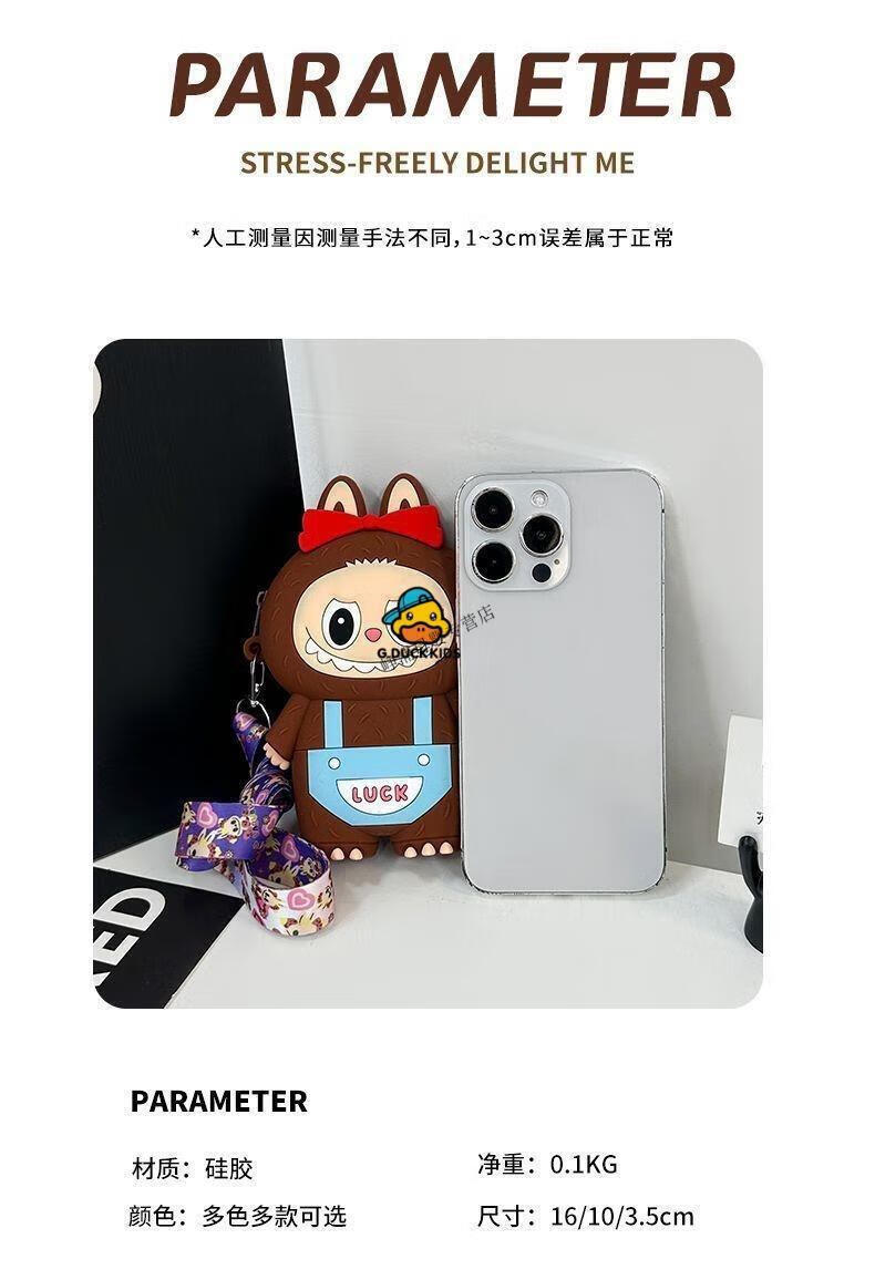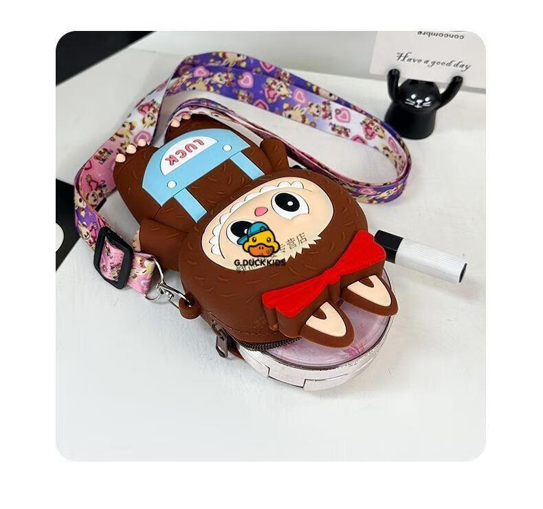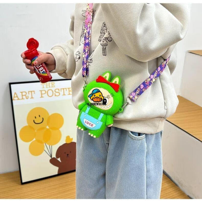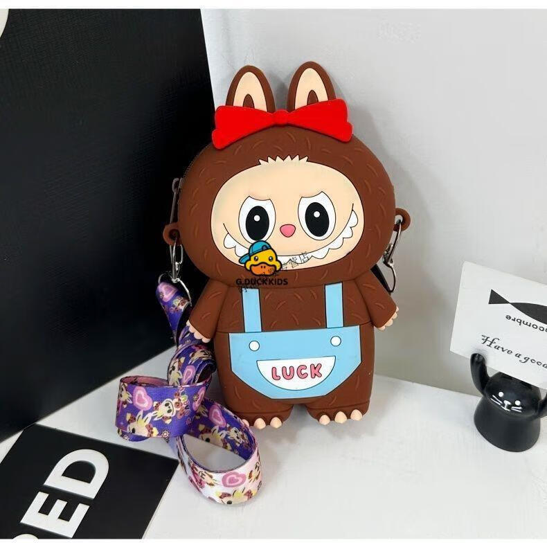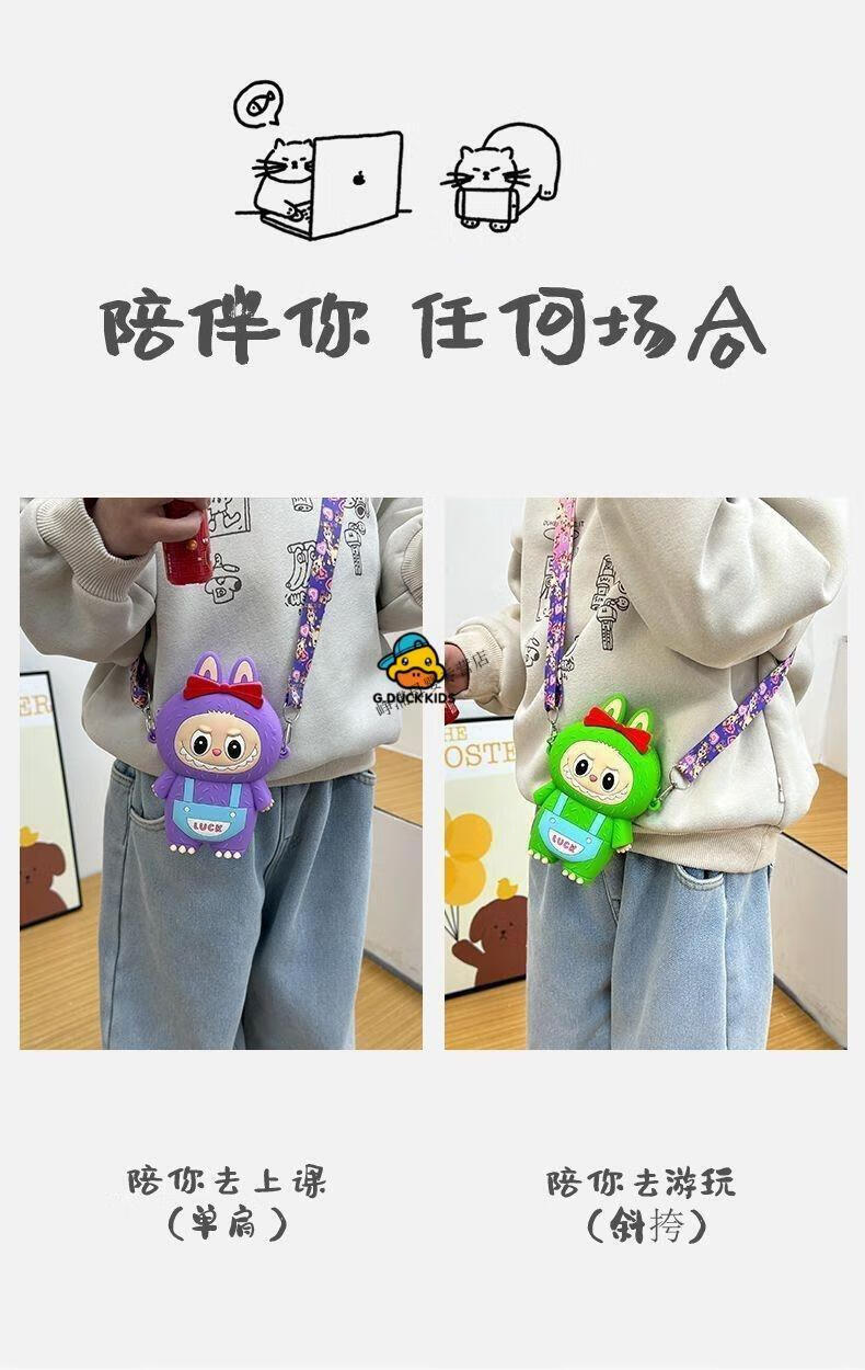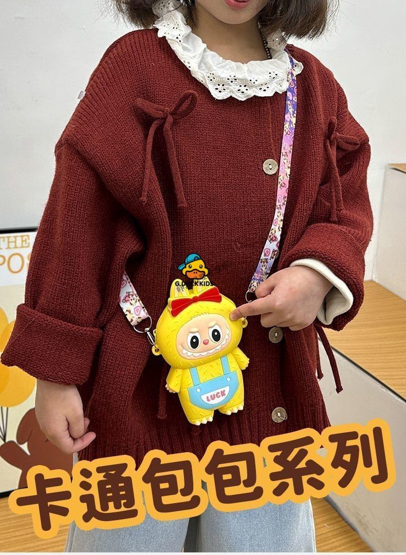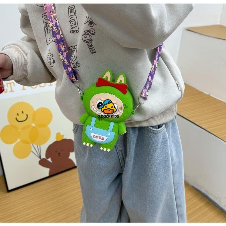 G.DUCKKIDS Little Yellow Duck New Labbu Messenger Bag Cartoon Cute Messenger Bag Boys and Girls Coin Purse Student Silicone Labub Overalls - Pink