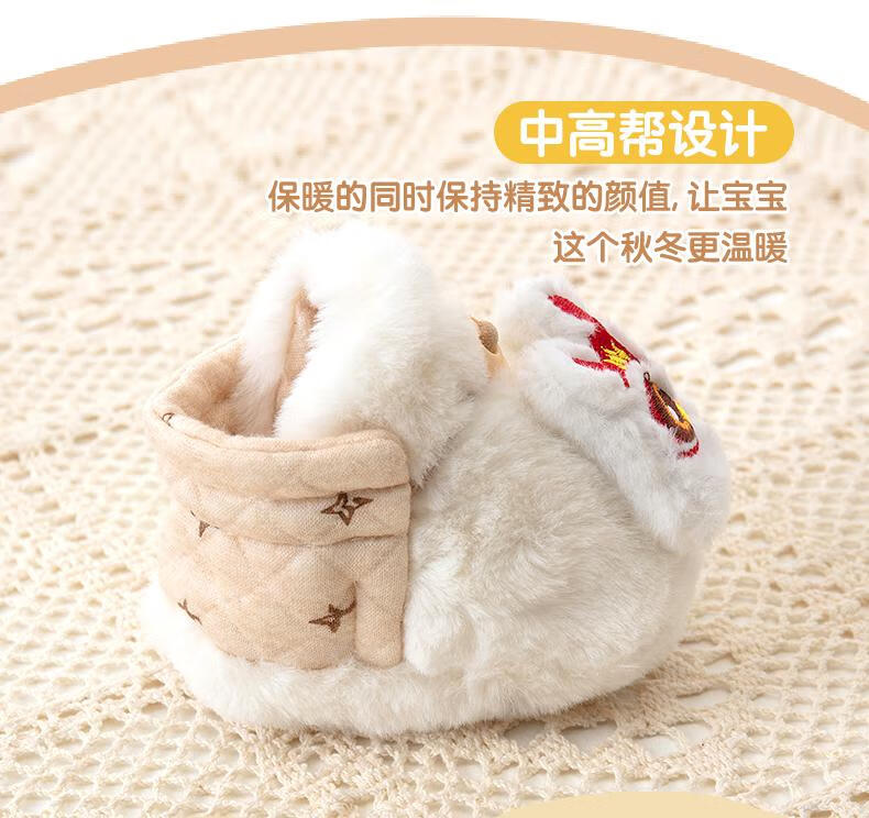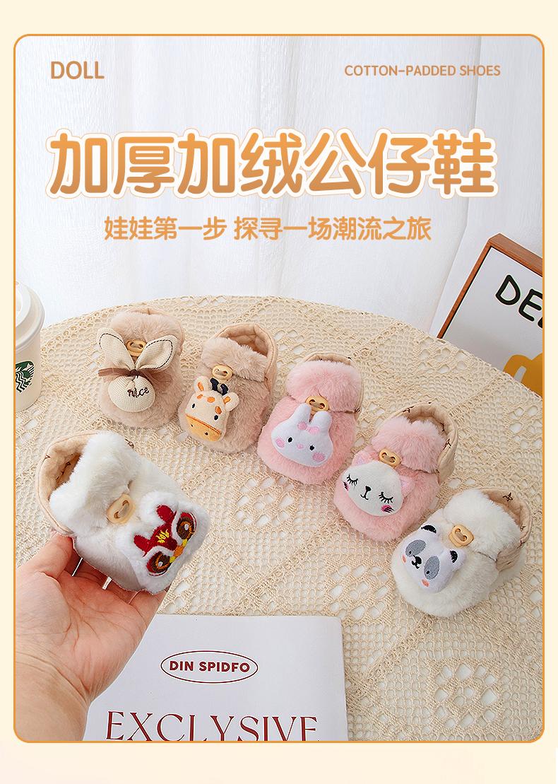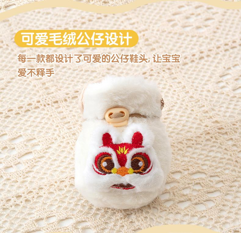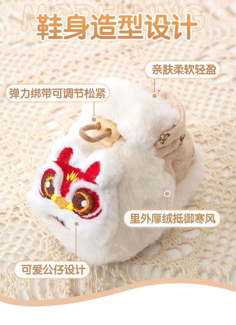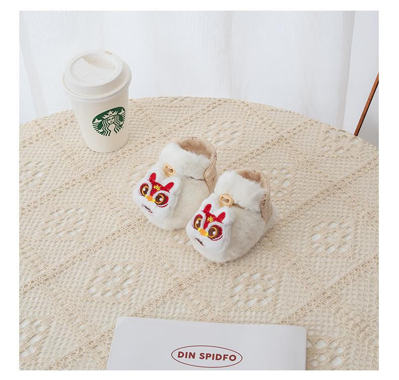 Baby autumn and winter thickened plush cartoon fur shoes warm walking shoes 0-12 months soft-soled baby shoes baby shoes white lion awakening 12 L size inner length 12cm (recommended 6-12 months)