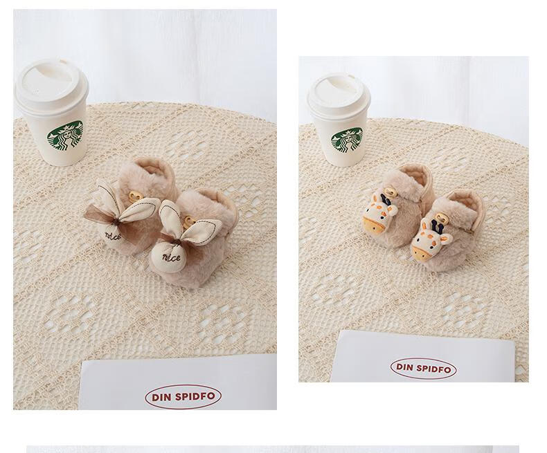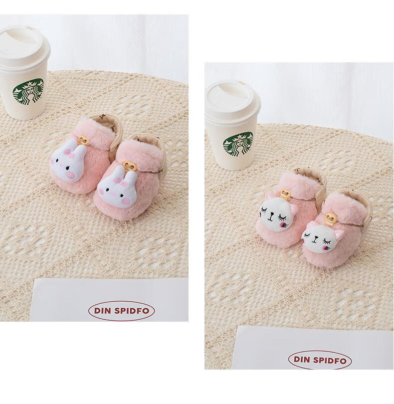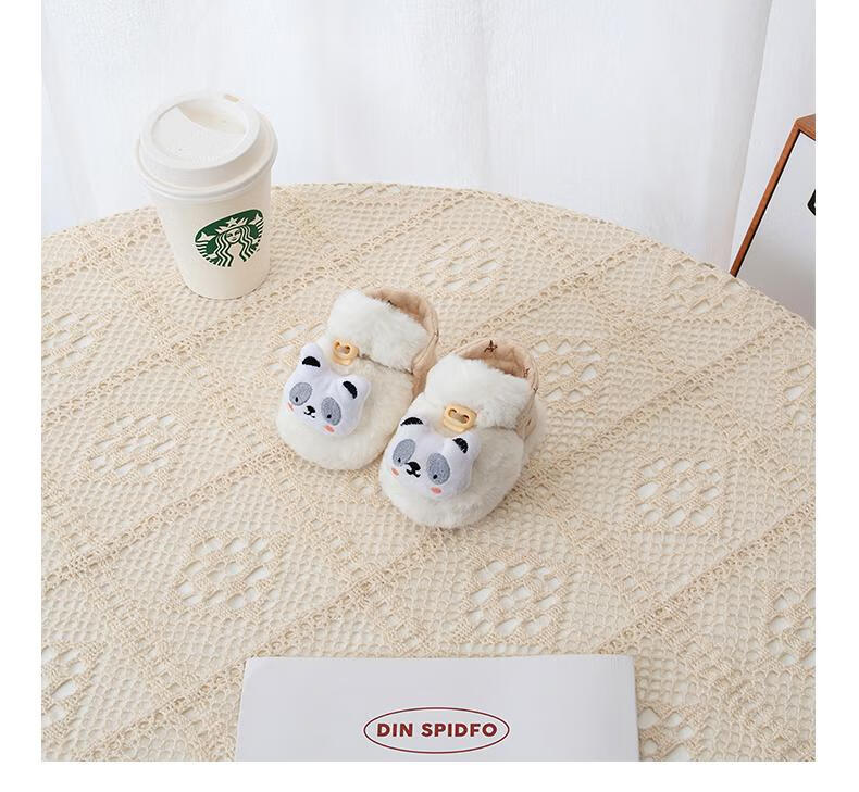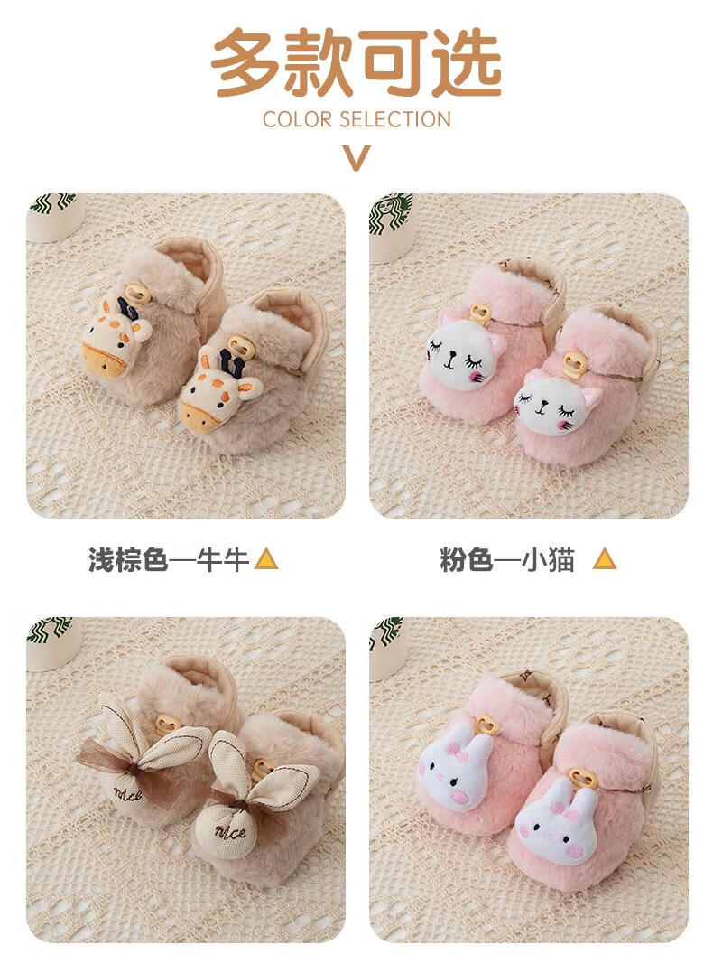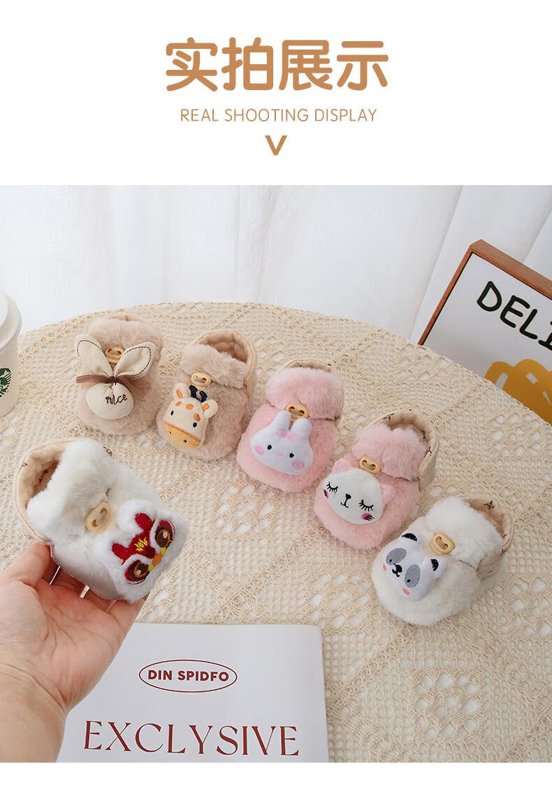 Baby autumn and winter thickened plush cartoon fur shoes warm walking shoes 0-12 months soft-soled baby shoes baby shoes white lion awakening 12 L size inner length 12cm (recommended 6-12 months)