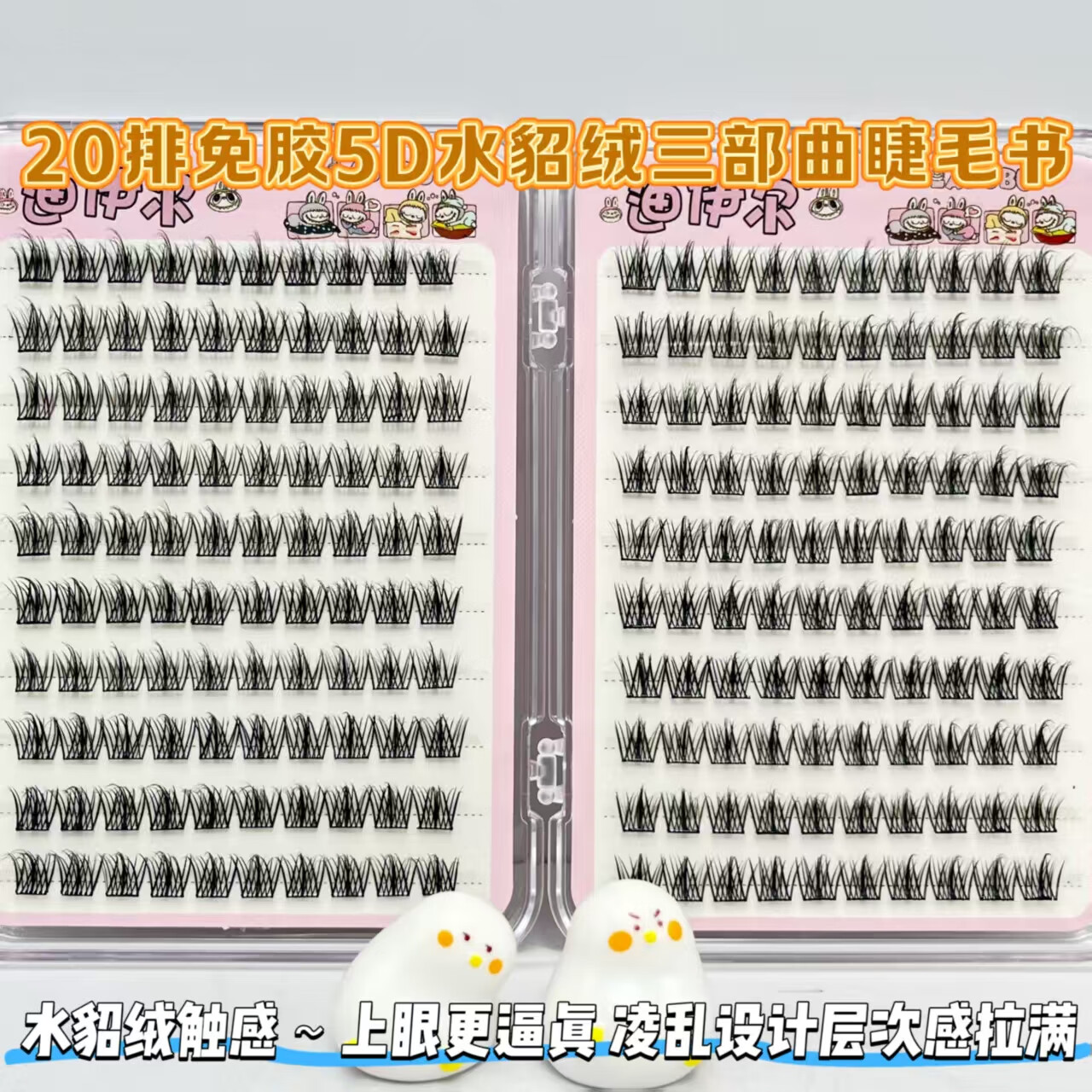 Glue-free 5D baby curved layered mink plush false eyelashes for women messy lazy trilogy eye false eyelashes 20 rows of glue-free 5D mink velvet single box