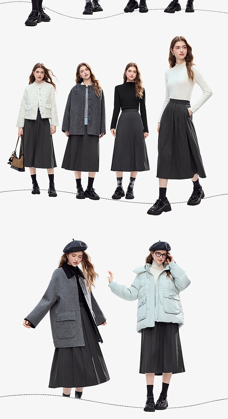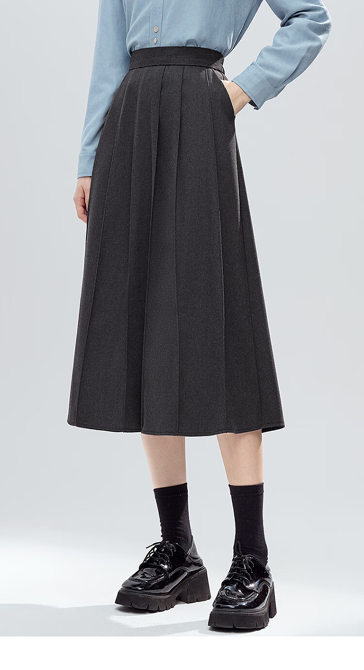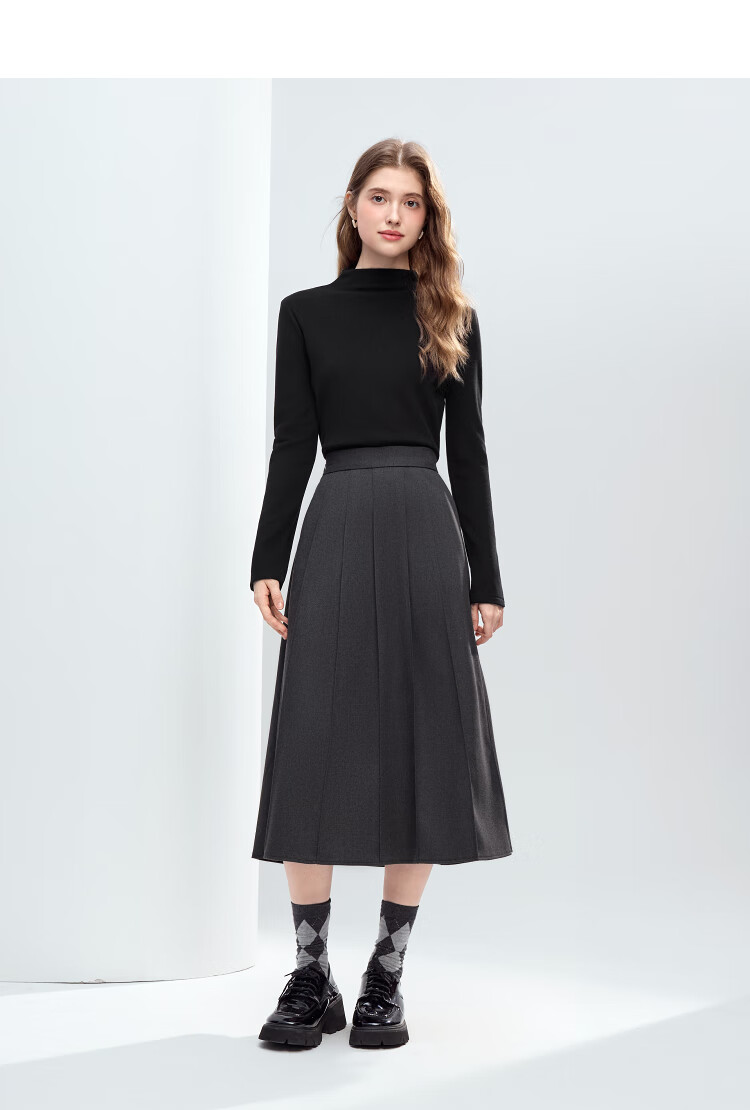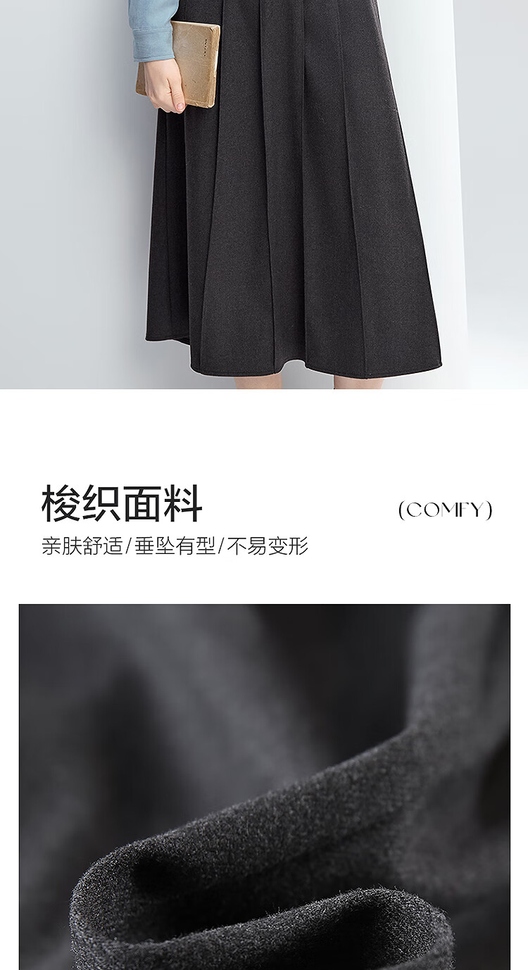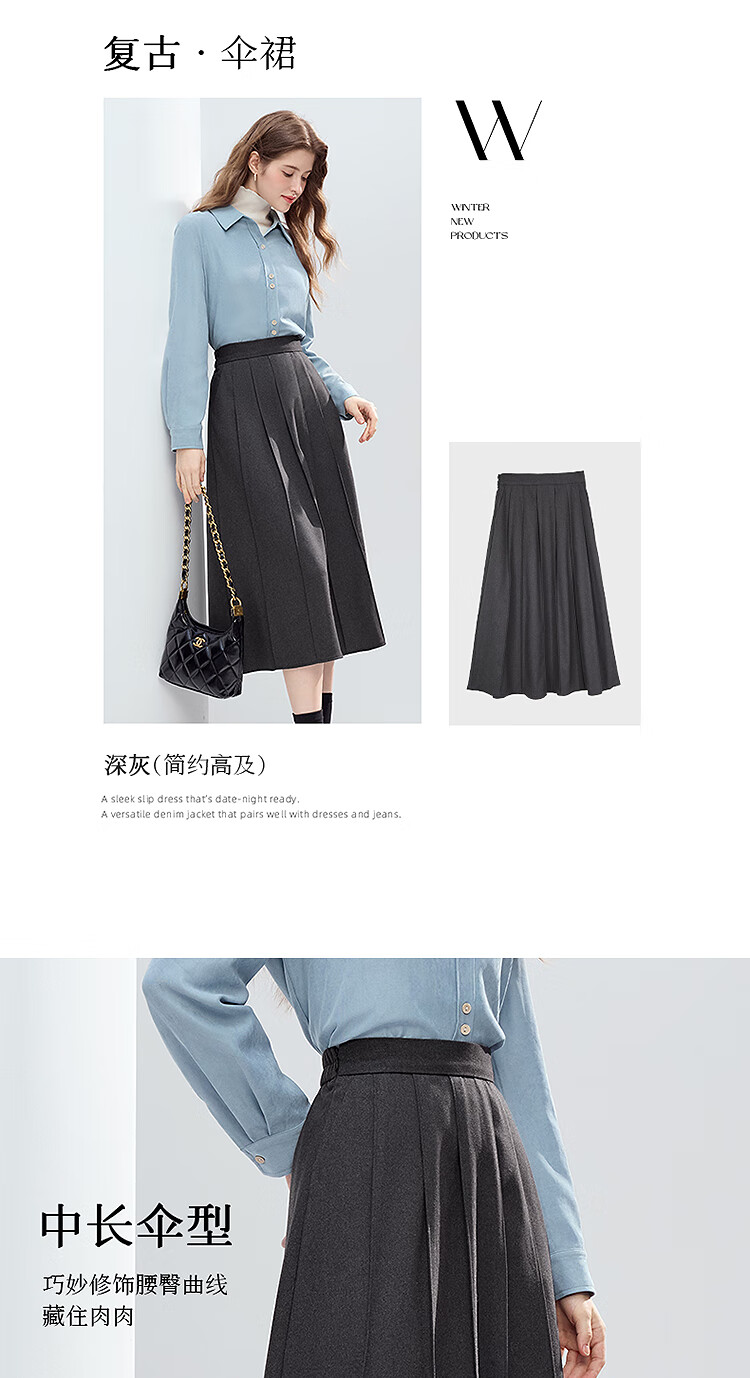 Betu Women's 2025 Winter New Style Mid-High Waist Striped Design Retro Umbrella Skirt Skirt Women 2510T73 Dark Gray M