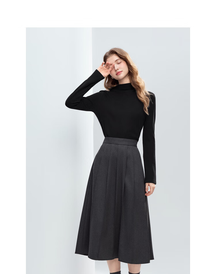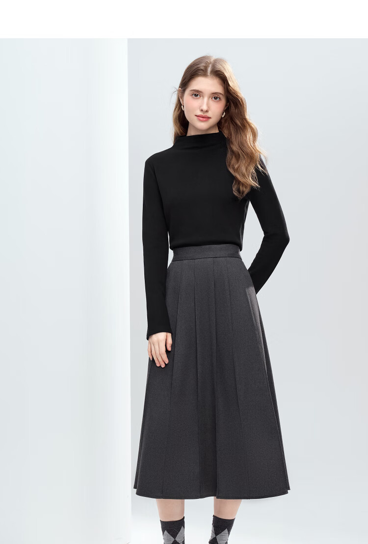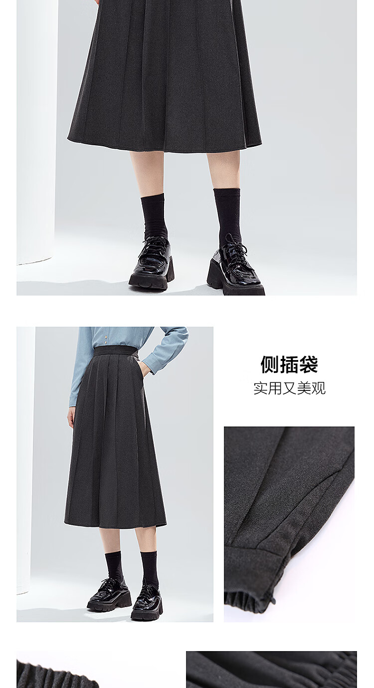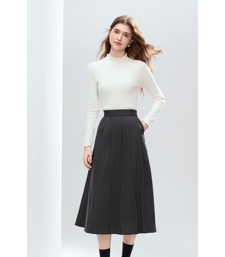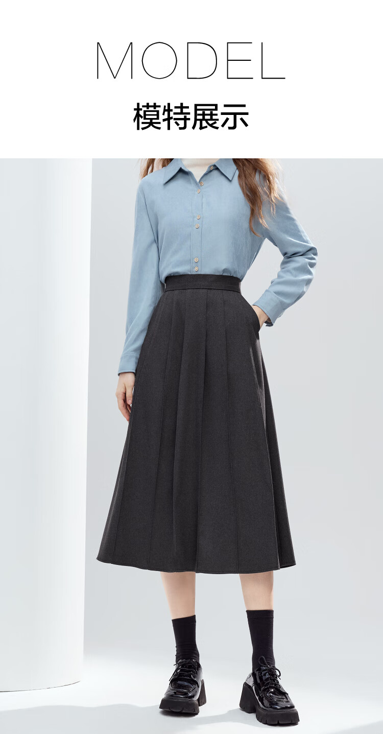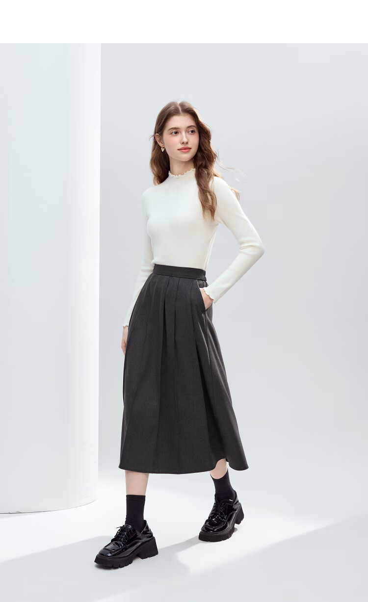 Betu Women's 2025 Winter New Style Mid-High Waist Striped Design Retro Umbrella Skirt Skirt Women 2510T73 Dark Gray M