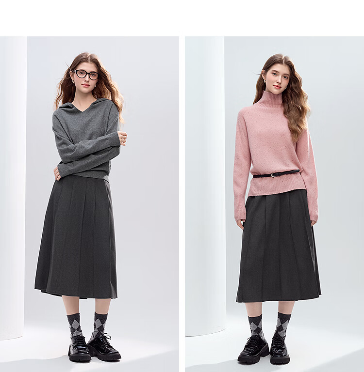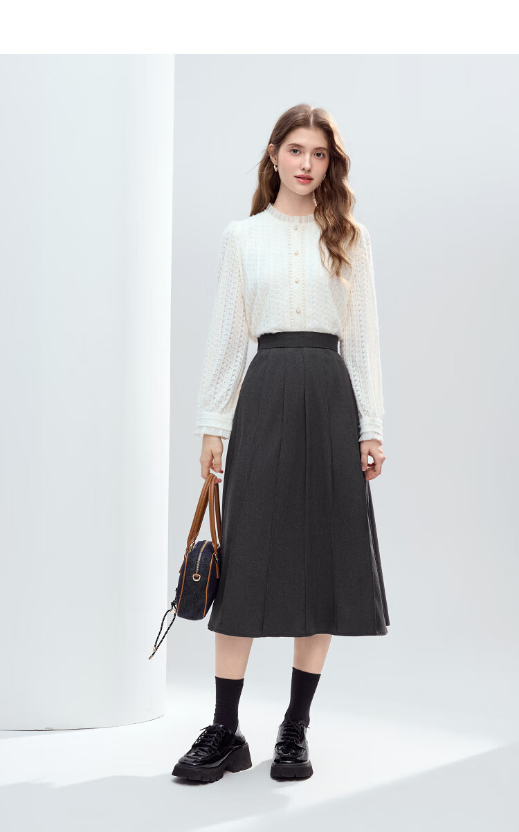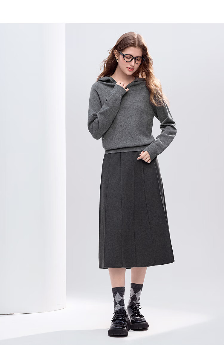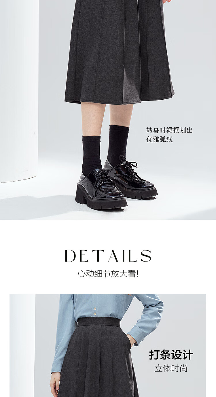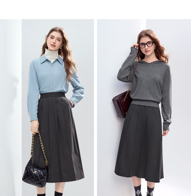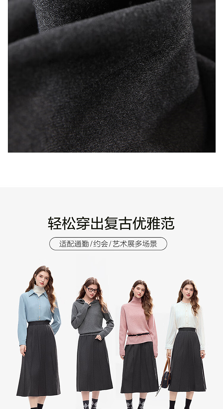 Betu Women's 2025 Winter New Style Mid-High Waist Striped Design Retro Umbrella Skirt Skirt Women 2510T73 Dark Gray M