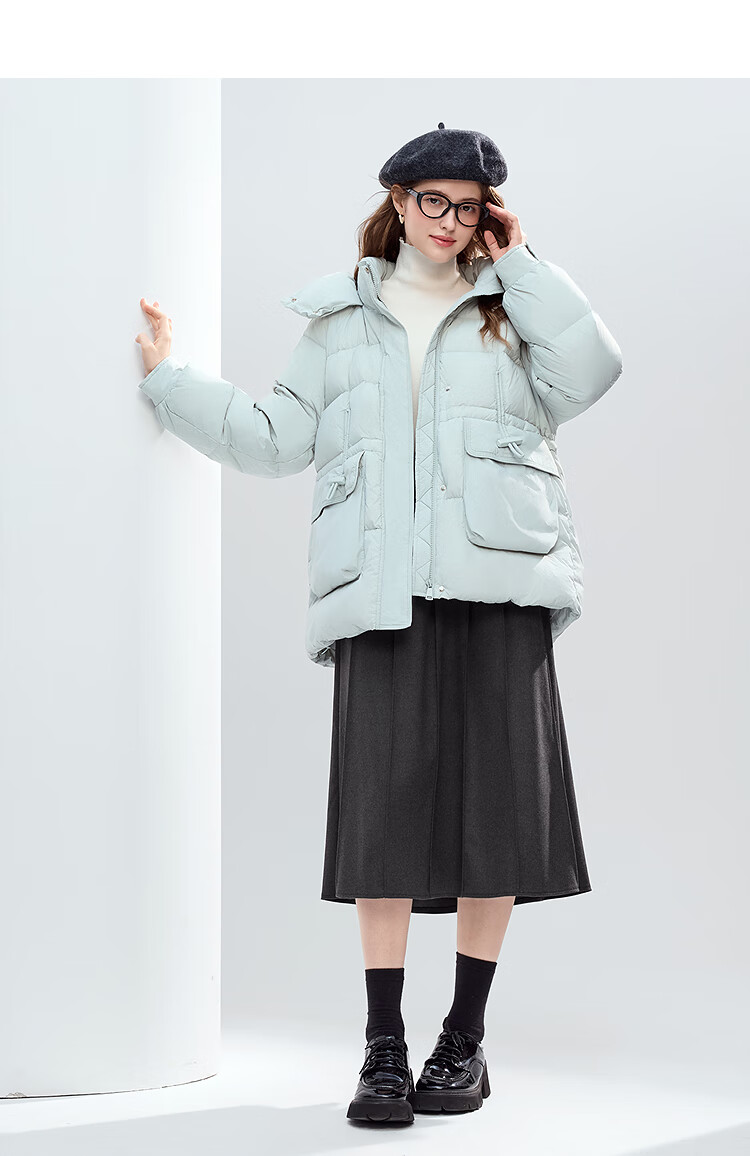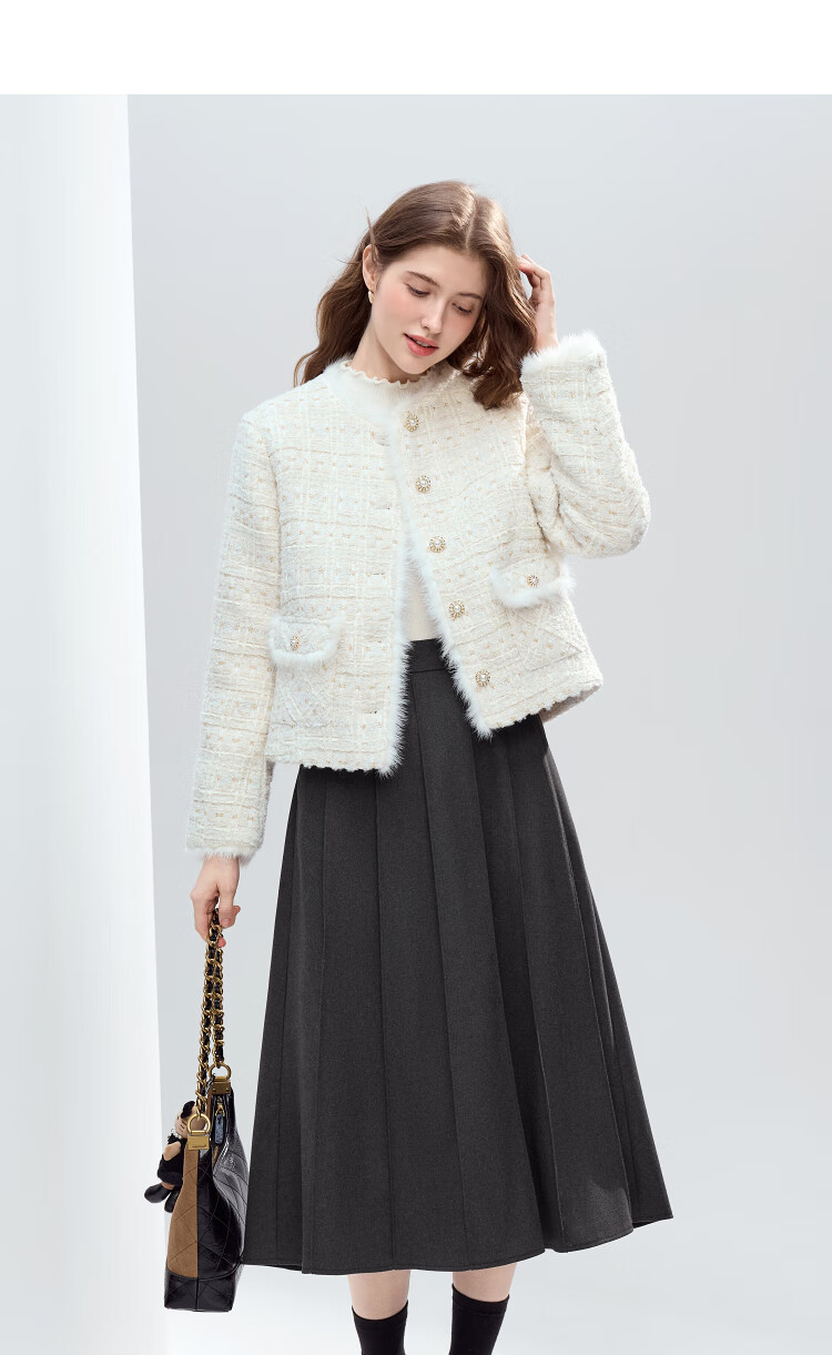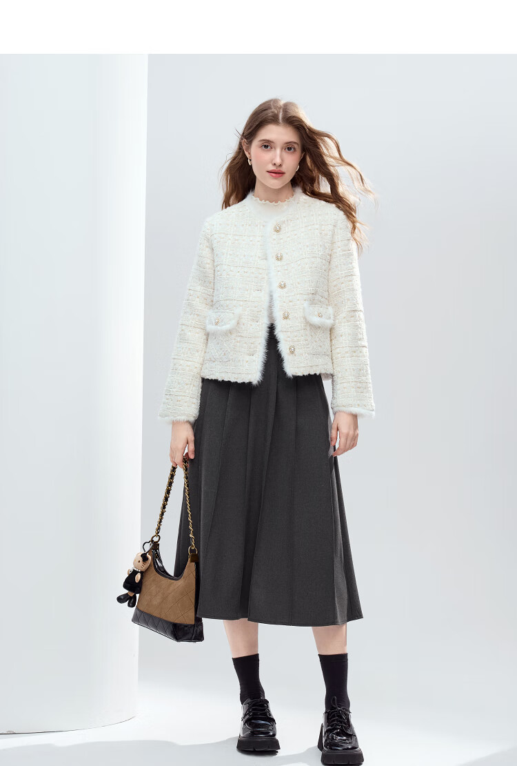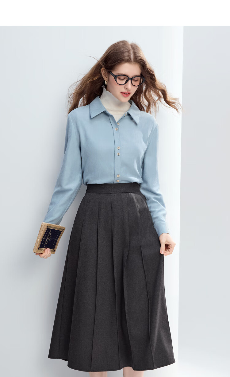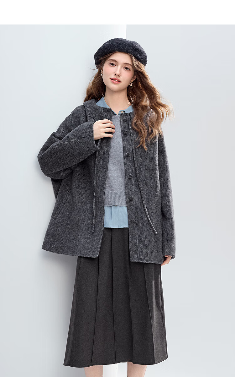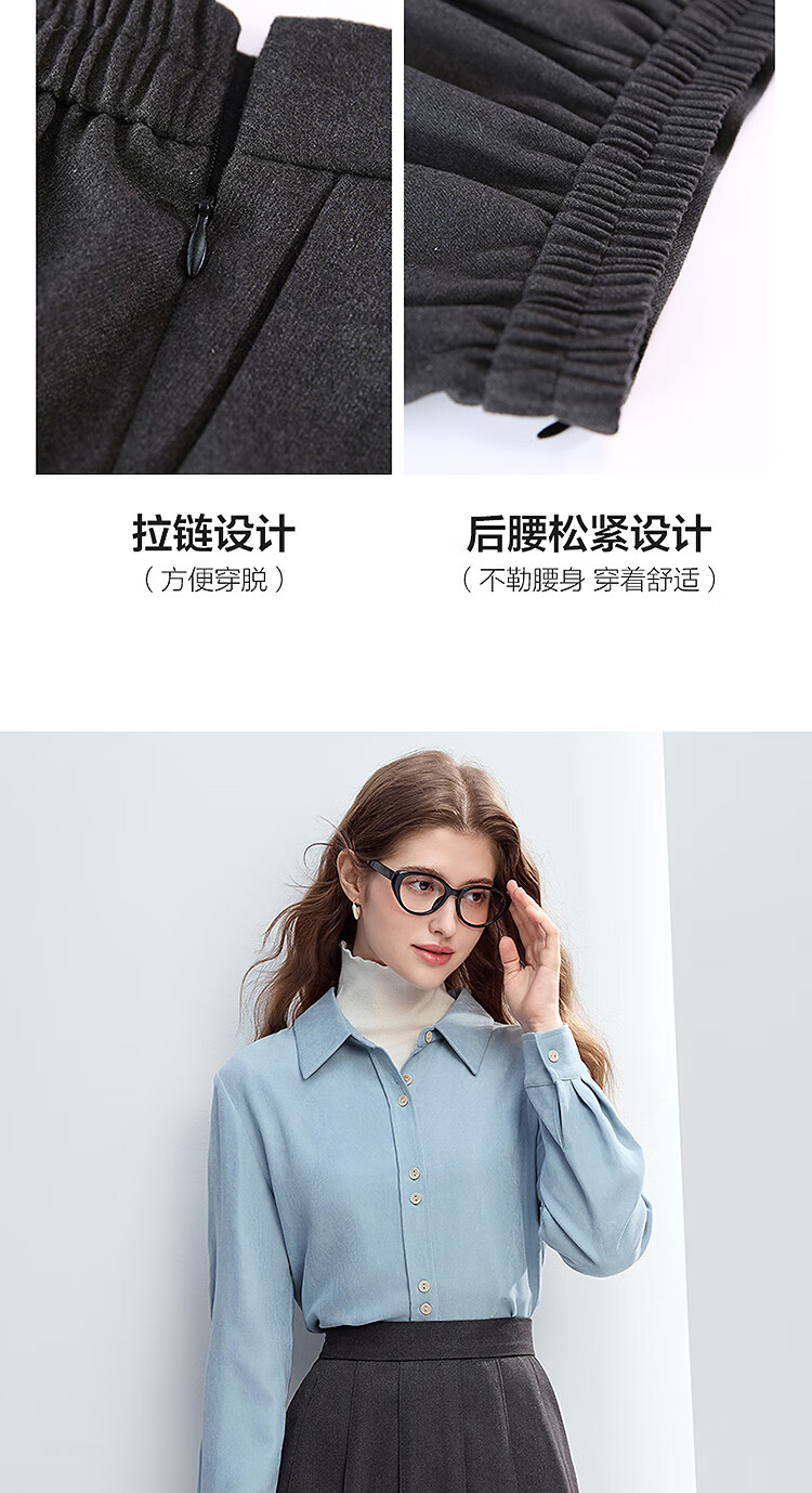 Betu Women's 2025 Winter New Style Mid-High Waist Striped Design Retro Umbrella Skirt Skirt Women 2510T73 Dark Gray M