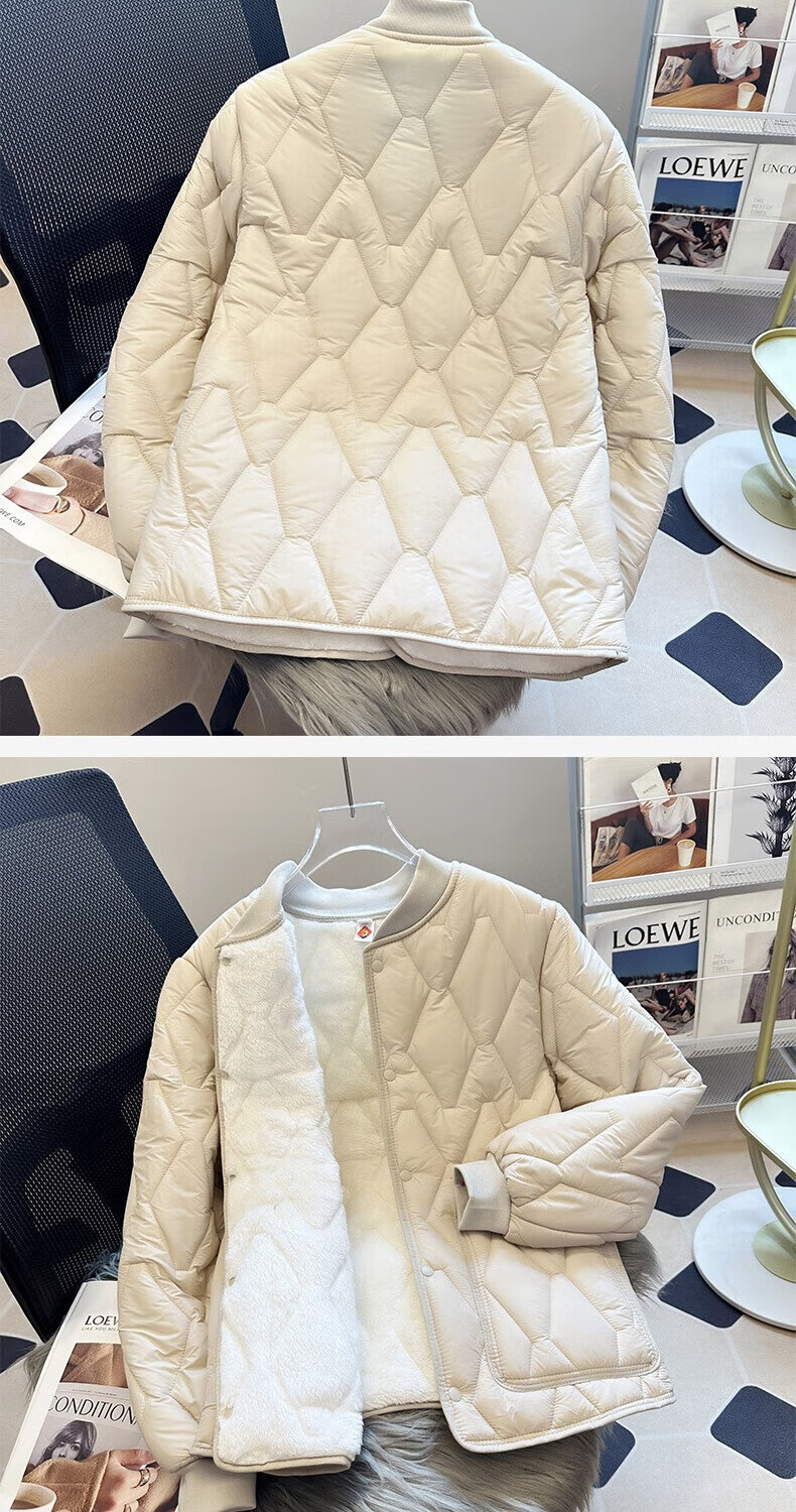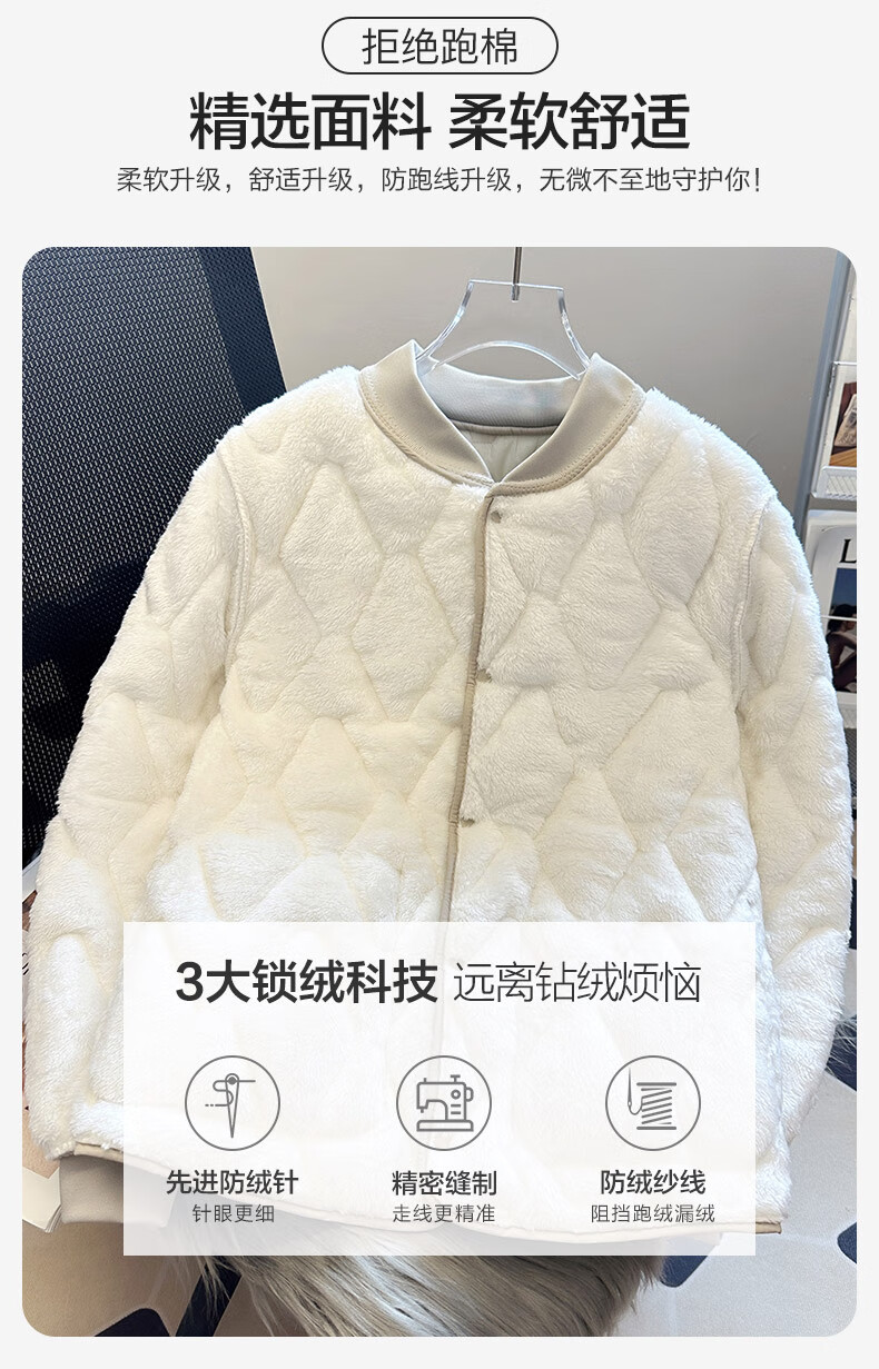 Northeast school uniform artifact anti-freeze quilted down jacket for women large size inner wear middle and high school students cotton-padded jacket short coat cotton-padded jacket SX2533 off-white - full body plus velvet same style for men and women M 120Jin Jin equals 0.5 kg within