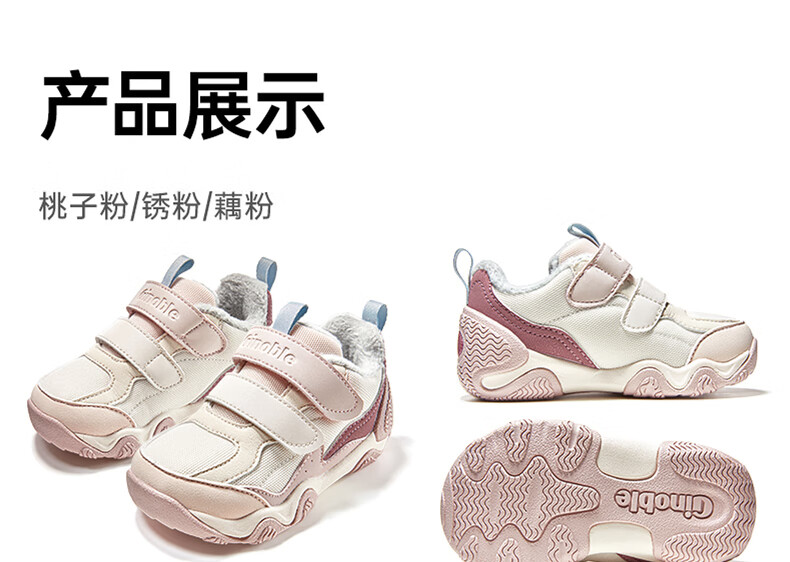 Ginoble 25 new winter children's toddler shoes 1-5 years old thickened warm cotton shoes men's and women's baby shoes GW1829 earth gray_ivory white_beige 22.5 140mm suitable for foot length 136-145mm