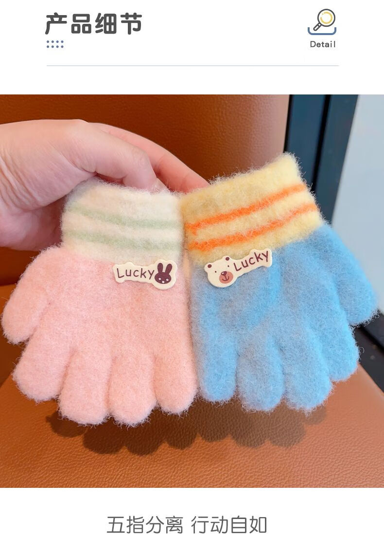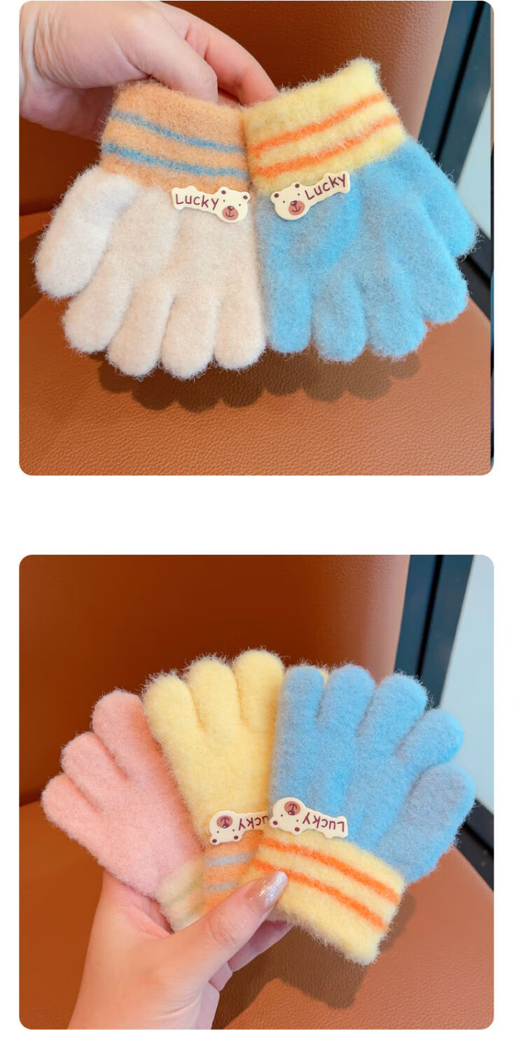 Children's gloves winter five-fingered girls' babies cute boys and girls toddlers 1-4 years old thickened to keep warm Children's gloves - pink - 1 pair