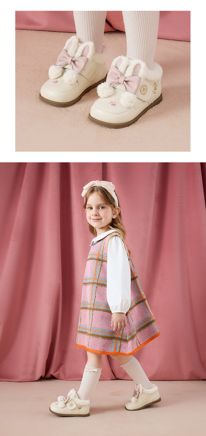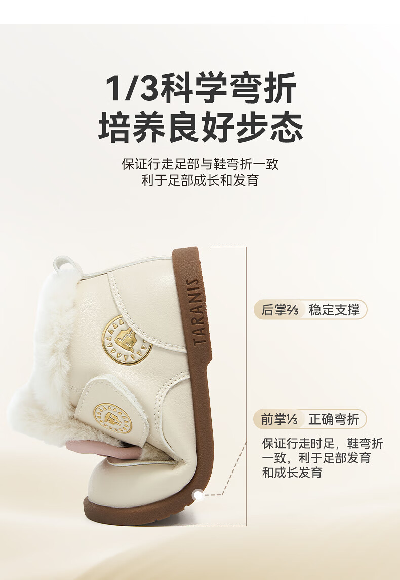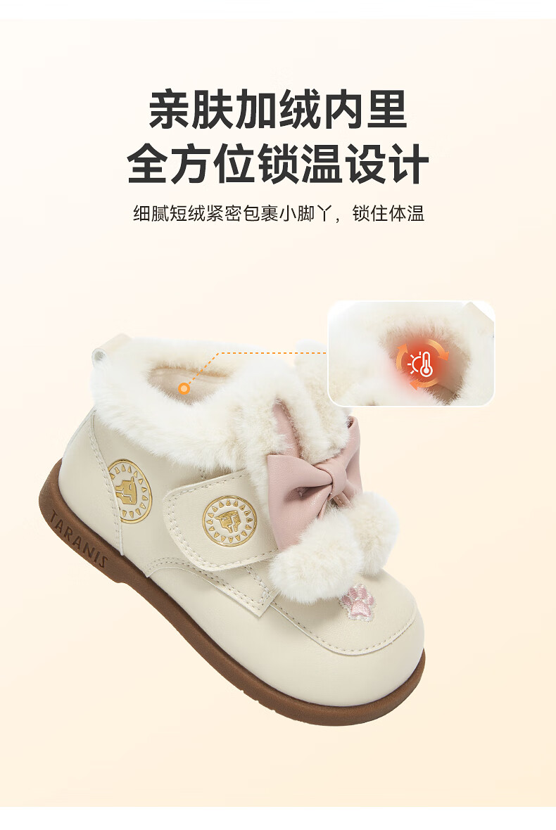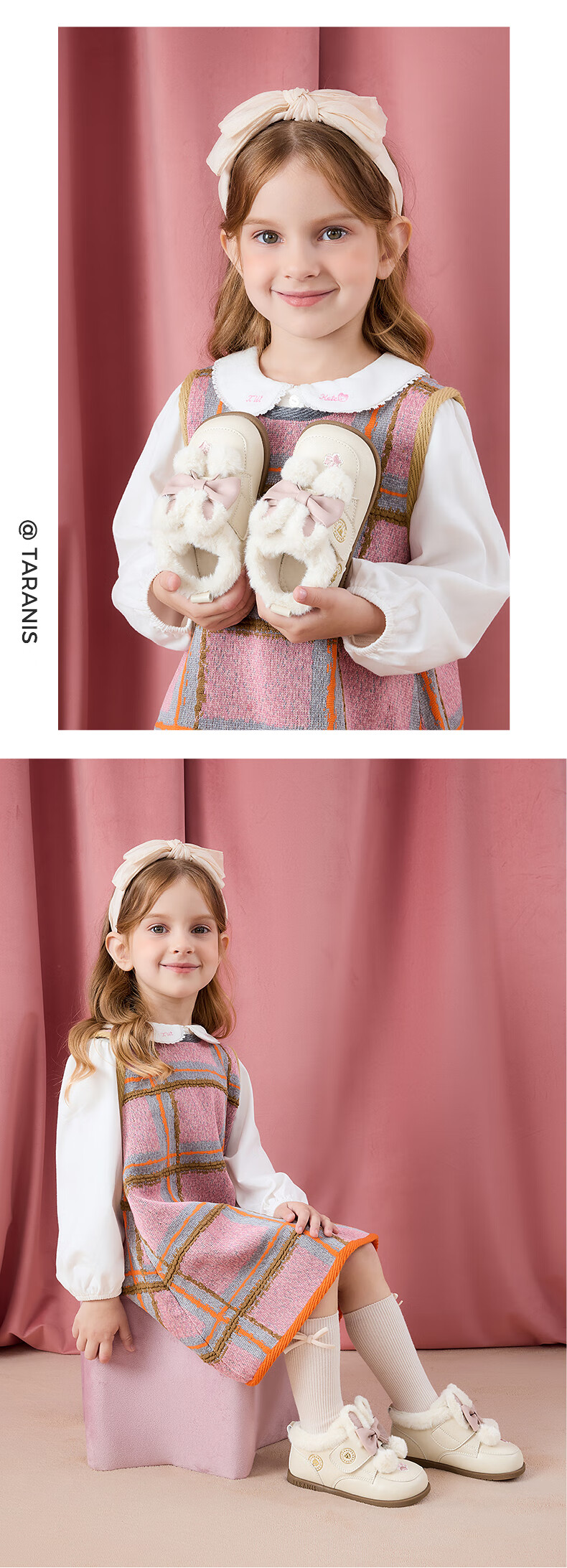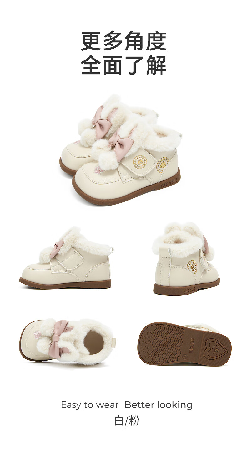 Terranis Girls Toddler Shoes Winter New Little Mary Plus Suede Leather Baby Girl Anti-Slip Sweet Children's Boots White/Pink 20 Inner Length 13.5 Suitable for Feet Length 11.8~12.2