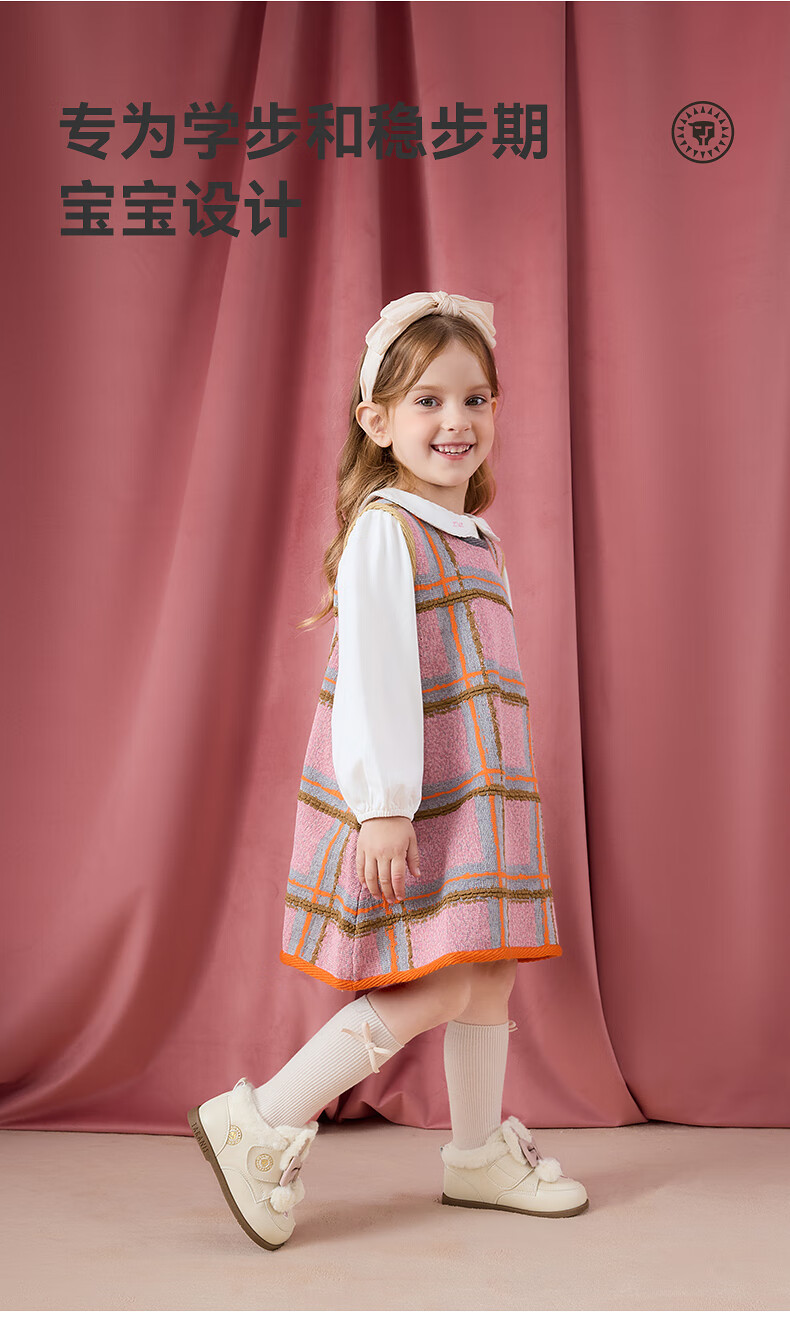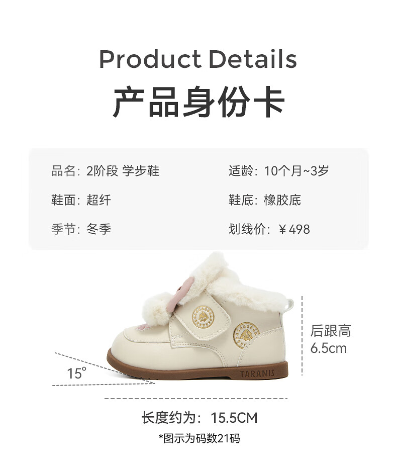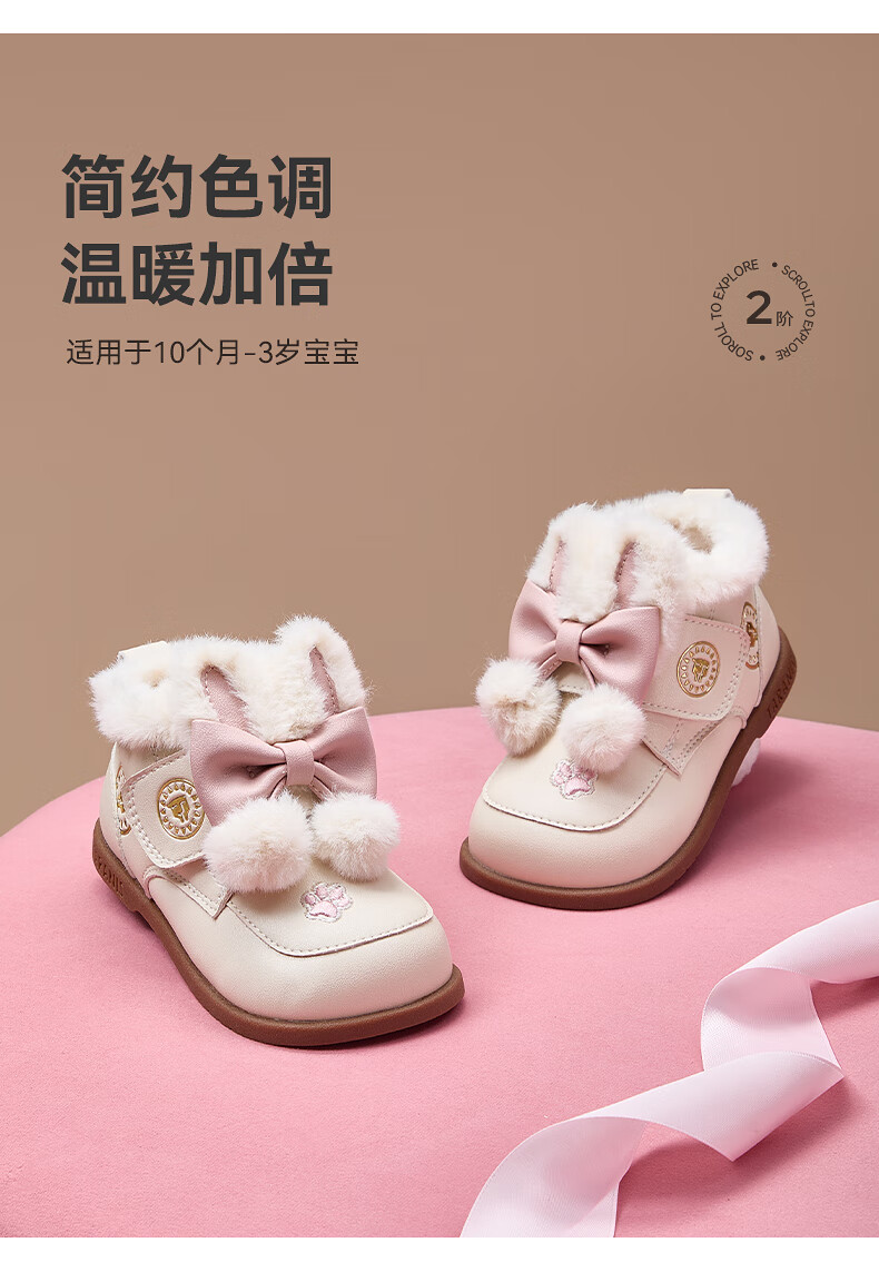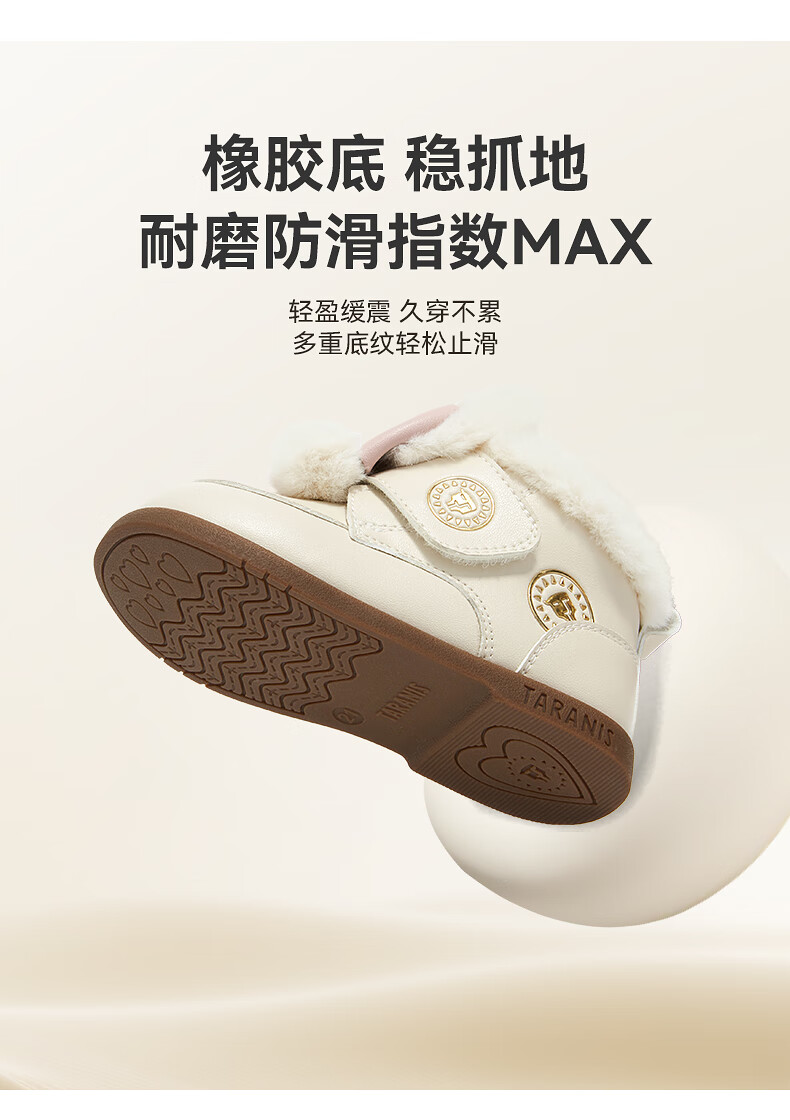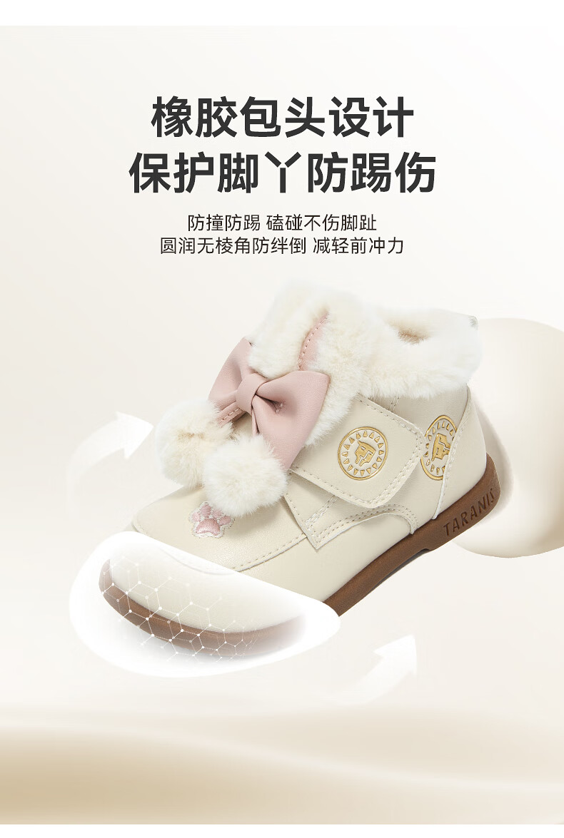 Terranis Girls Toddler Shoes Winter New Little Mary Plus Suede Leather Baby Girl Anti-Slip Sweet Children's Boots White/Pink 20 Inner Length 13.5 Suitable for Feet Length 11.8~12.2
