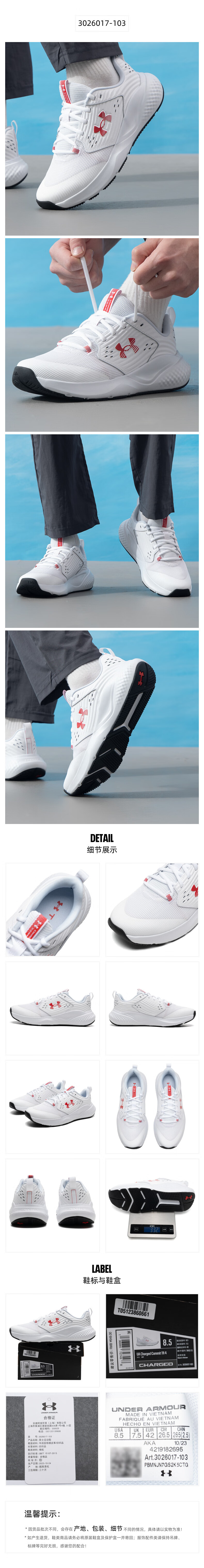 UNDER ARMOUR Men's Shoes Sports Shoes UA Charged Commit TR 4 Running Fitness Cushioning Comfortable Fashion Training Shoes 3026017-103 40