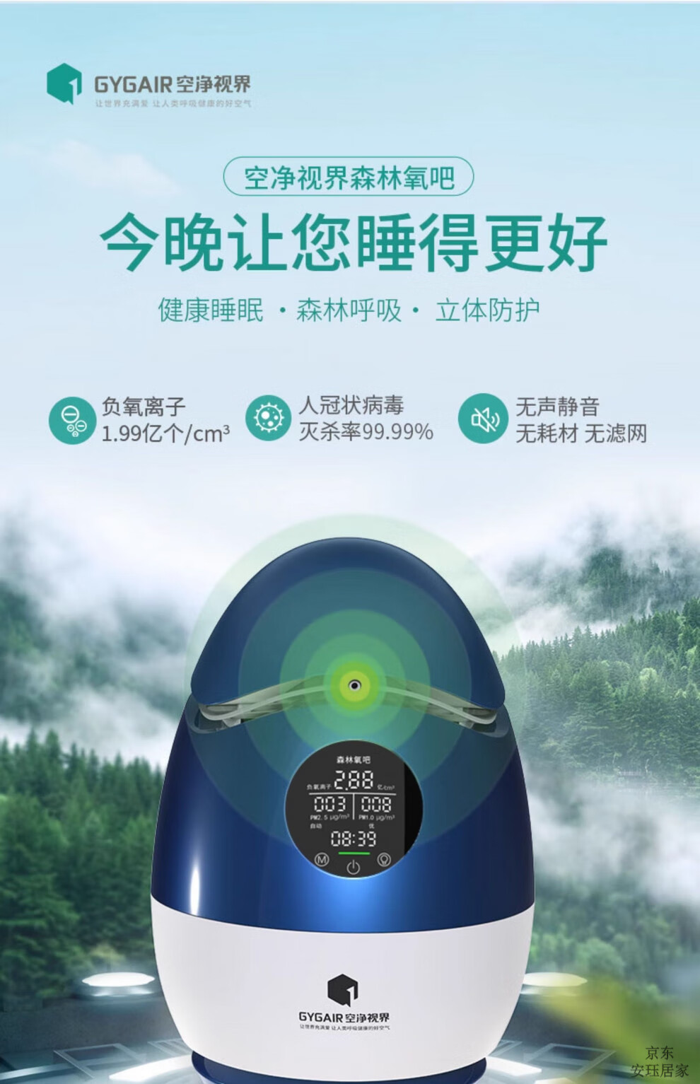 OEMG high-tech imported quality forest oxygen bar egg wood Linsen air oxygen bar air purifier negative ion generator dark blue