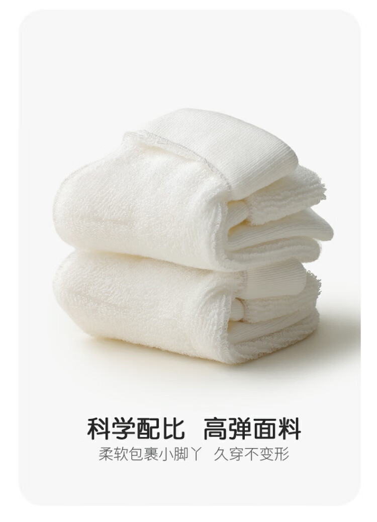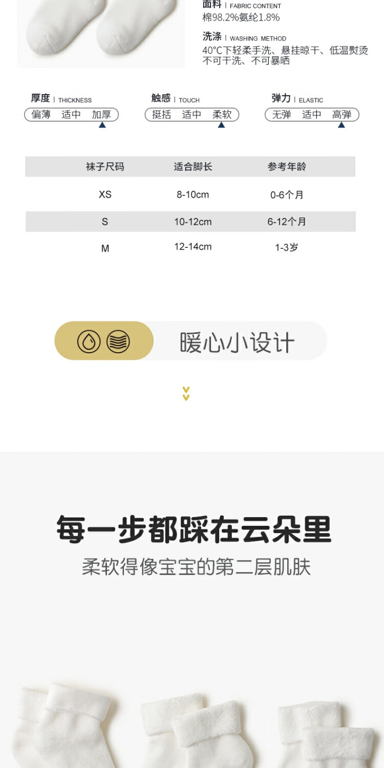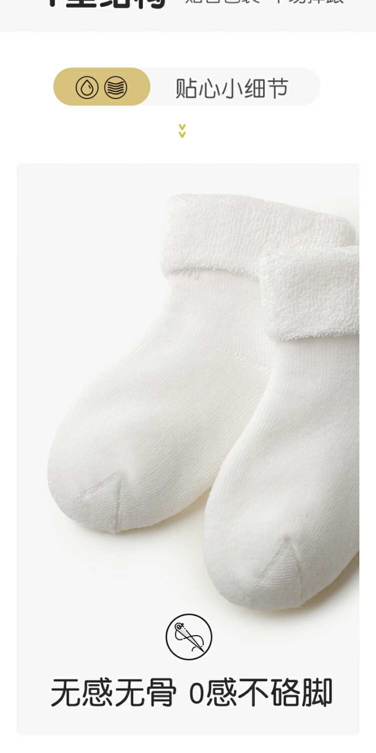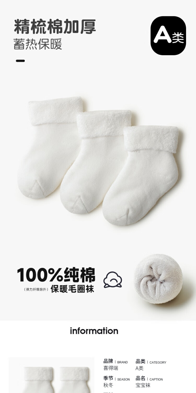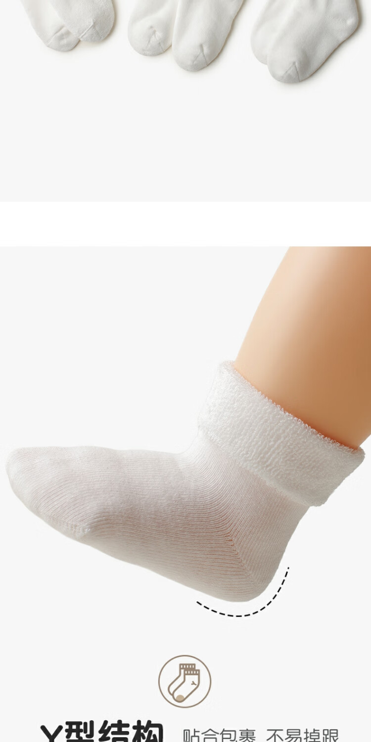 Xiderui baby white pure cotton socks autumn and winter thickened warm terry socks newborn loose baby mid-calf socks white set 3 pairs 0-6 months XS (recommended foot length 8-10CM)