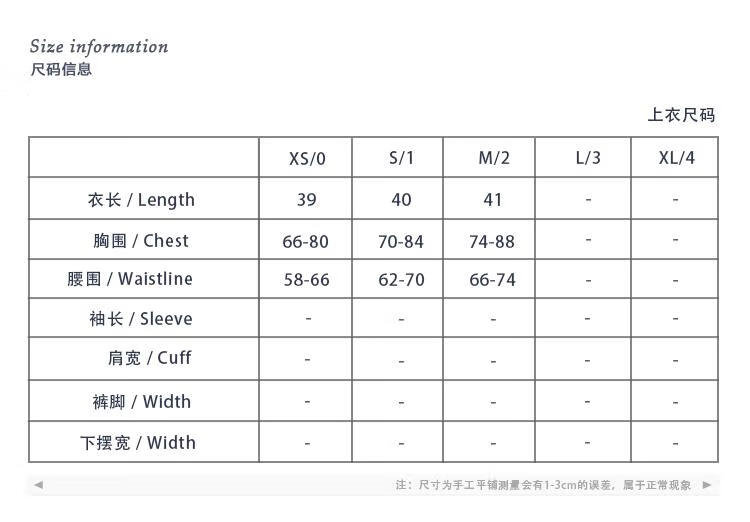 China (cm) 160-165/84-86 165-170 / 88-90 167-172 / 92-96 168-173 / 98-102 170-176 / 106-110