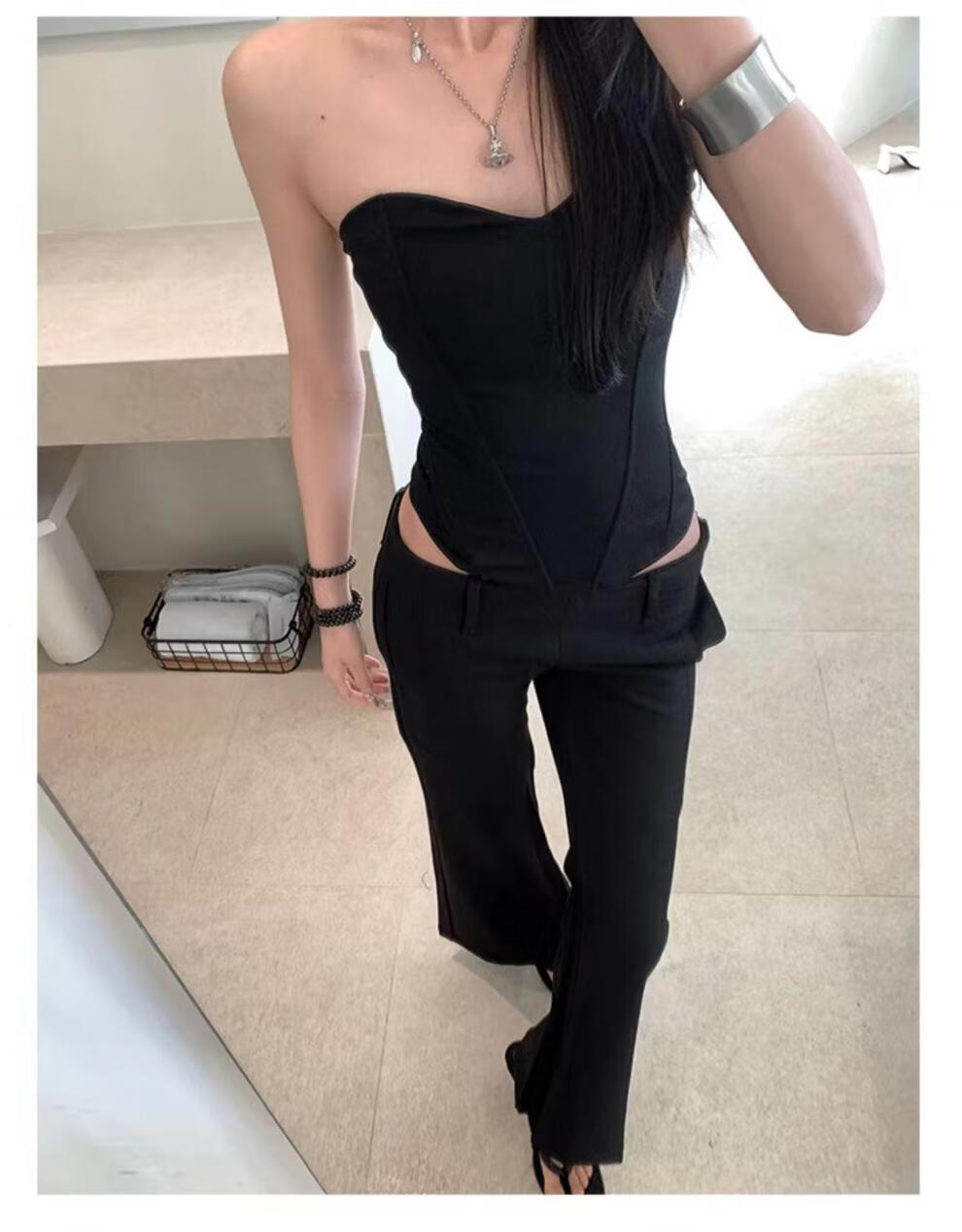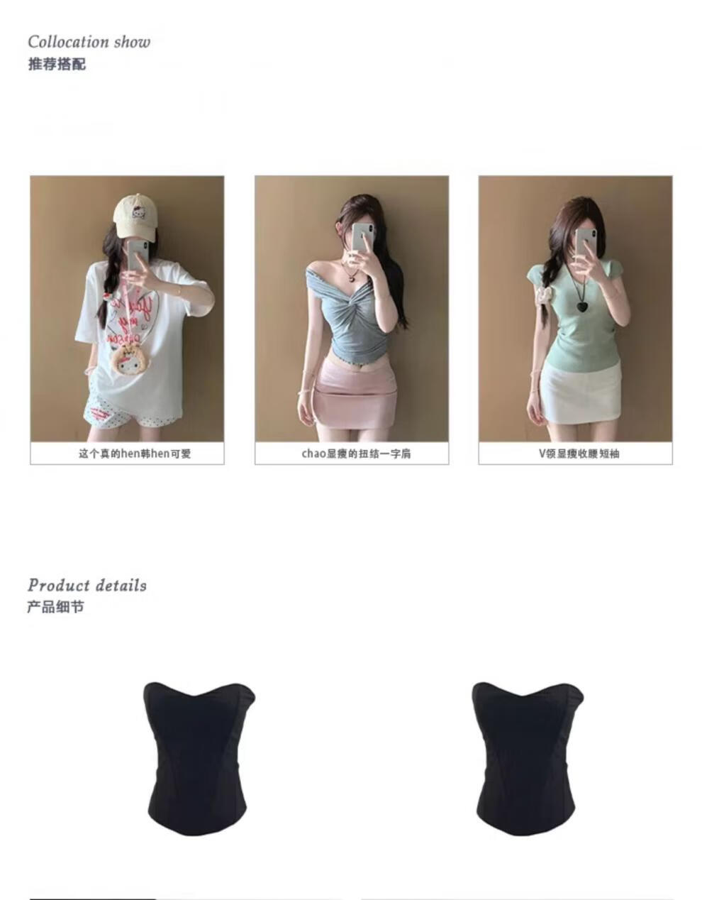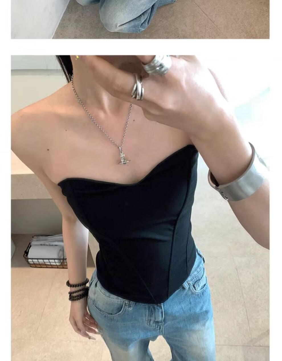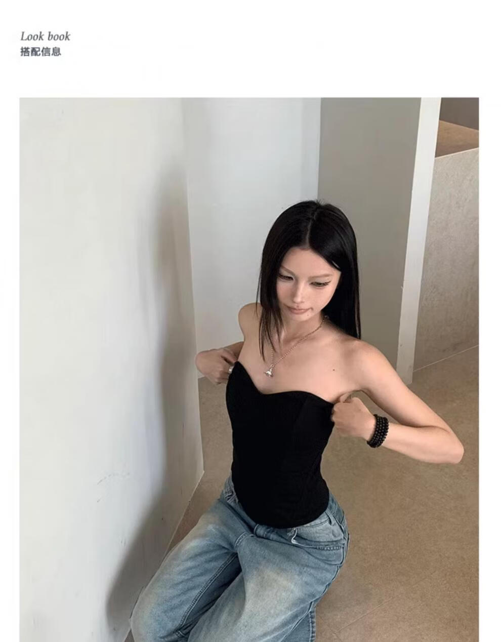 E7 Life E7Q8 American sexy fishbone vest for women 2023 new black hot girl slimming short bottoming top black XS