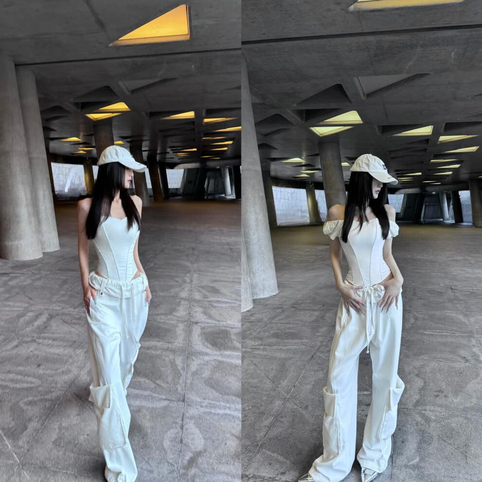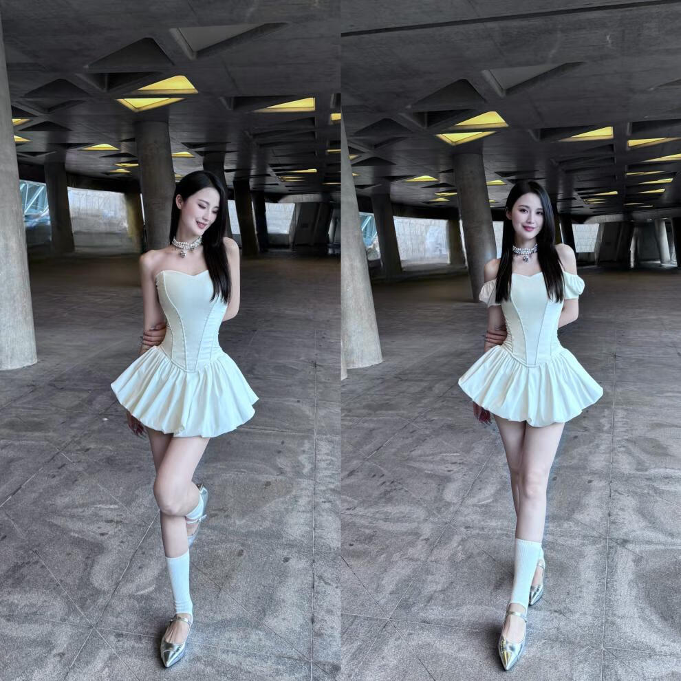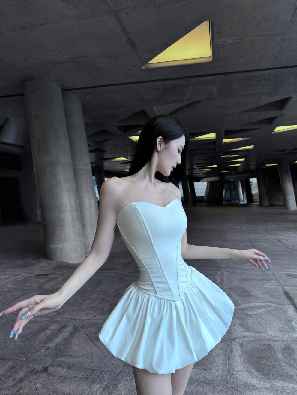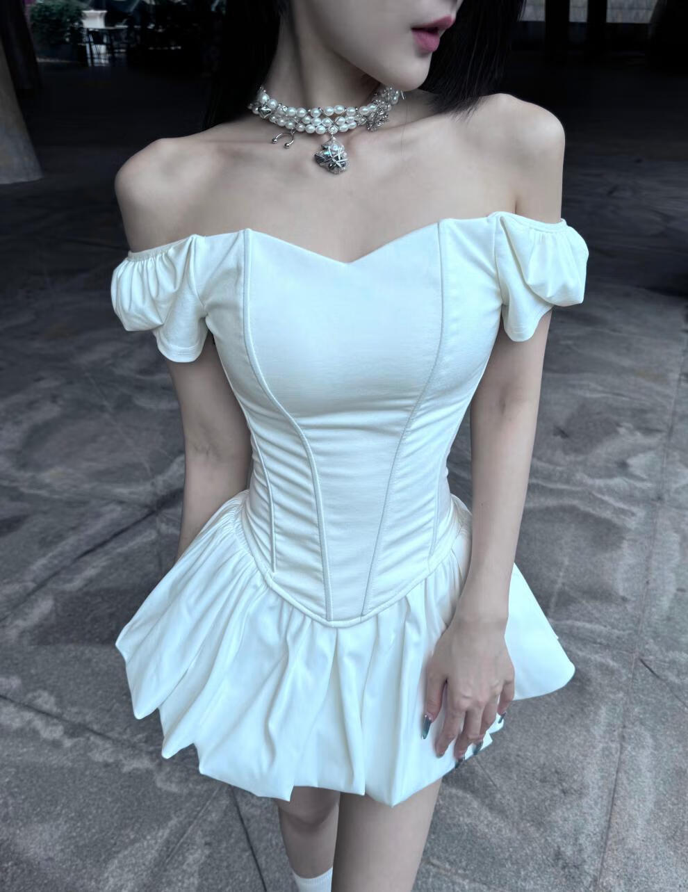 BeTTER ME White mid-length sexy three-dimensional fishbone corset tube top slim fit off-shoulder top short-sleeved waist reference waist slimmer XS _ waist around 60