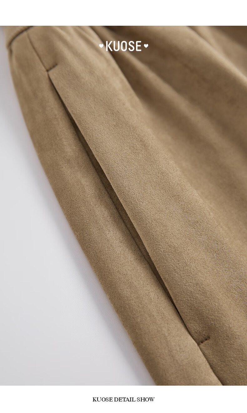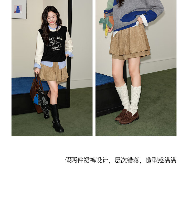 Wide Brown Faux Suede Skirts Women's 2025 Autumn and Winter New Maillard High Waist Casual Shorts Brown M /M