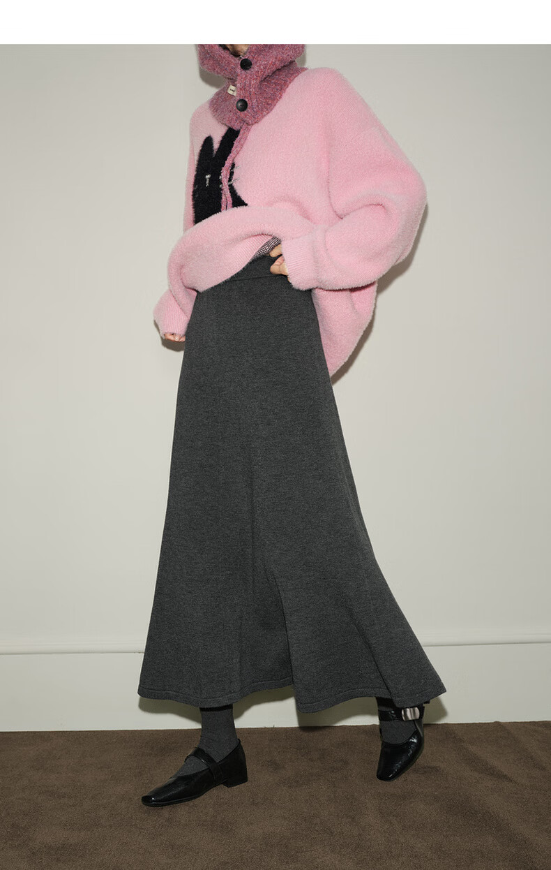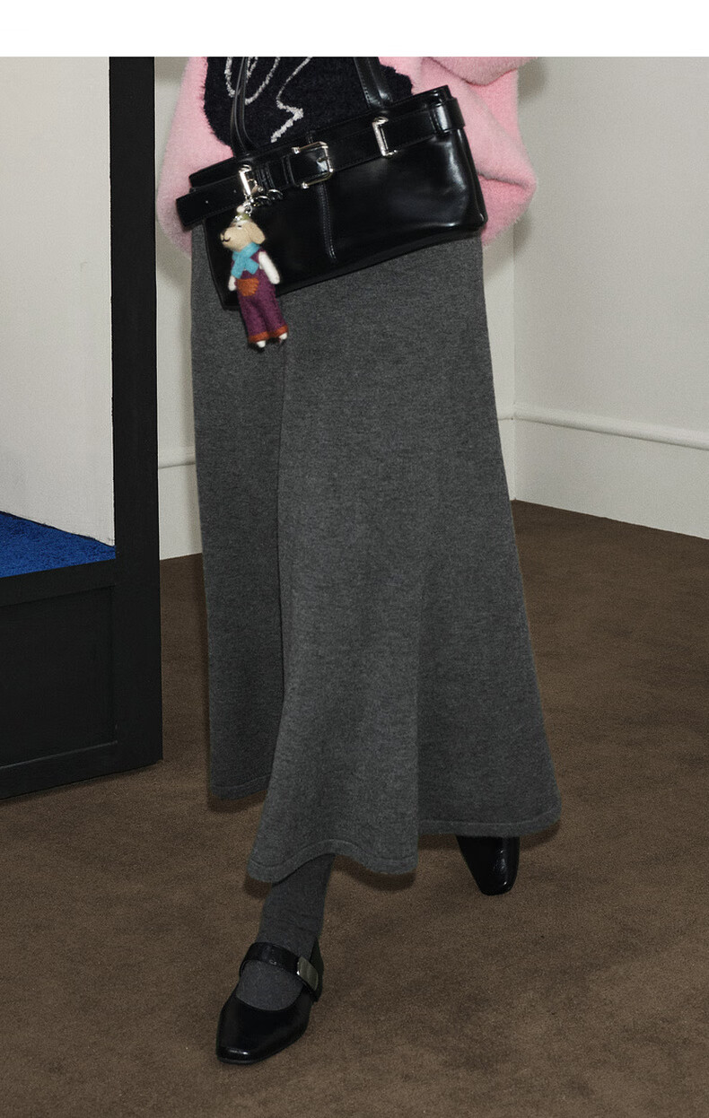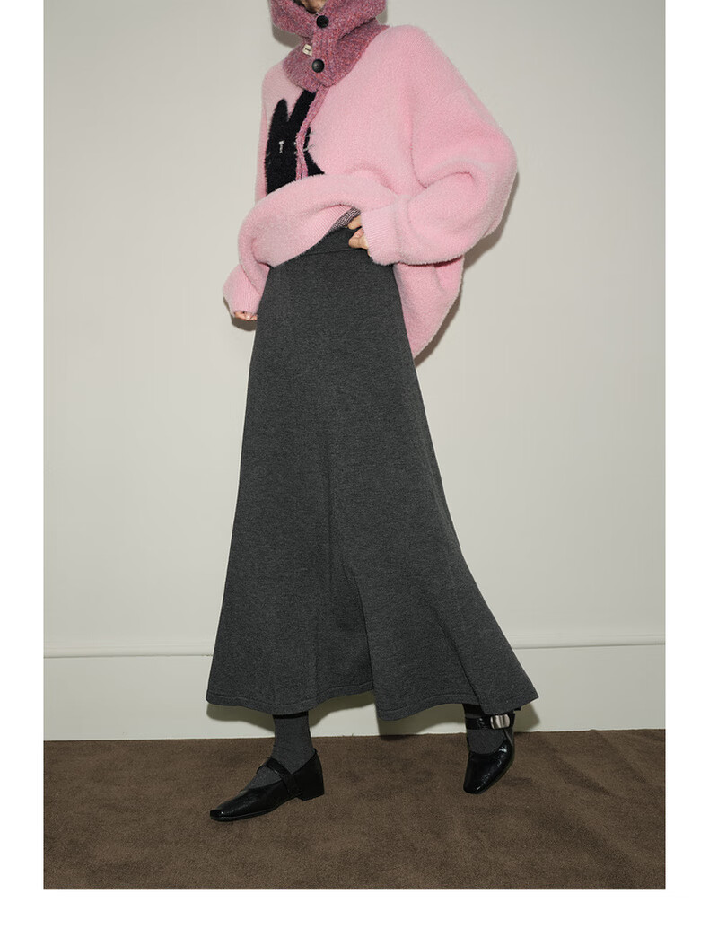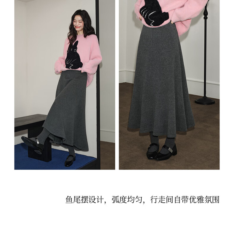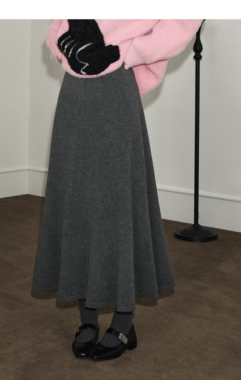 Wide dark gray fishtail skirt sweater skirt high waist skirt skirt 25 autumn and winter new women's umbrella skirt long skirt dark gray L