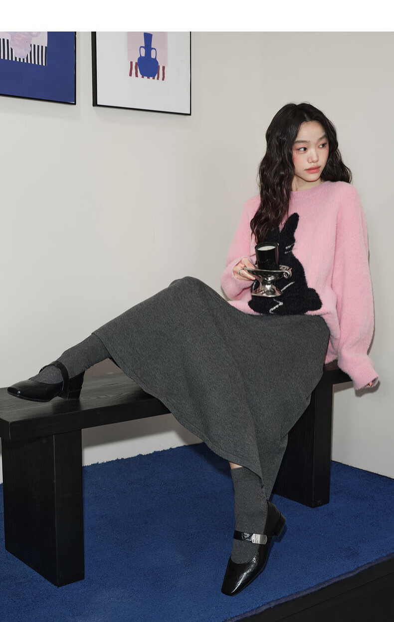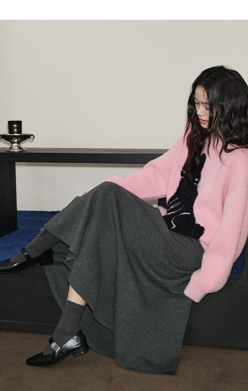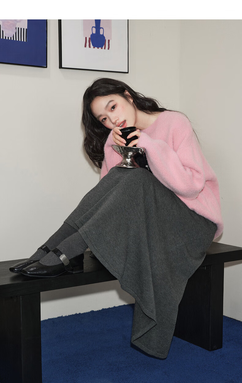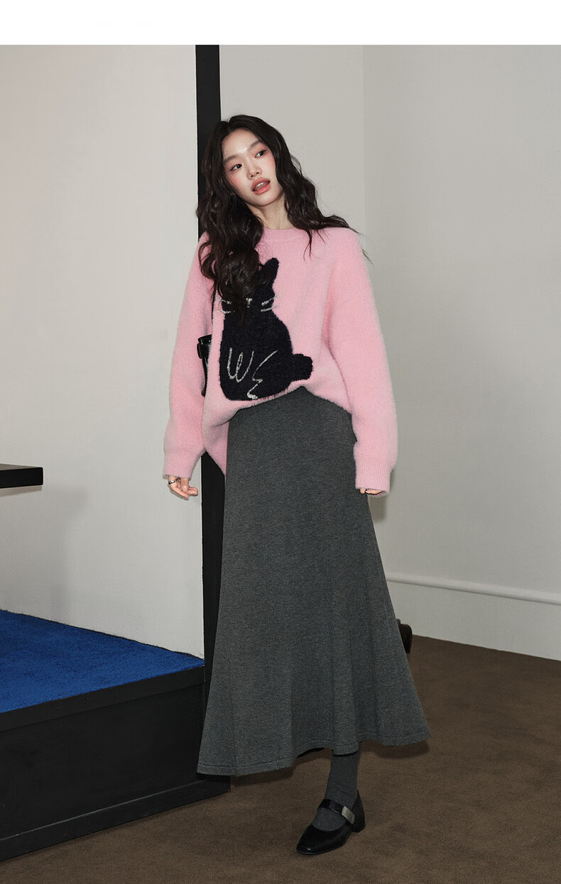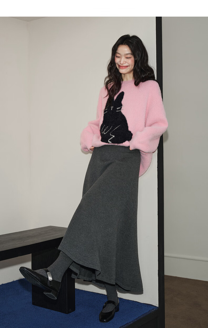 Wide dark gray fishtail skirt sweater skirt high waist skirt skirt 25 autumn and winter new women's umbrella skirt long skirt dark gray L