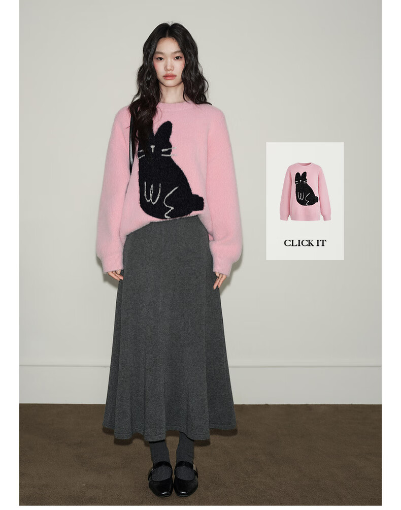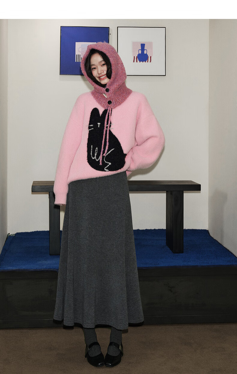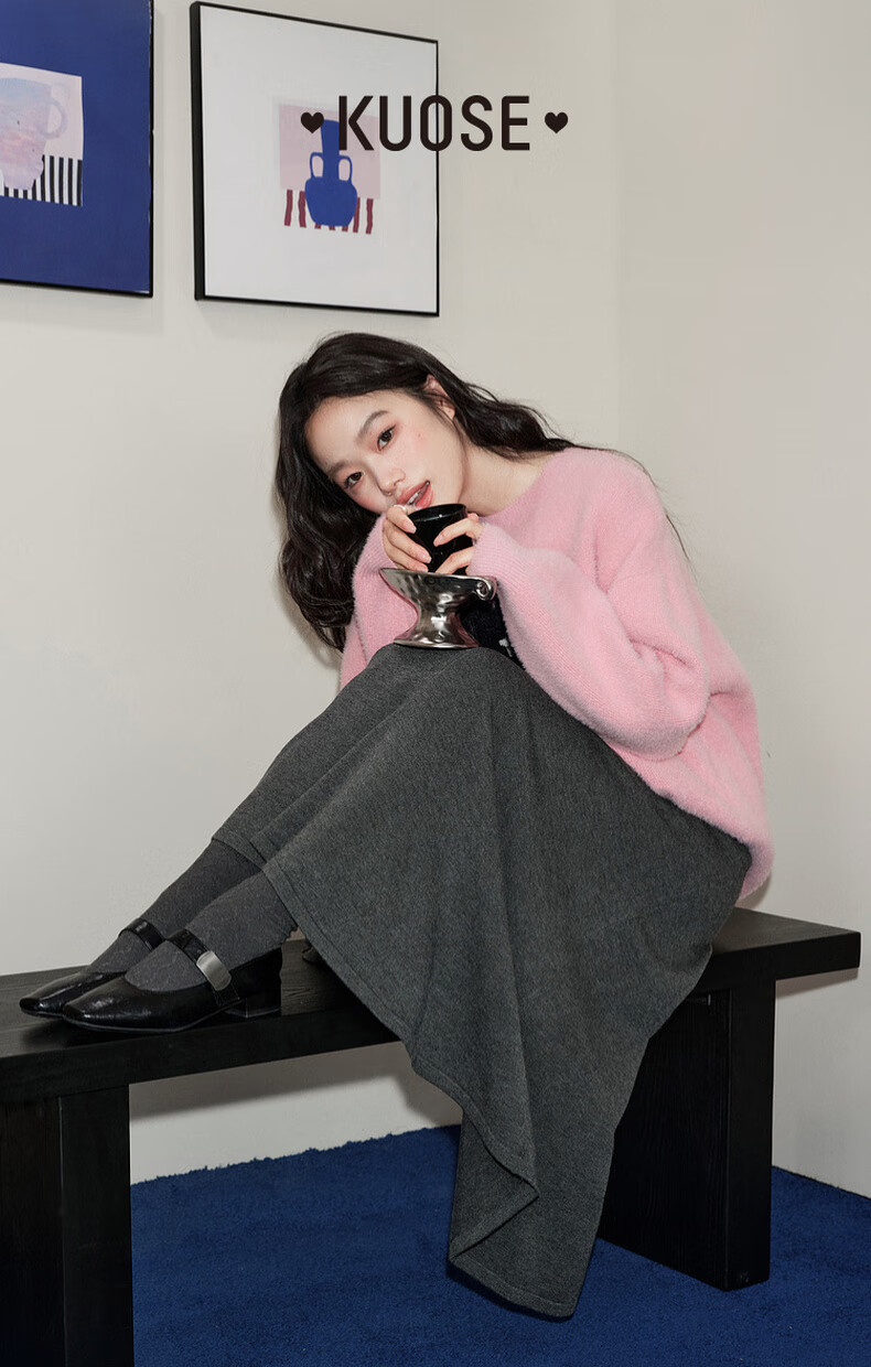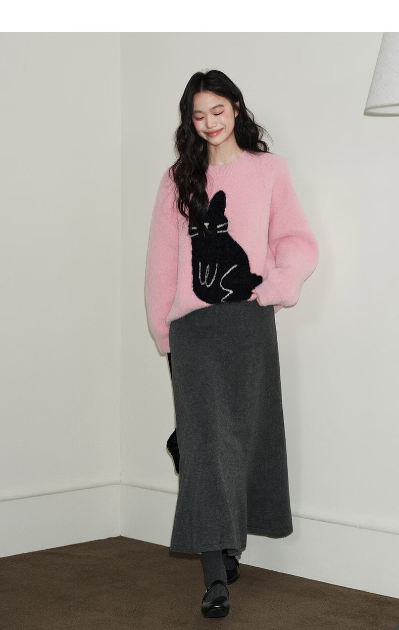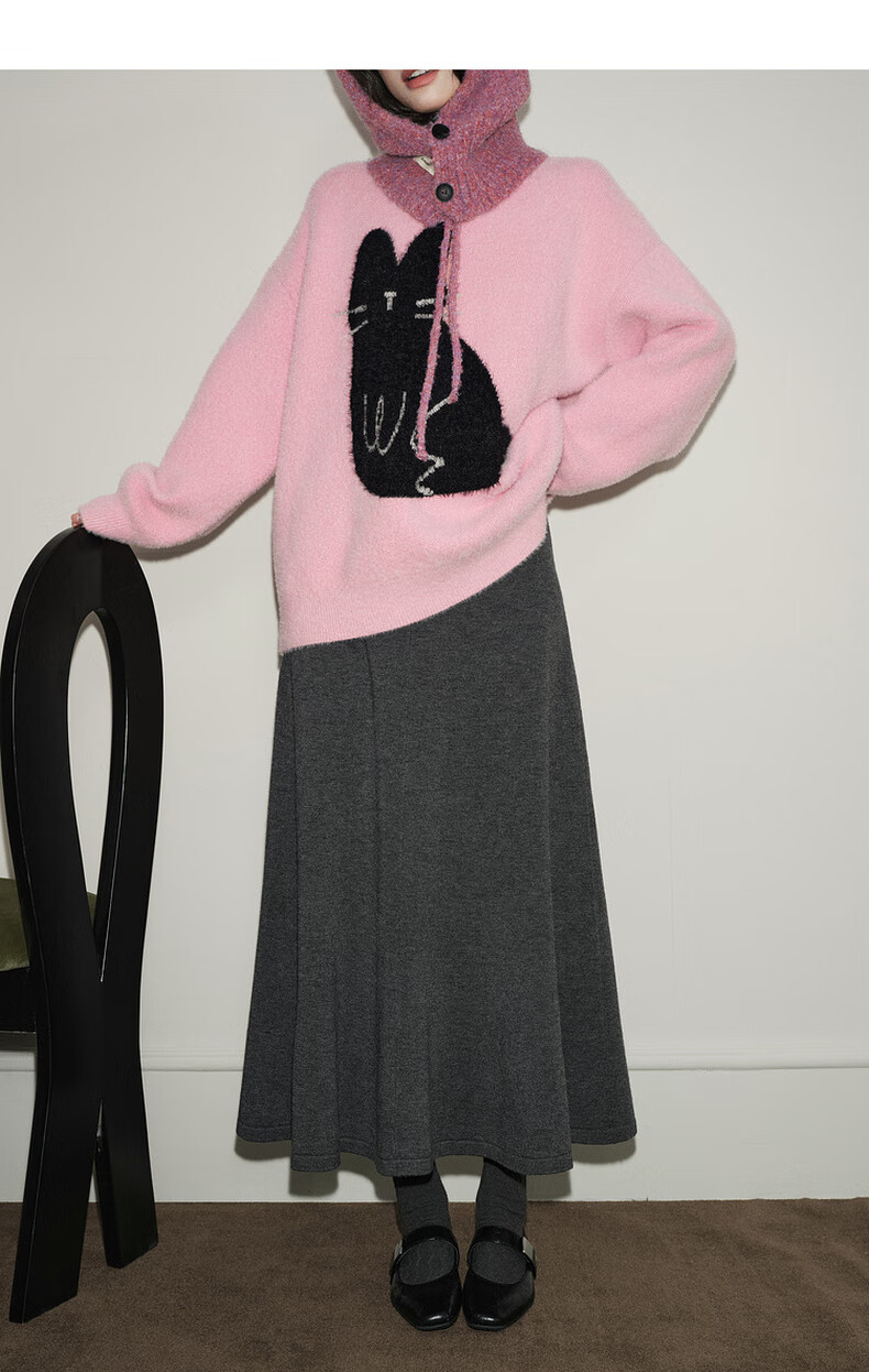 Wide dark gray fishtail skirt sweater skirt high waist skirt skirt 25 autumn and winter new women's umbrella skirt long skirt dark gray L