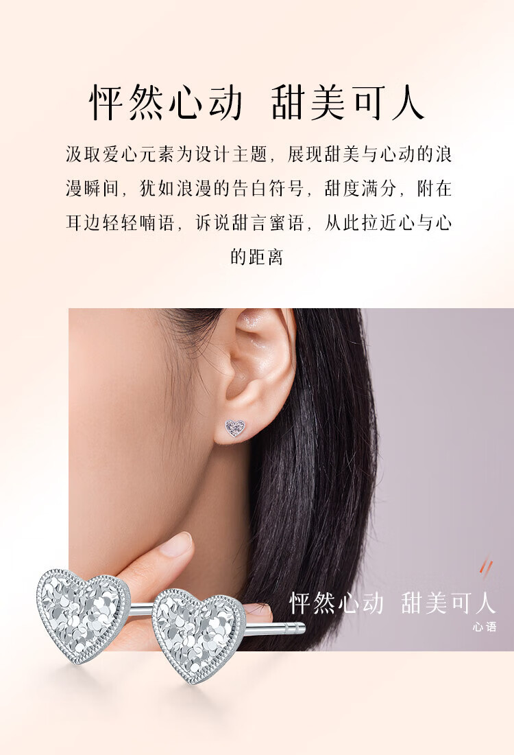 Liuguifu Jewelry pt950 platinum heart-to-heart earrings, fashionable, versatile, high-end, love car flower earrings, gift, heartfelt, about 1.45g