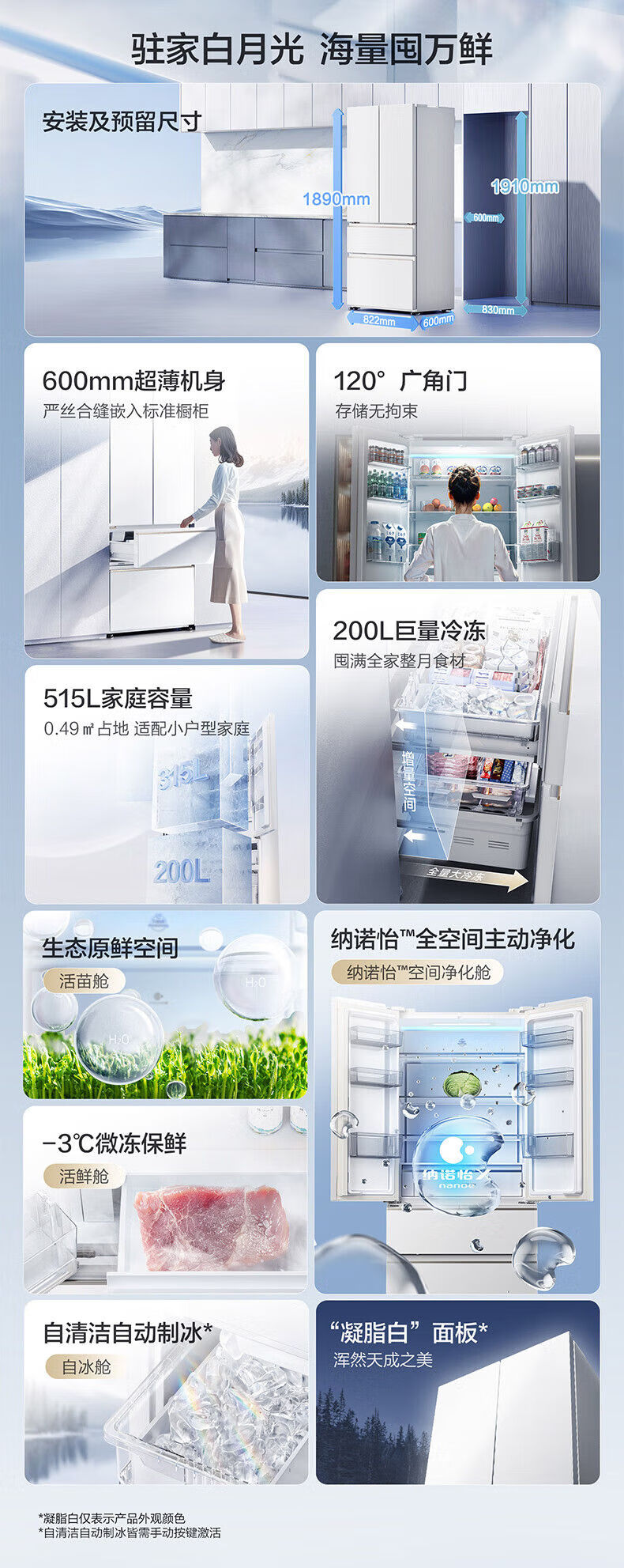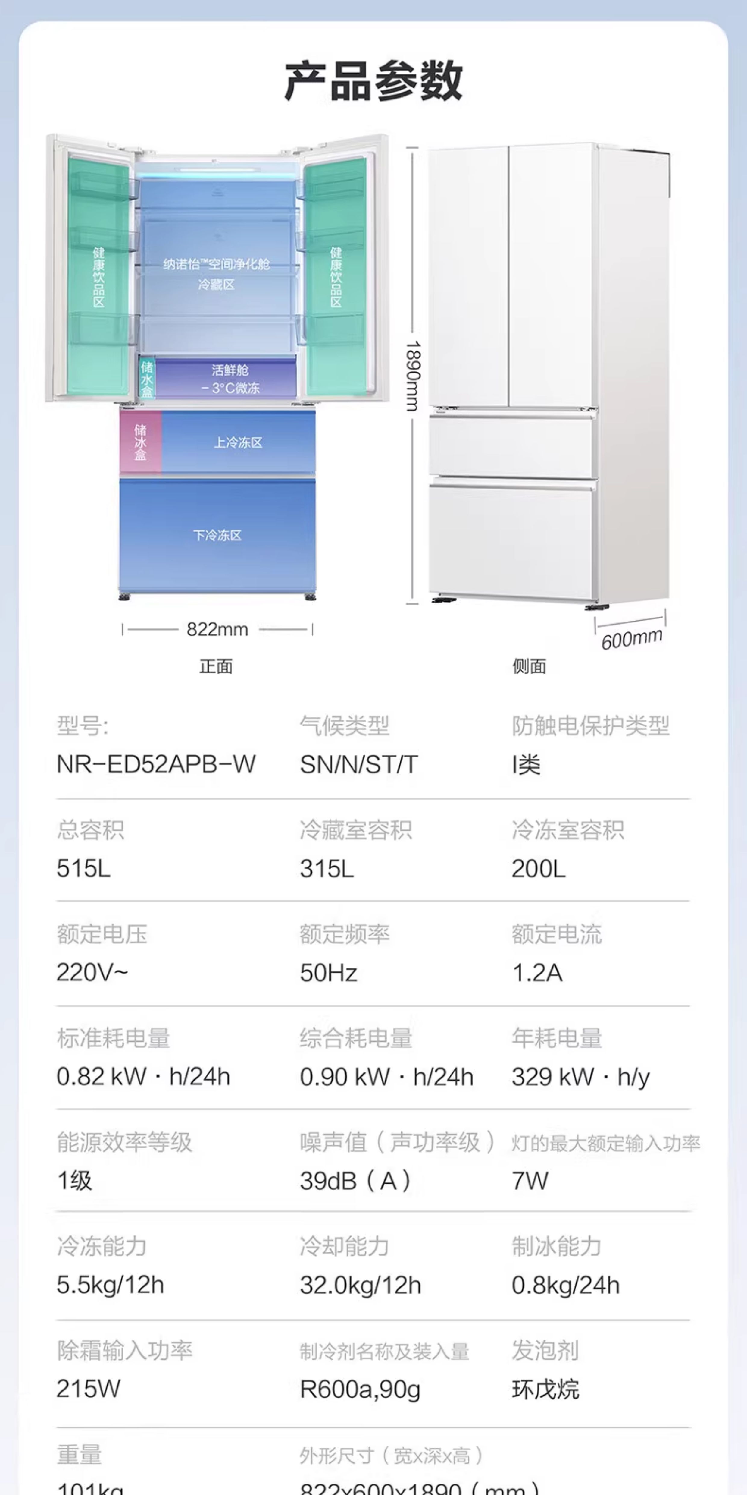Panasonic/Panasonic tail goods machine NR-ED52APB-W White Moonlight 2.0 ultra-thin zero-embedded 515 liters automatic ice making quality tail goods NR-ED52APB-W slight defects 515 liters Nanoyi