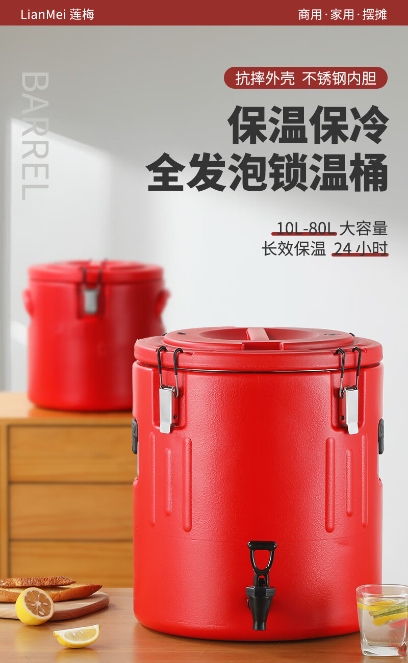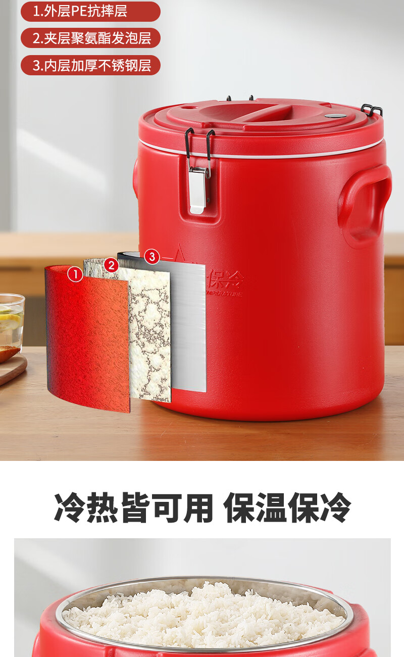 Insulation bucket commercial canteen restaurant stainless steel large capacity rice insulated soup bucket ice powder stall soy milk milk tea bucket 15L non-faucet insulated thermos bucket capacity about 12Jin Jin equals 0.5 kg