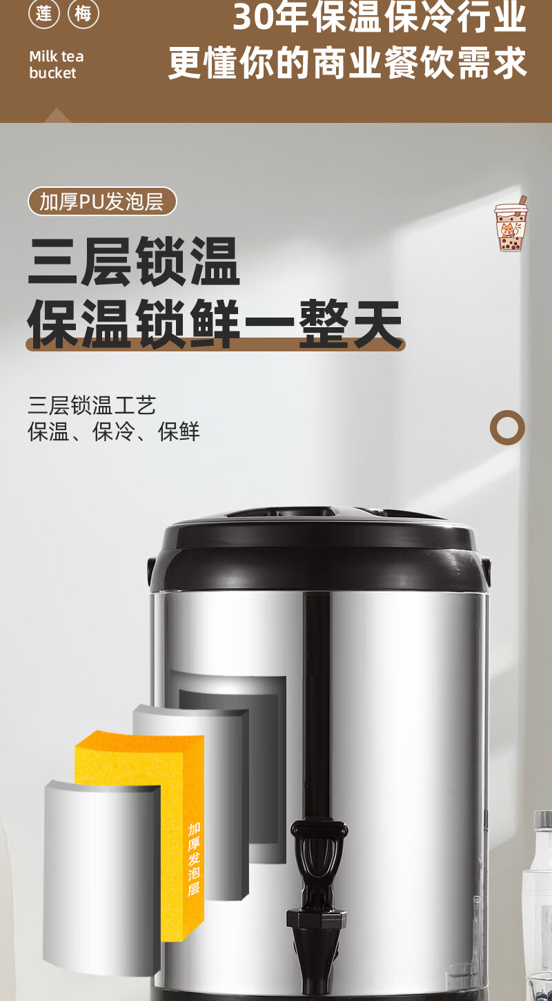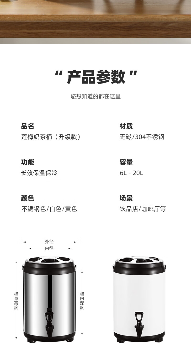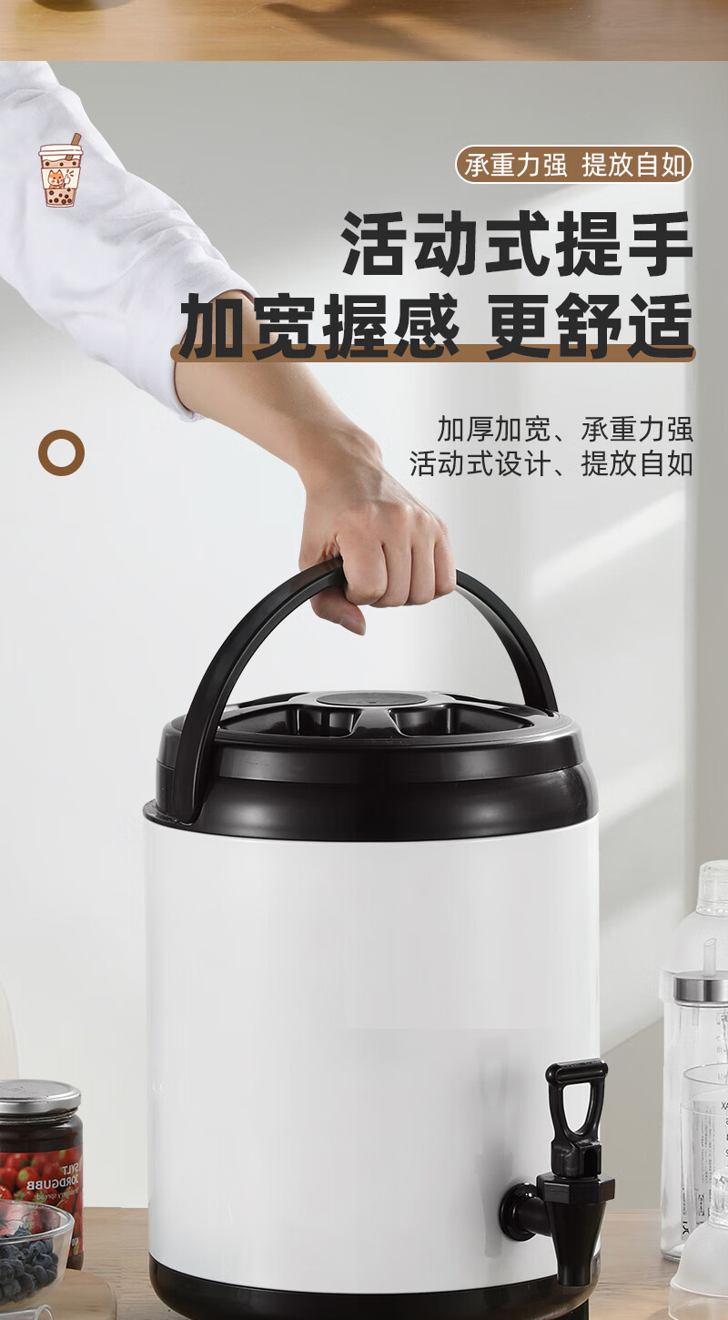 304 Stainless Steel Milk Tea Insulated Bucket Soy Milk Bucket Commercial Large Capacity Insulated Bucket Milk Tea Shop Herbal Tea Bucket with Faucet Genuine 304 Benxi Steel Milk Tea Bucket (Supports Potion Testing) Extra Thick 8L Three-layer Insulated Bucket Approximately 12 Jin Jin equals 0.5 kg of water
