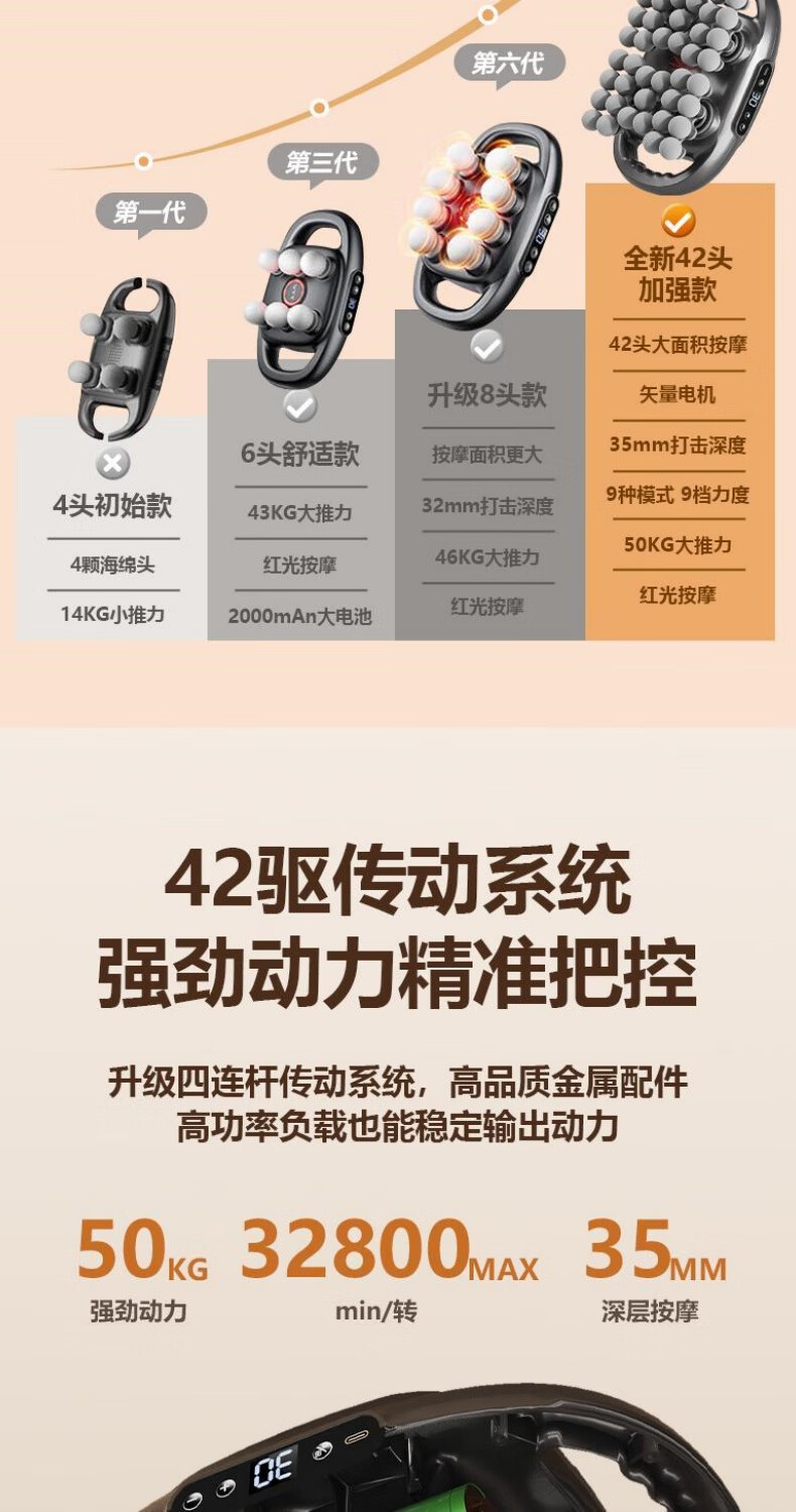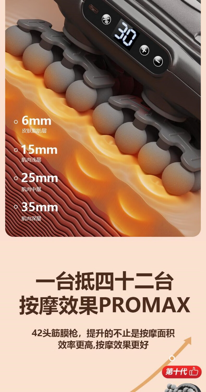 CHIGO 42-head fascia gun multi-functional muscle relaxation massager waist, leg and neck massager Supreme model 42-head white