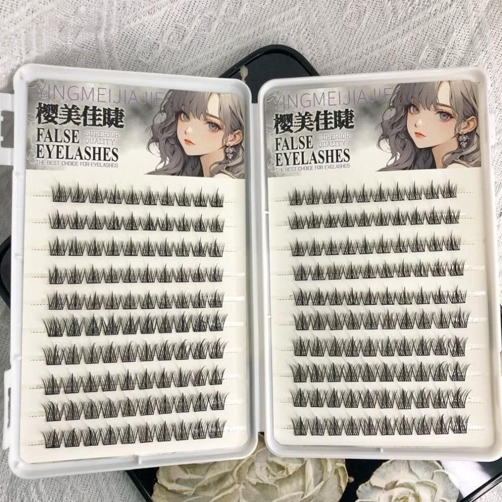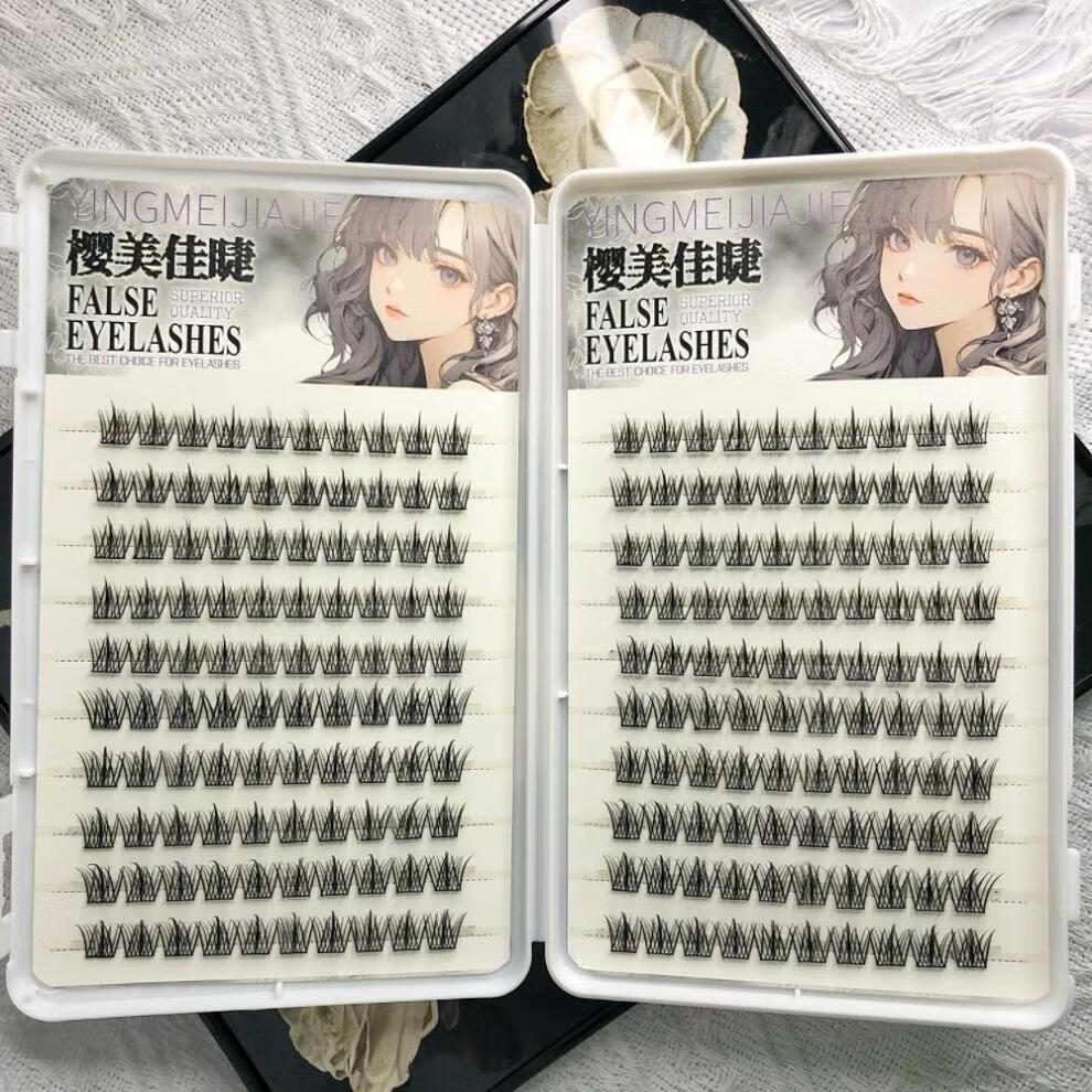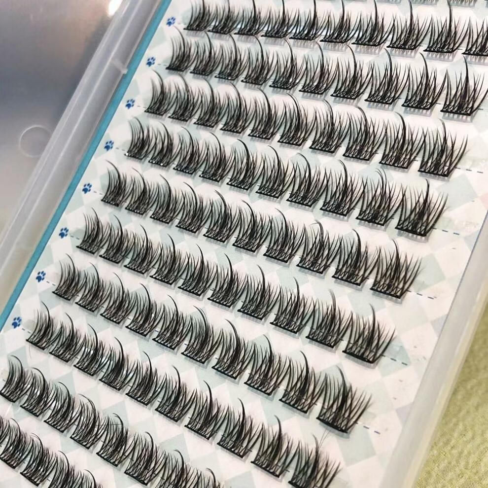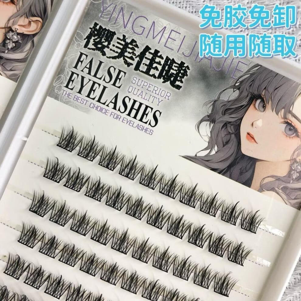 Beginner's Large Capacity Glue-Free and Removal Lazy Trilogy Natural Simulation Thick False Eyelashes Comic Sun Eyelashes 100 Clusters Glue-Free Ten Rows Trilogy Boxed + Tweezers