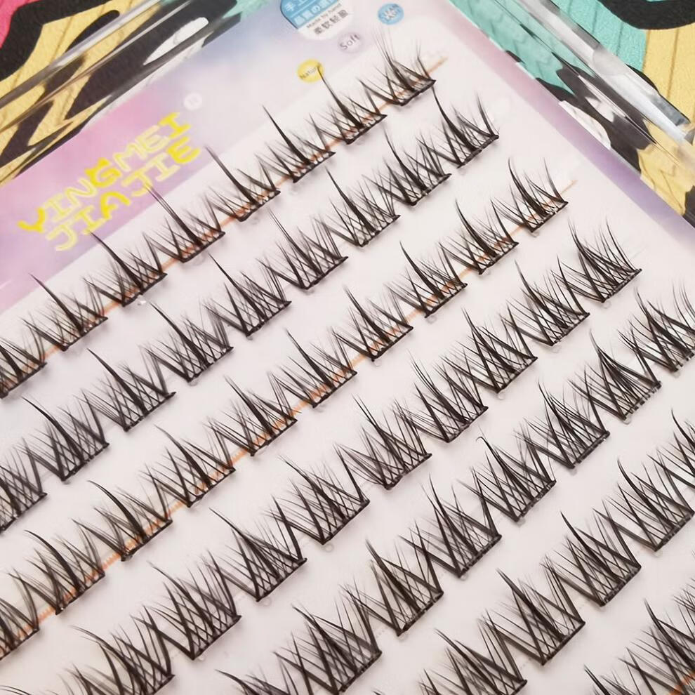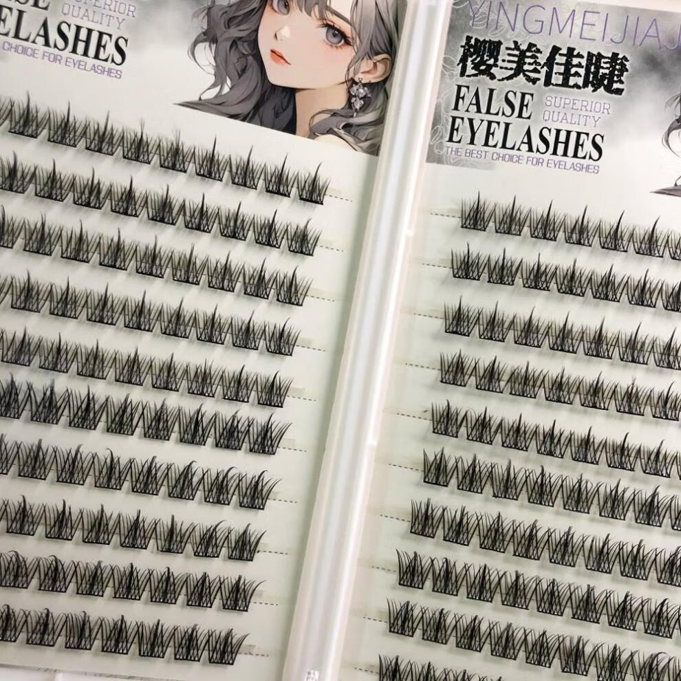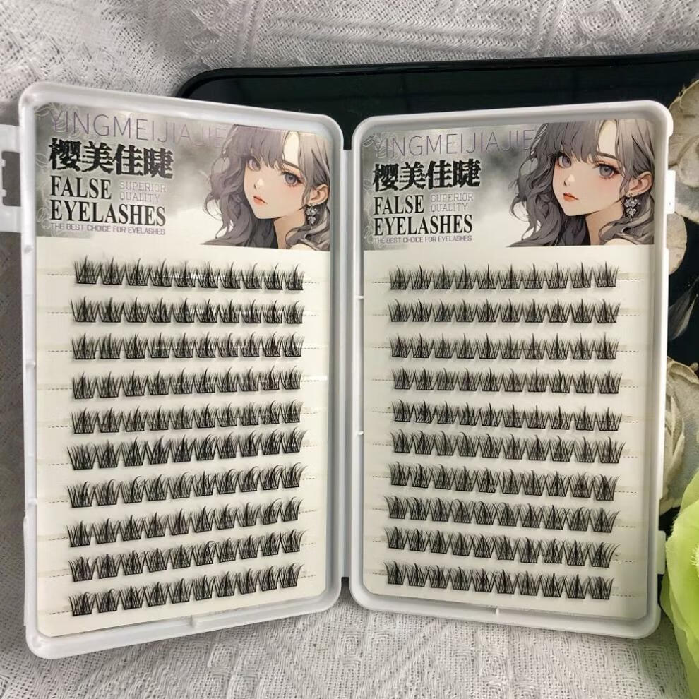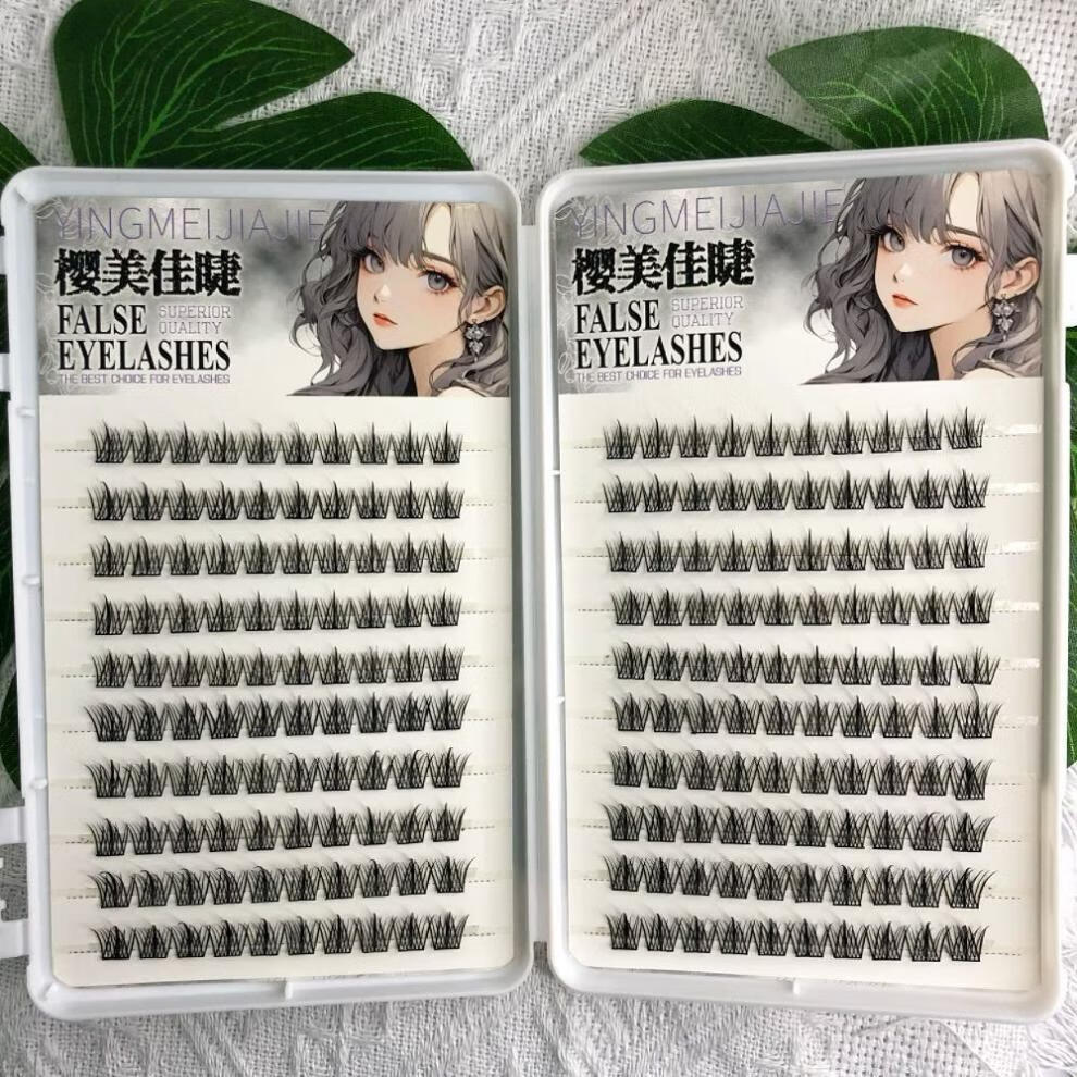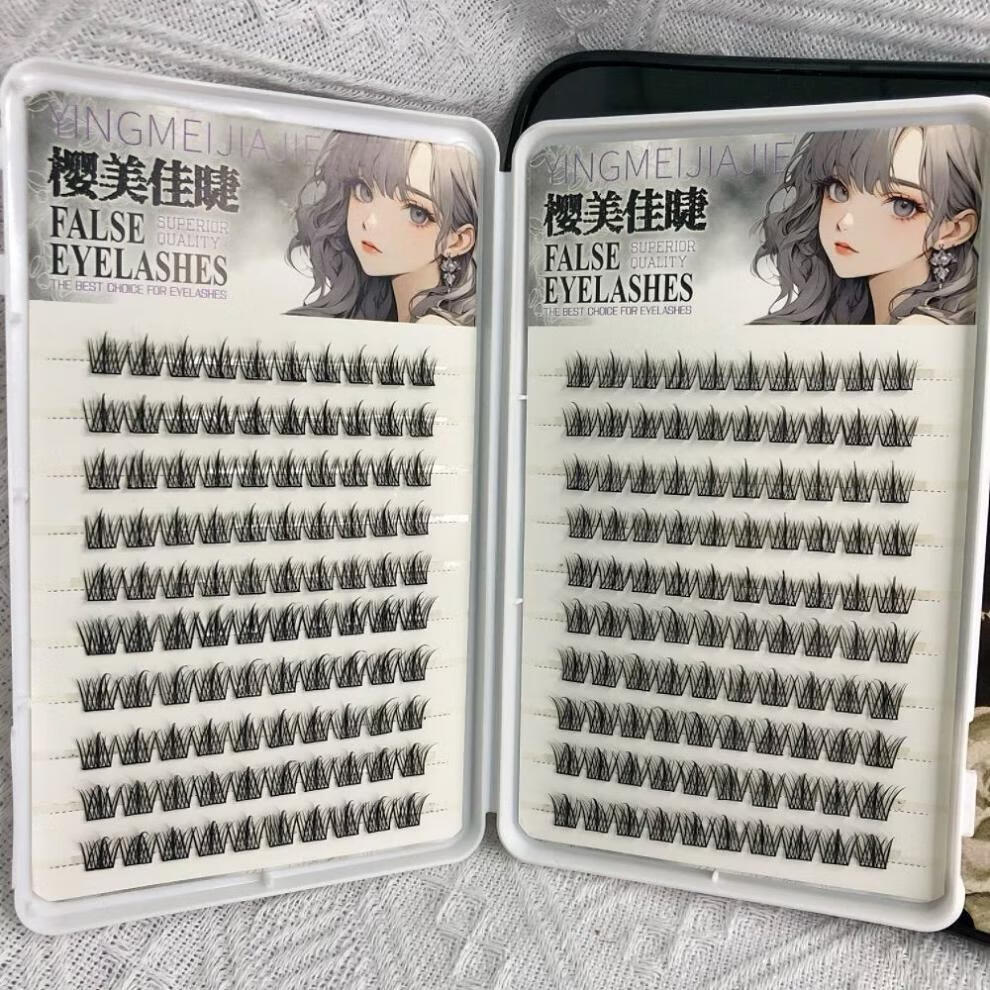 Beginner's Large Capacity Glue-Free and Removal Lazy Trilogy Natural Simulation Thick False Eyelashes Comic Sun Eyelashes 100 Clusters Glue-Free Ten Rows Trilogy Boxed + Tweezers