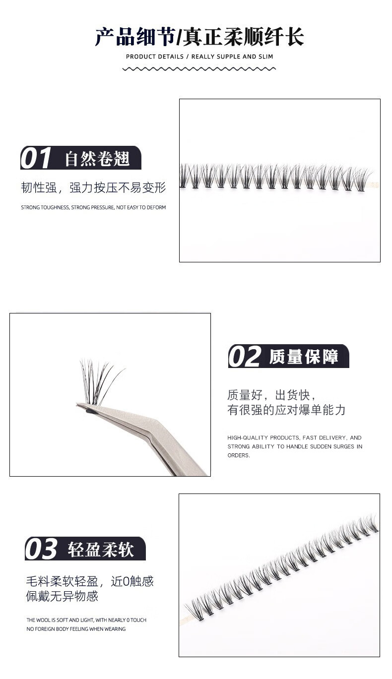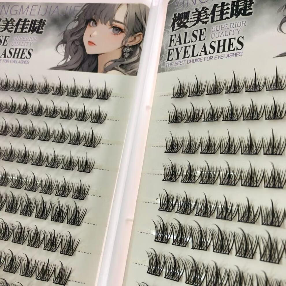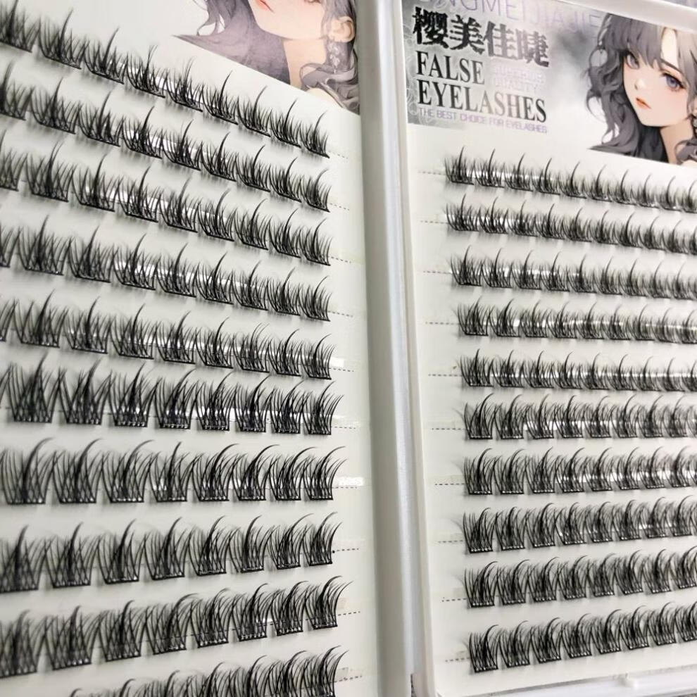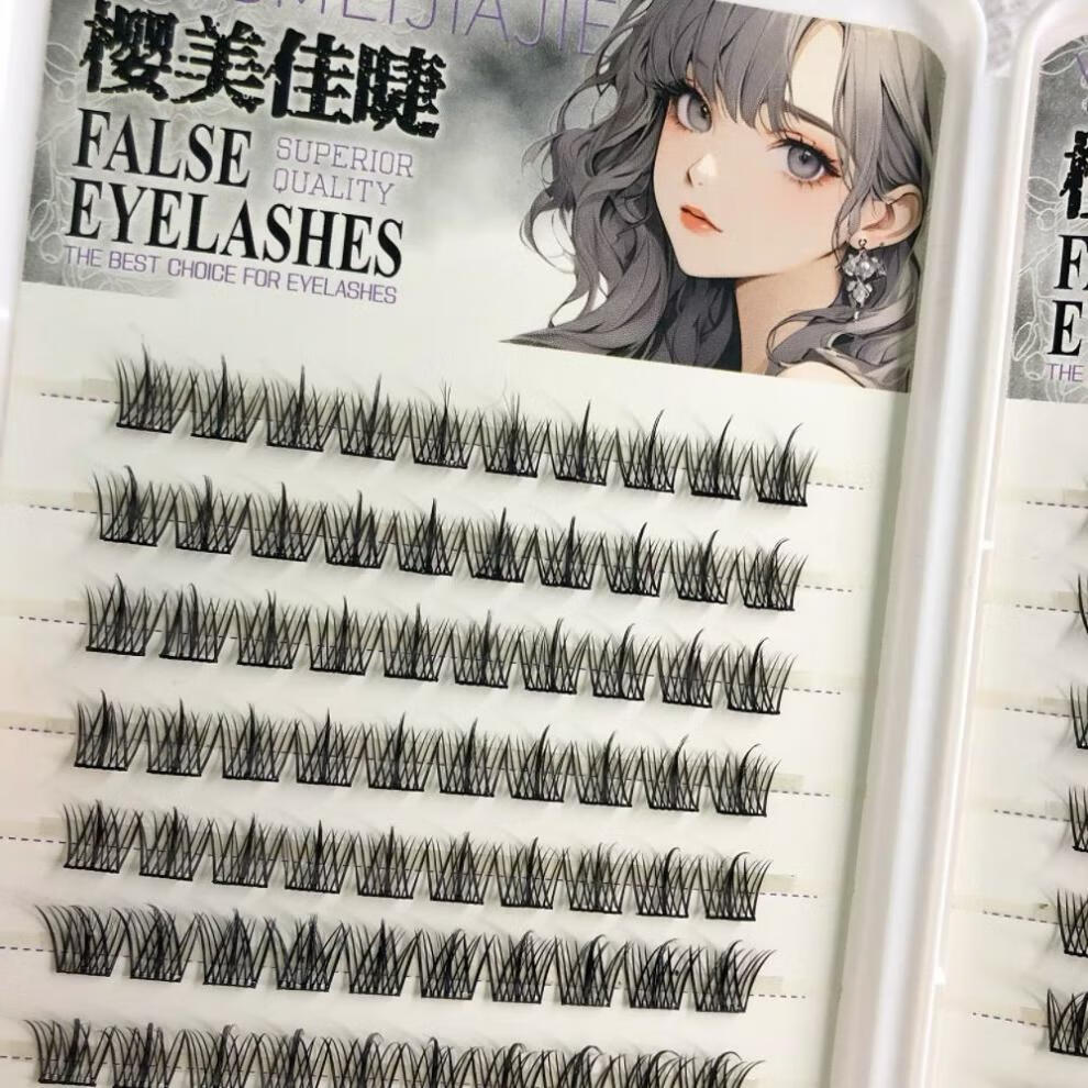 Beginner's Large Capacity Glue-Free and Removal Lazy Trilogy Natural Simulation Thick False Eyelashes Comic Sun Eyelashes 100 Clusters Glue-Free Ten Rows Trilogy Boxed + Tweezers