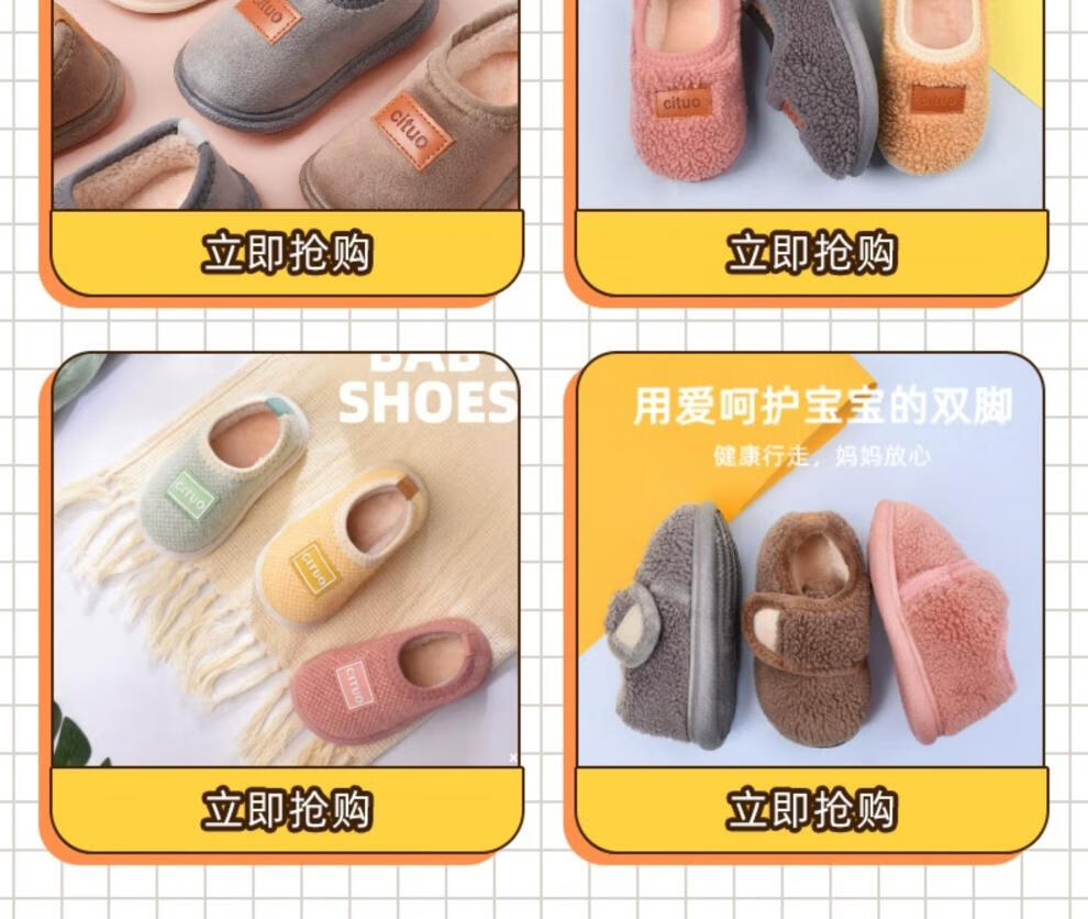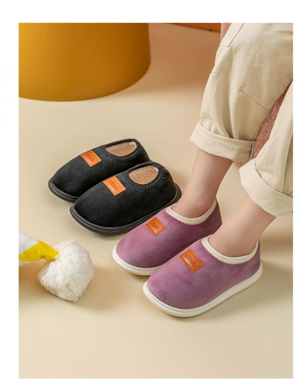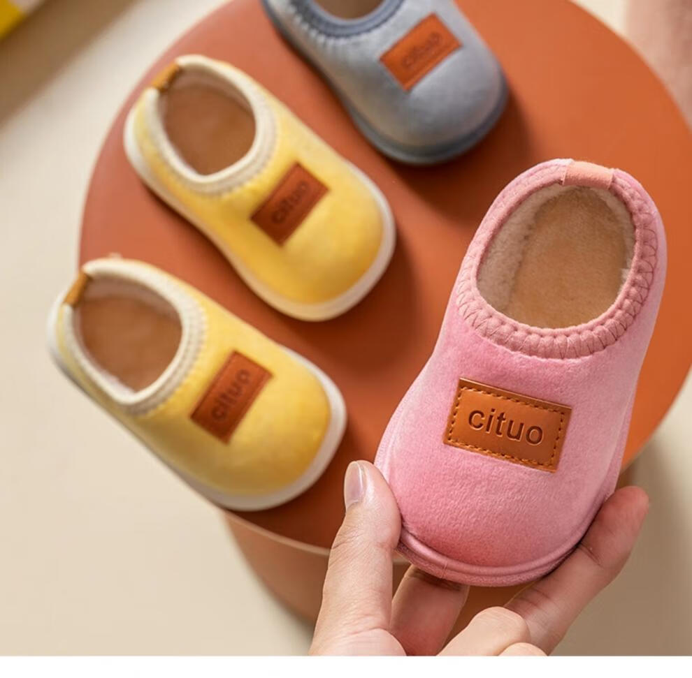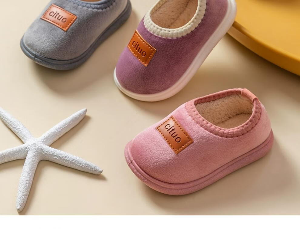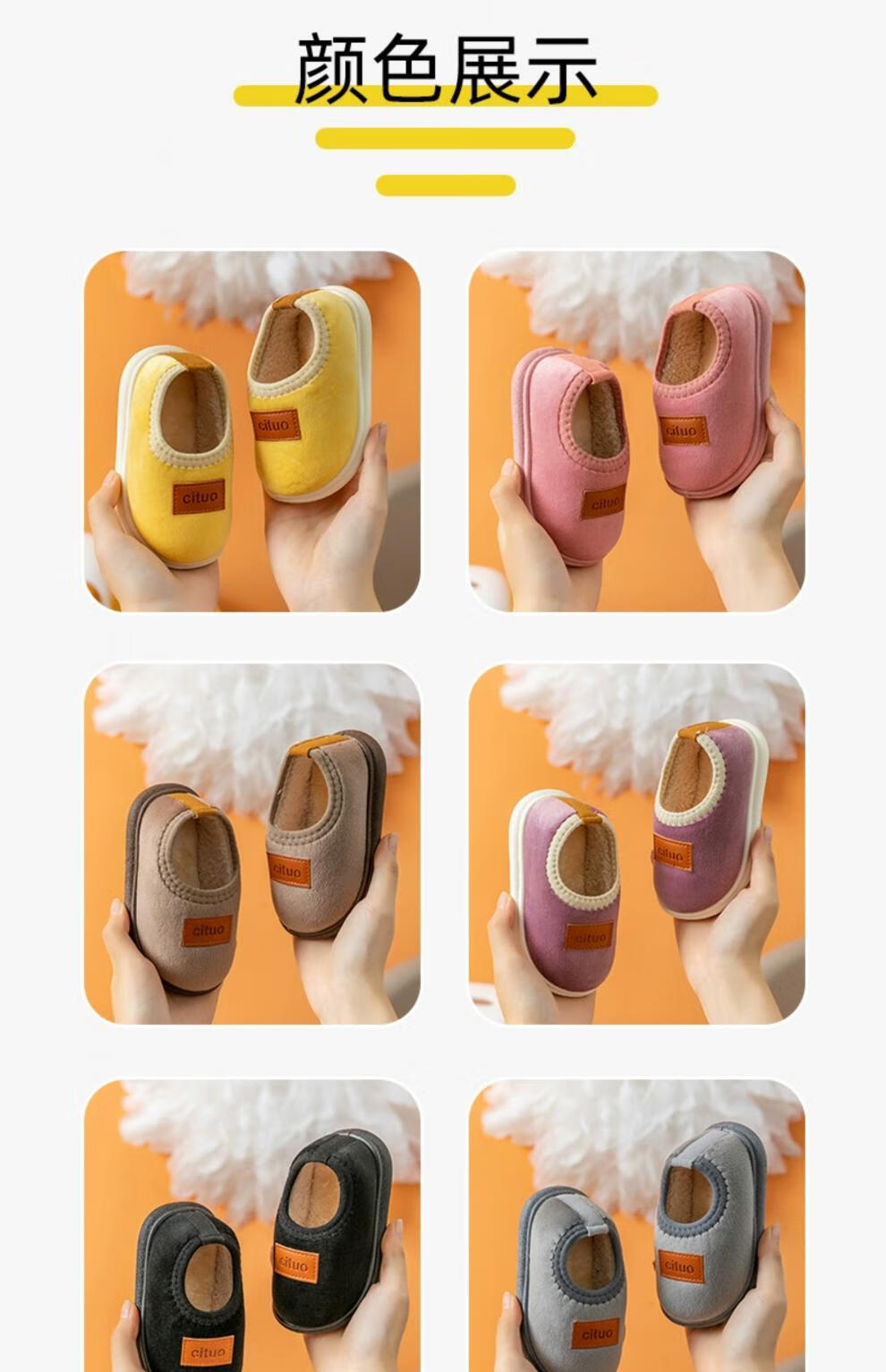 Shunmeiqian children's cotton slippers for men, autumn and winter indoor household use for children and girls, non-slip soft sole plush cotton shoes, fine velvet brown, 16 cm inner length