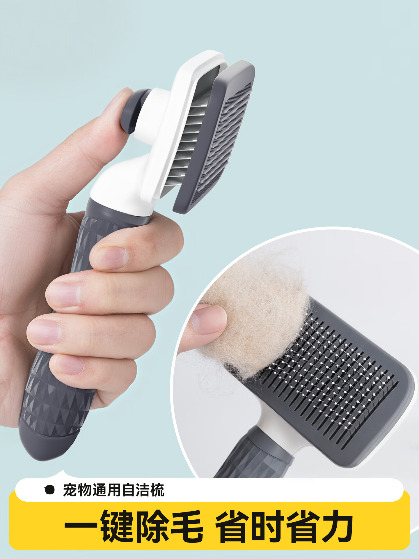 Jingdong Express Cat combing special cat hair removal comb pet needle comb dog grooming knot cleaning value combination pack square macaron gray + parrot nail scissors