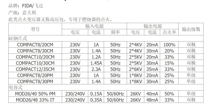 Transformer FIDA8/30PM FIDA10/30CM 8/20PM 12/35CM 30MA ignition coil 8_30PM original import