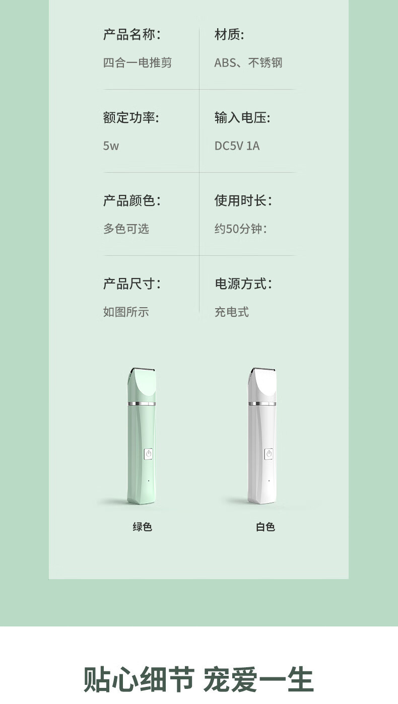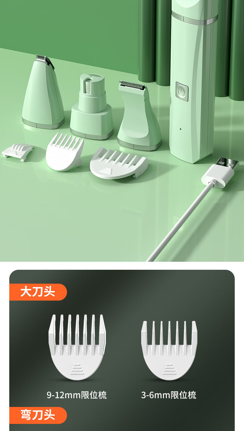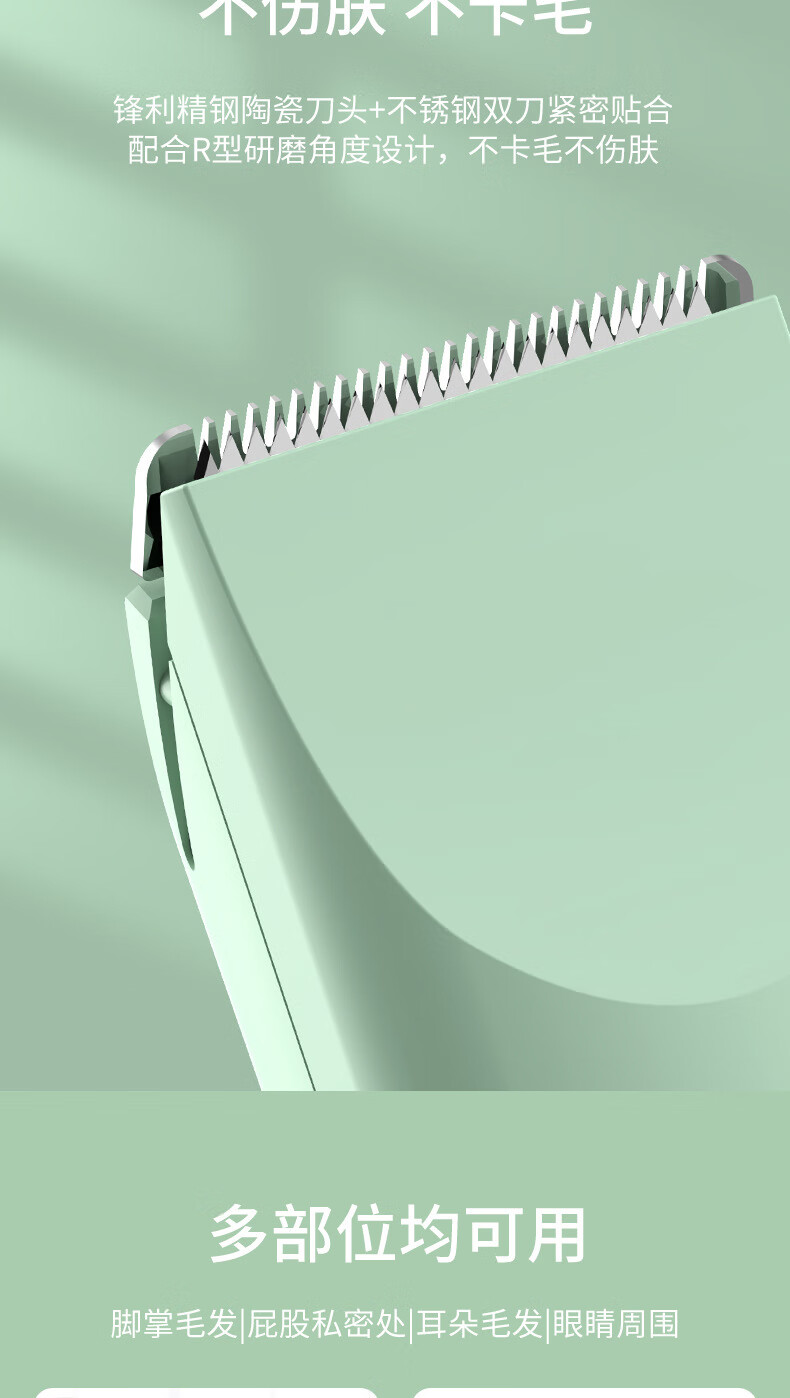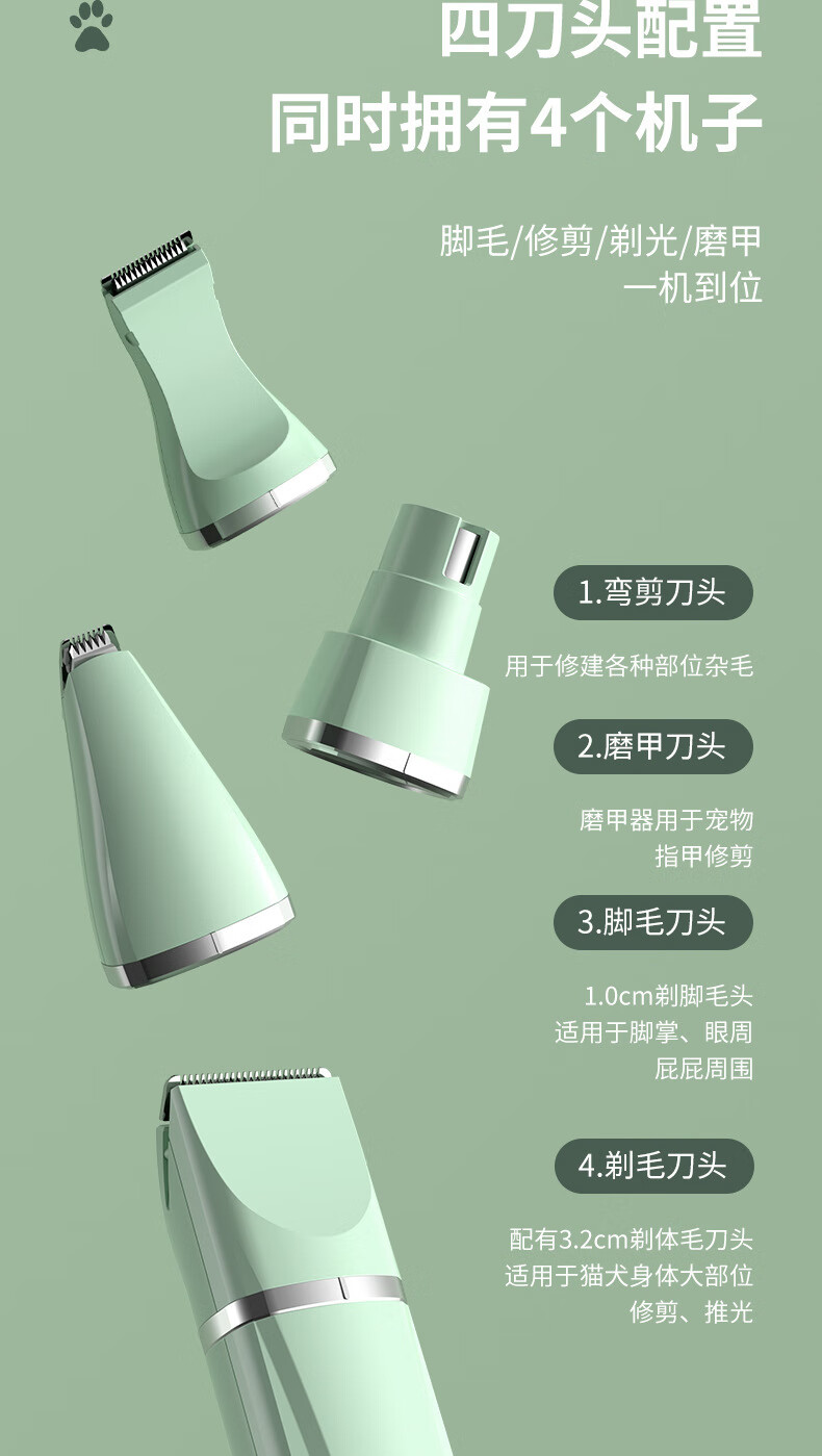 BLANLODY dog shaver, cat foot shaver, pet hair clipper, nail polishing dog hair clipper, silent and non-stuck, three-in-one, mint green, body hair + foot hair + nail polisher